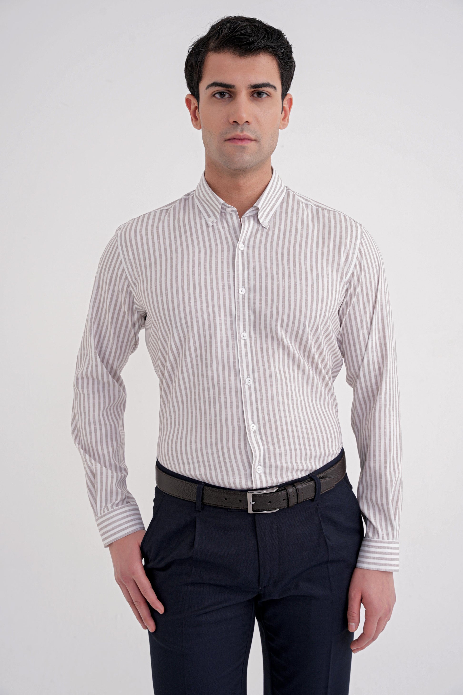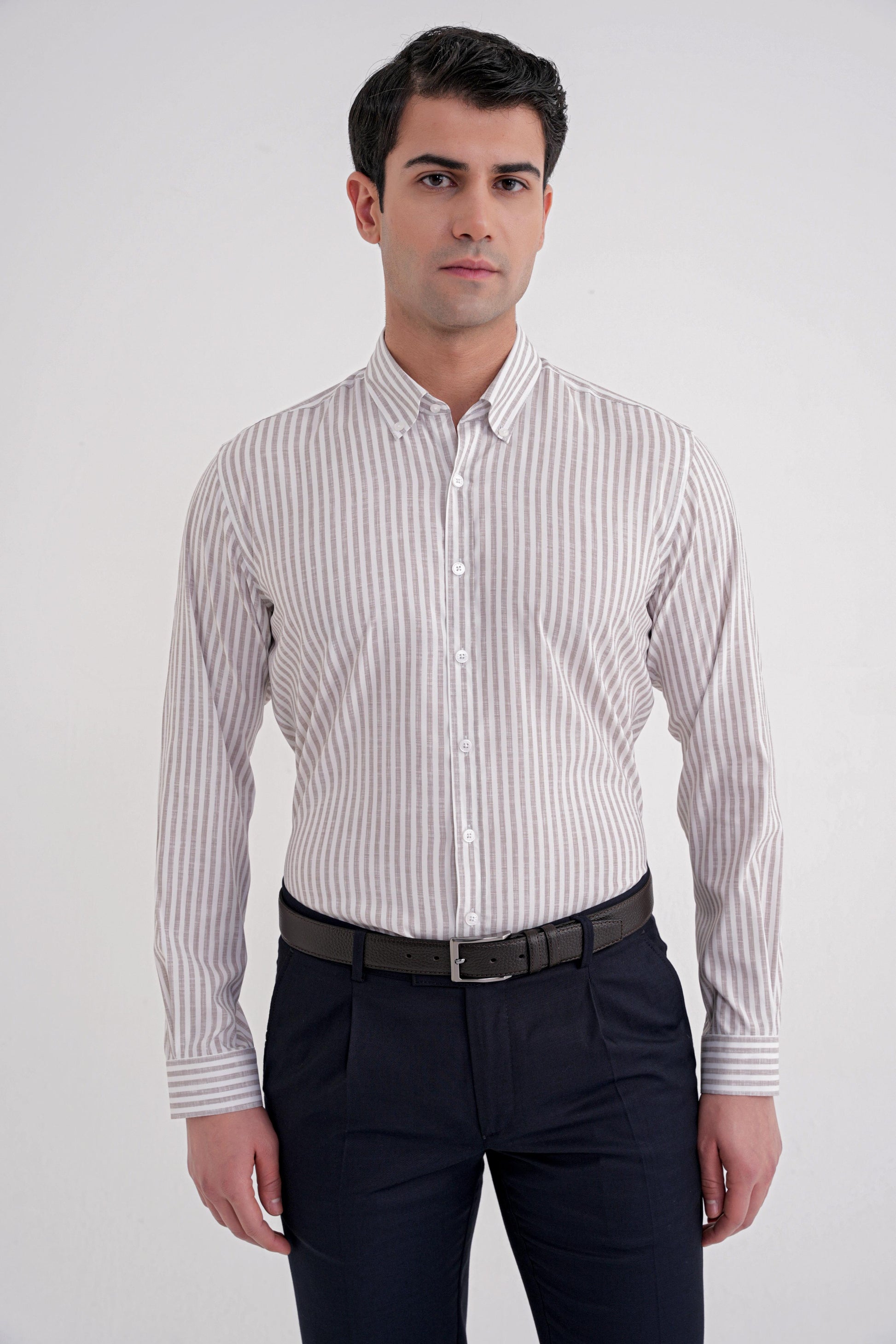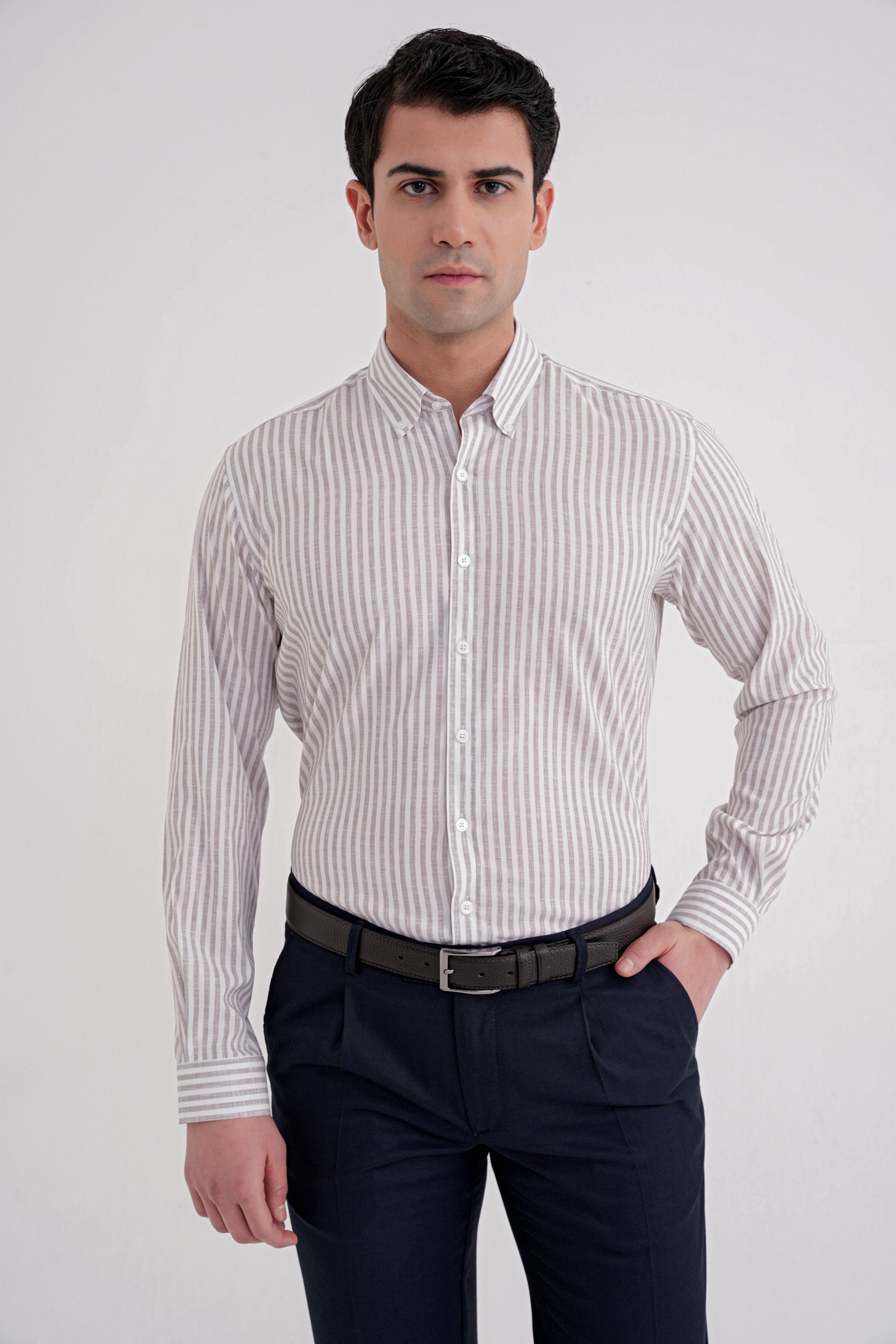 G15980925_03Sezon: 25-26 KIŞKoleksiyon: Kalıp: SlimDesen: ÇizgiliYaka: Düğmeli YakaKol Boyu: Uzun Kolİlikleme: DüğmeliCep: CepsizRenk: BEJKarışım: % 45 Pamuk %50 Viskon %5 ElastanHayvansal Menşeli: Manken Ölçüleri: Boy:190 cm Omuz:53 Gögüs:100 cm Bel:92 cm Basen:100Numune Beden: 48/M/32