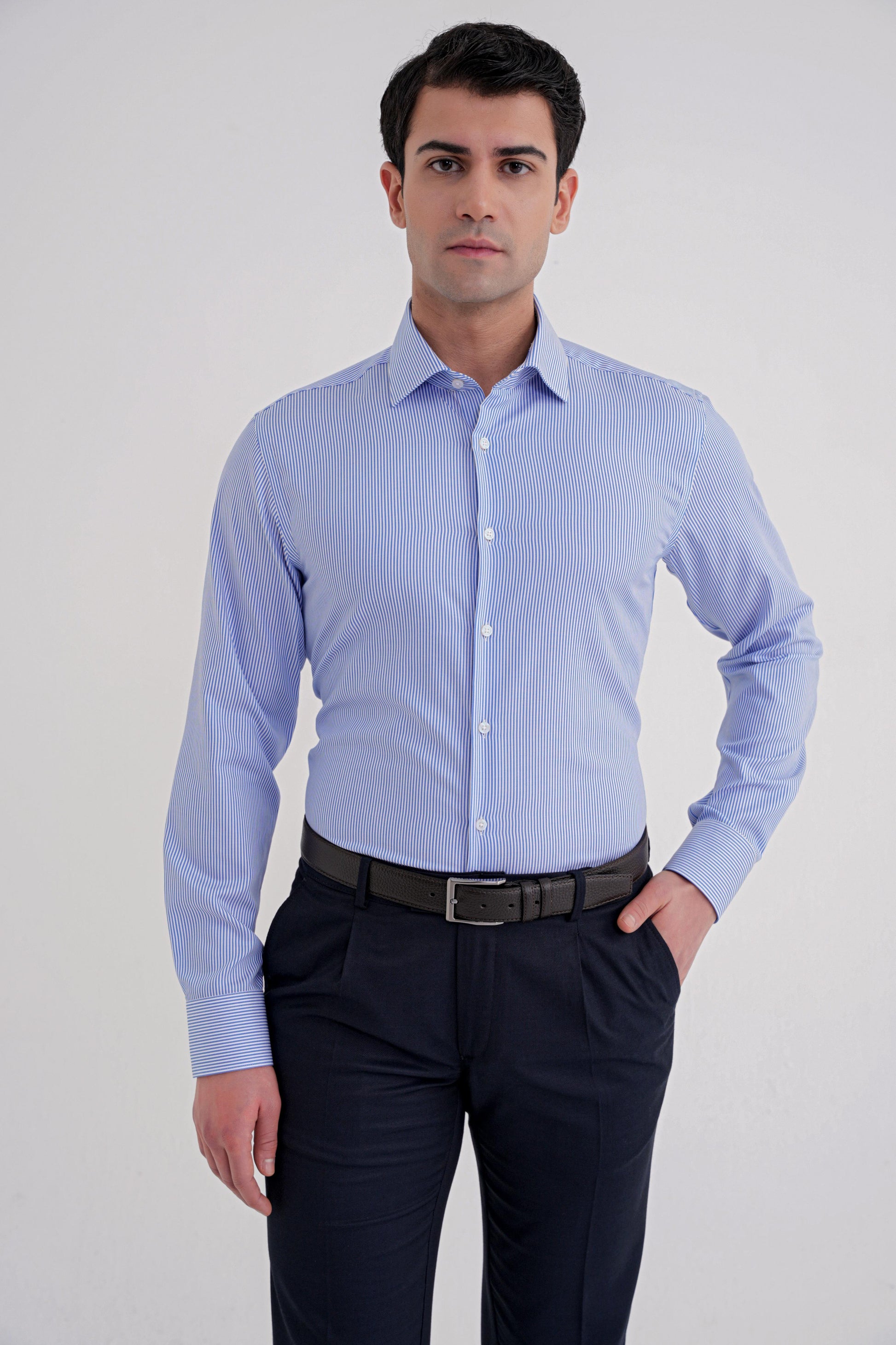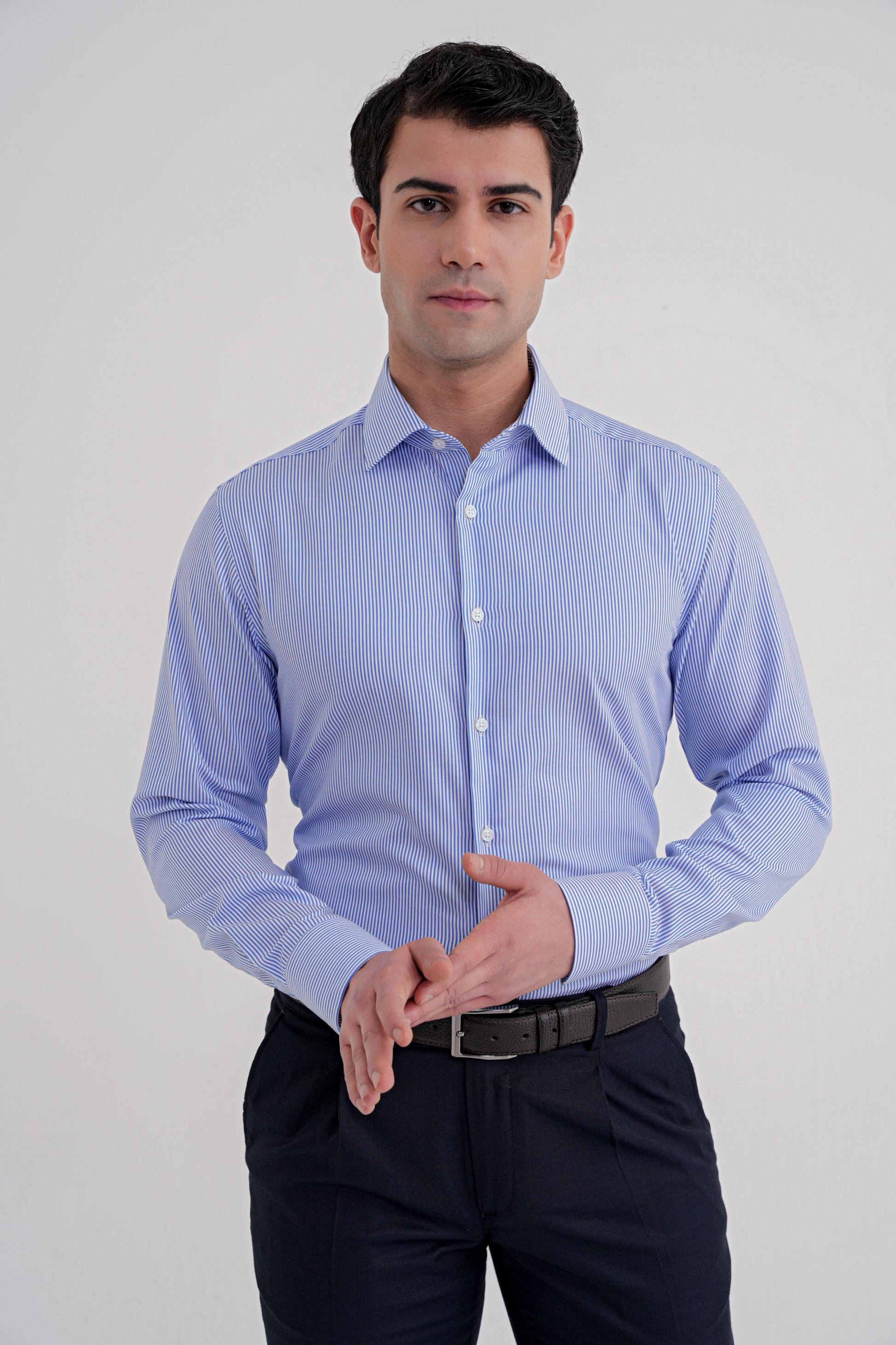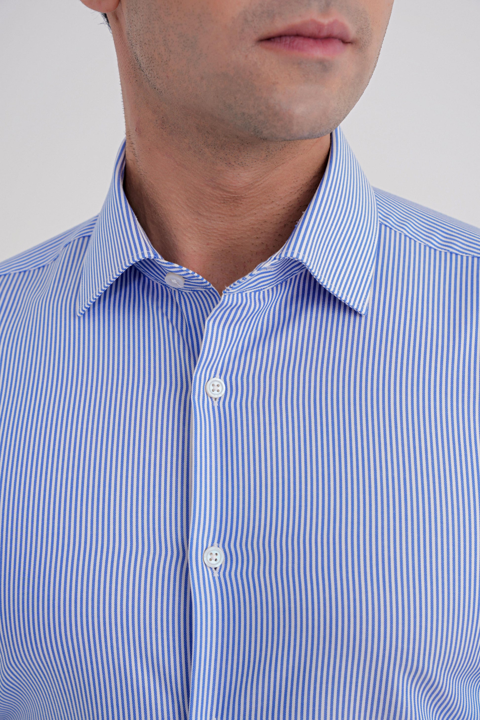 GK751K0725_04Sezon: 25-26 KIŞKoleksiyon: Kalıp: ComfortDesen: ÇizgiliYaka: Klasik YakaKol Boyu: Uzun Kolİlikleme: DüğmeliCep: CepsizRenk: MAVİKarışım: % 100 PamukHayvansal Menşeli: Manken Ölçüleri: Boy:190 cm Omuz:53 Gögüs:100 cm Bel:92 cm Basen:100Numune Beden: 48/M/32