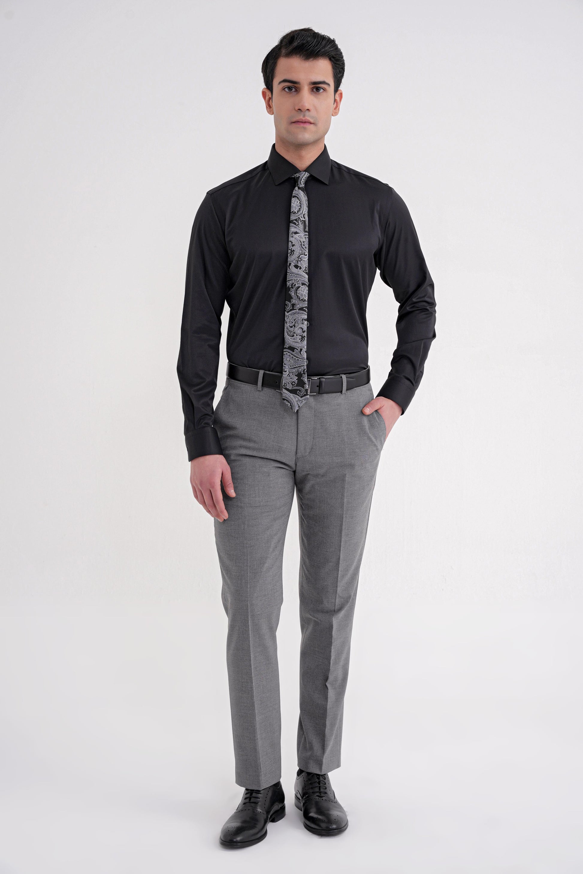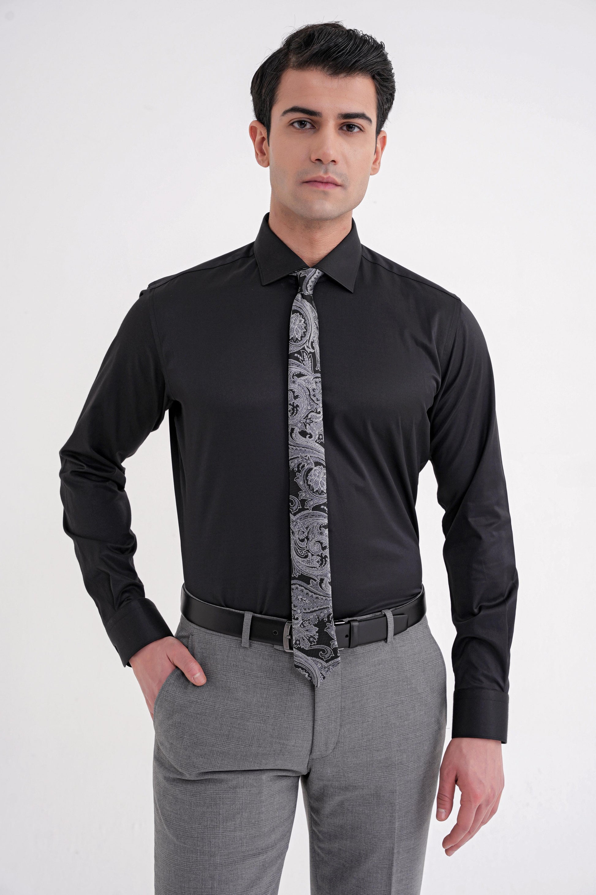 GK752K0825_01Sezon: 25-26 KIŞKoleksiyon: Kalıp: SlimDesen: DüzYaka: Klasik YakaKol Boyu: Uzun Kolİlikleme: DüğmeliCep: CepsizRenk: SİYAHKarışım: %65 Pamuk %32 Polyester %3 ElastanHayvansal Menşeli: Manken Ölçüleri: Boy:190 cm Omuz:53 Gögüs:100 cm Bel:92 cm Basen:100Numune Beden: 48/M/32