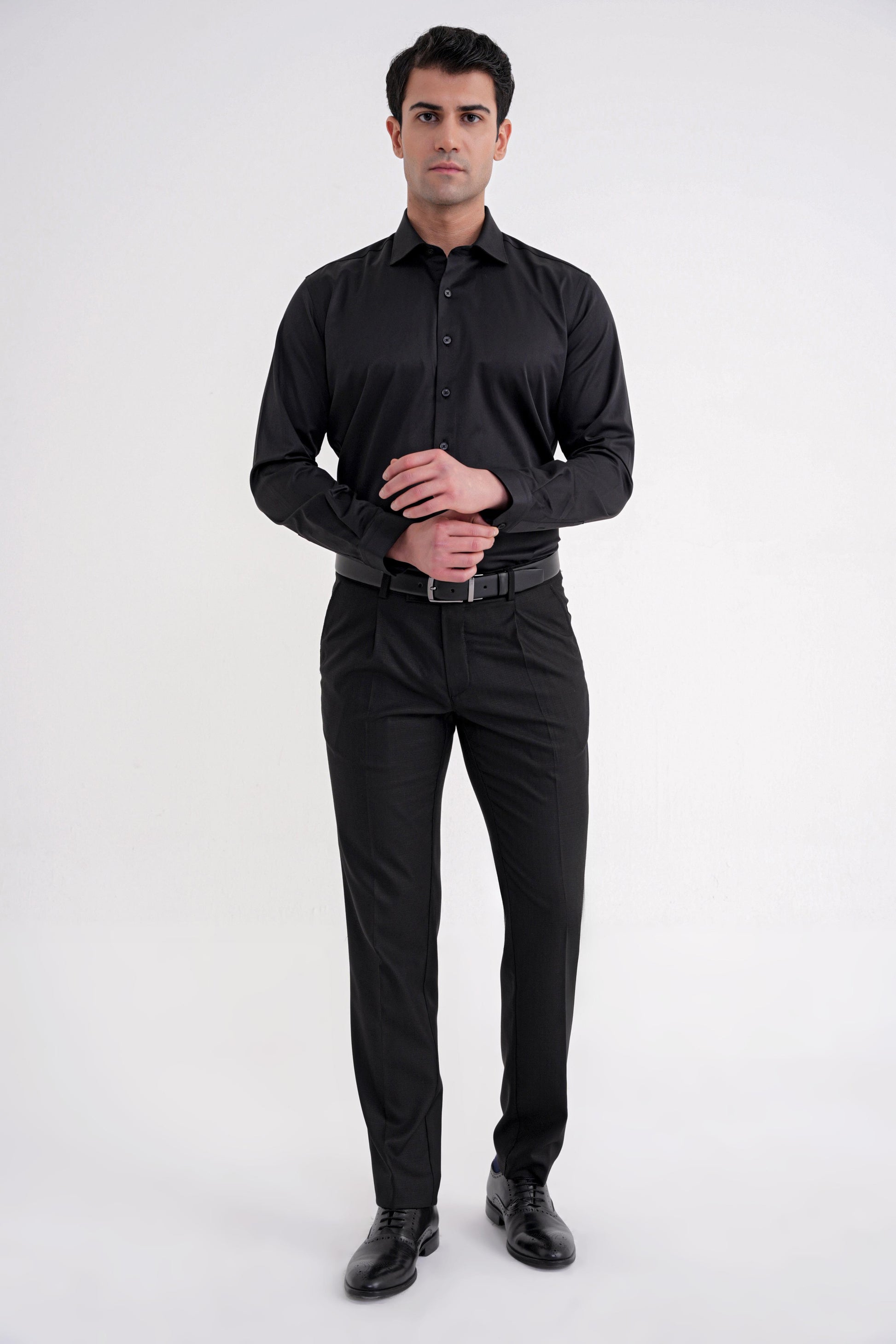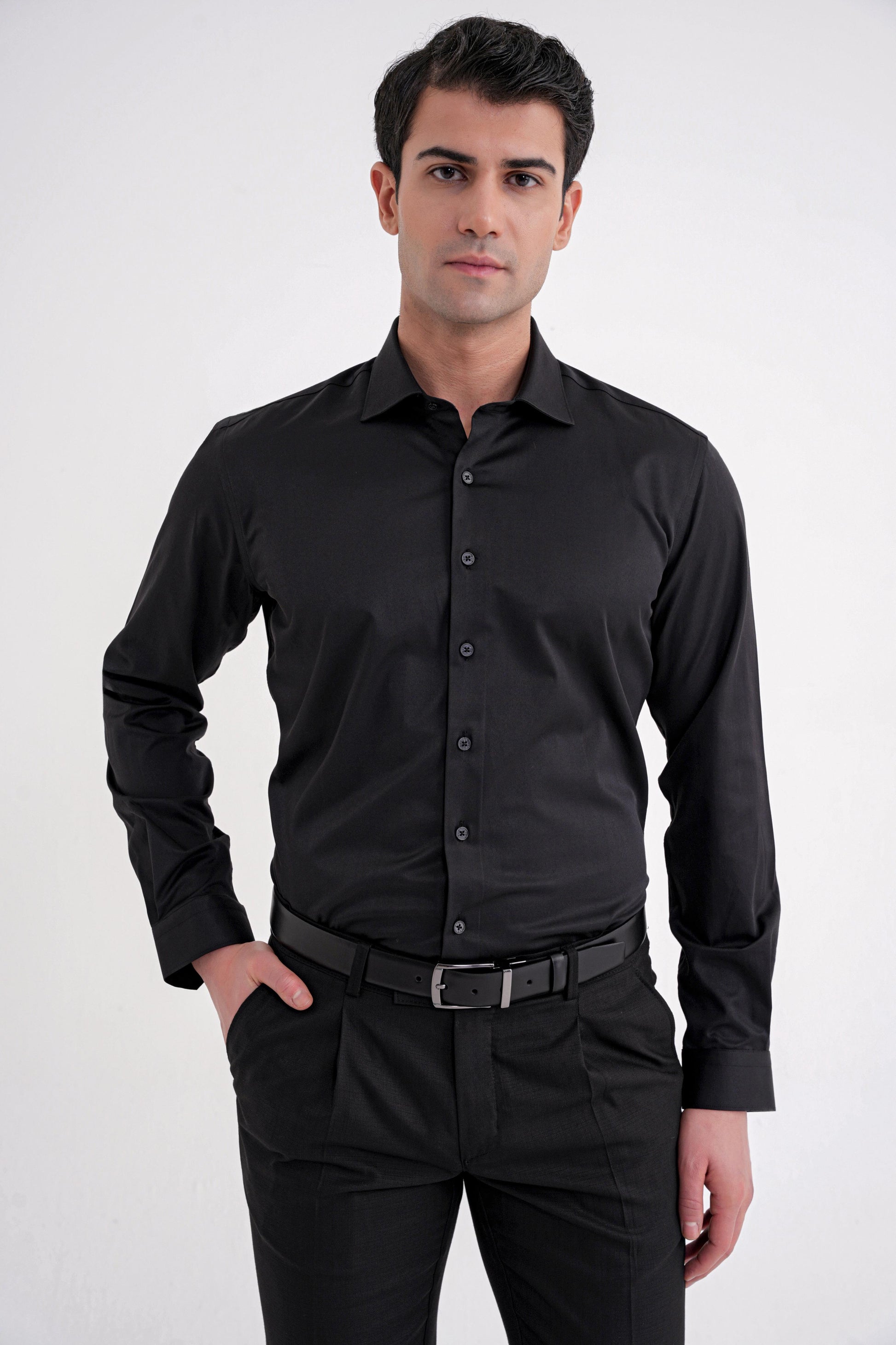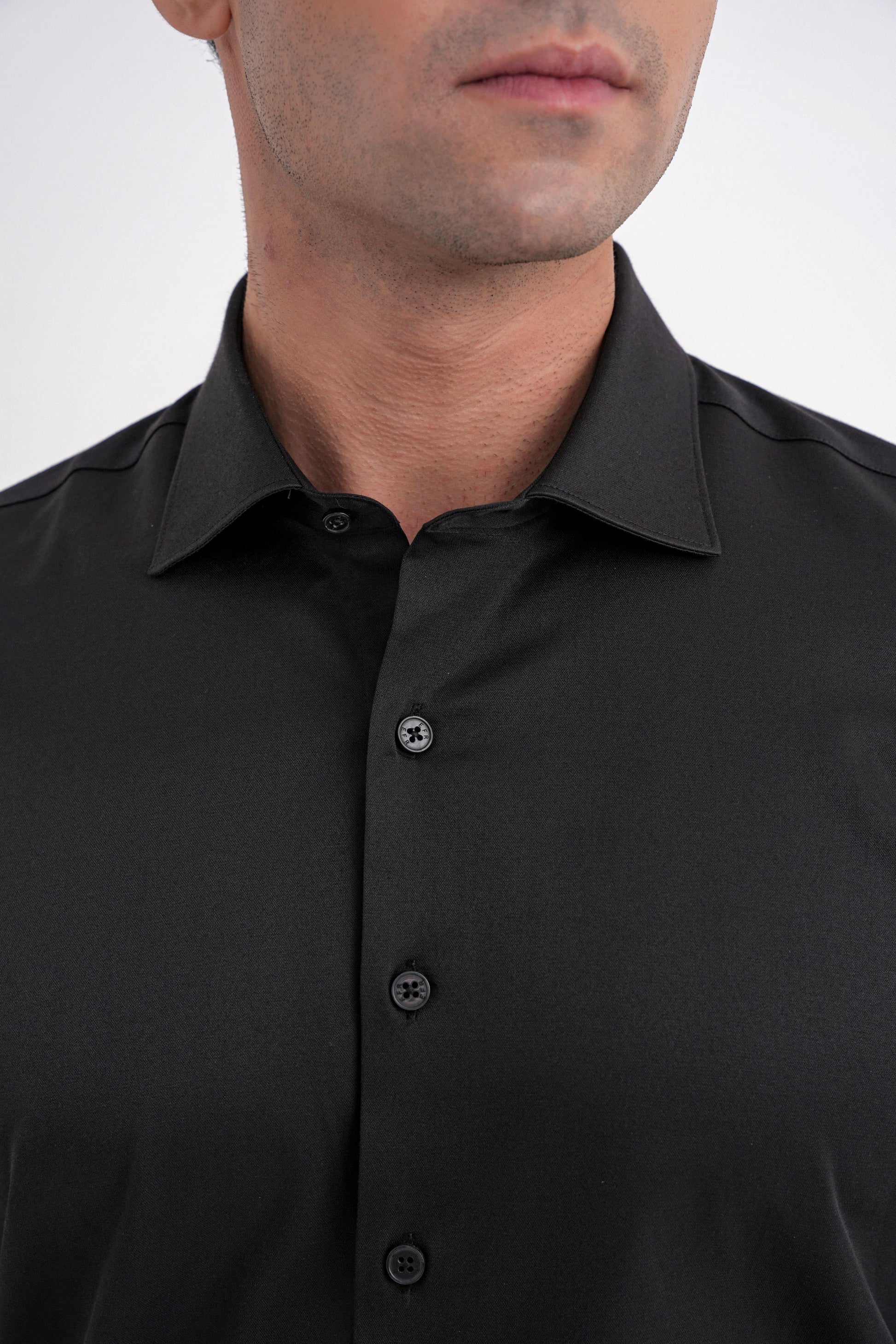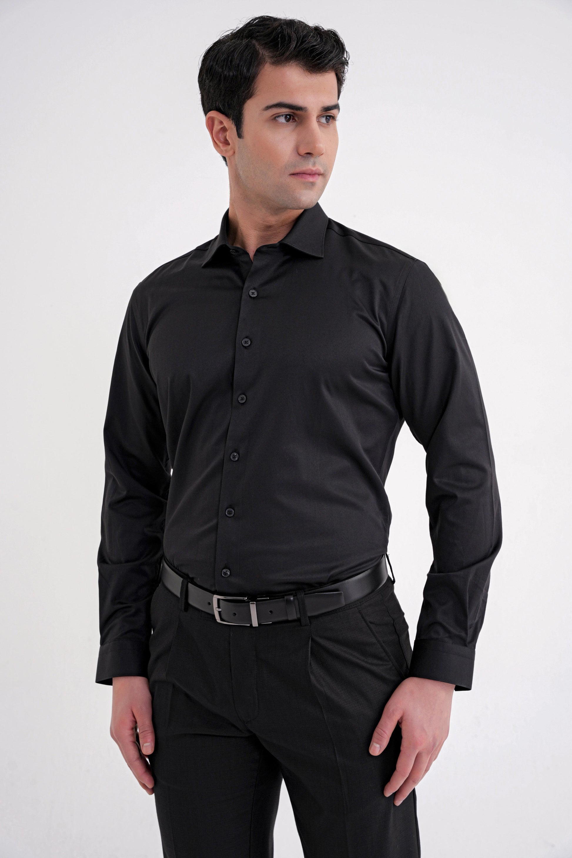 GK753K0825_01Sezon: 25-26 KIŞKoleksiyon: Kalıp: SlimDesen: DüzYaka: Klasik YakaKol Boyu: Uzun Kolİlikleme: DüğmeliCep: CepsizRenk: SİYAHKarışım: %65 Pamuk %32 Polyester %3 ElastanHayvansal Menşeli: Manken Ölçüleri: Boy:190 cm Omuz:53 Gögüs:100 cm Bel:92 cm Basen:100Numune Beden: 48/M/32