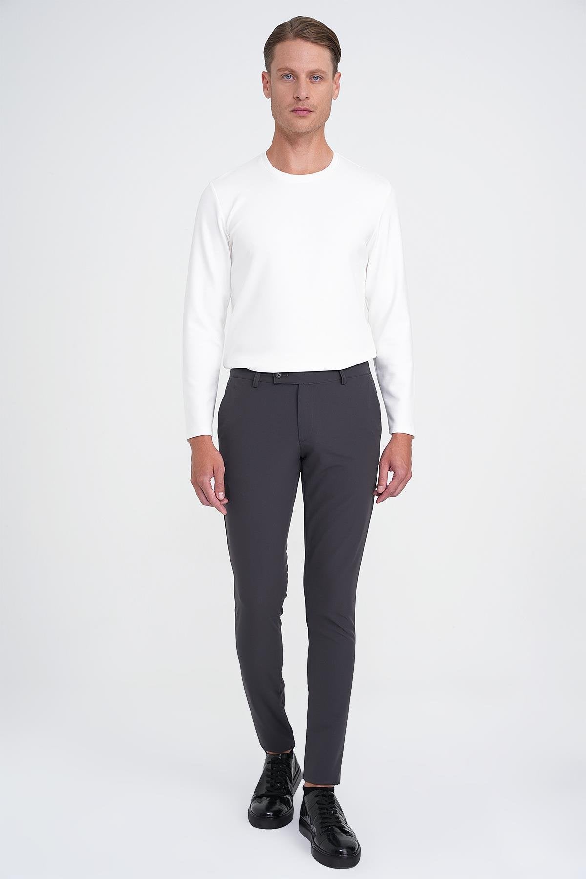 P 1144 Slim Fit Yan Cepli Düz Esnek Casuel Antrasit Pantolon