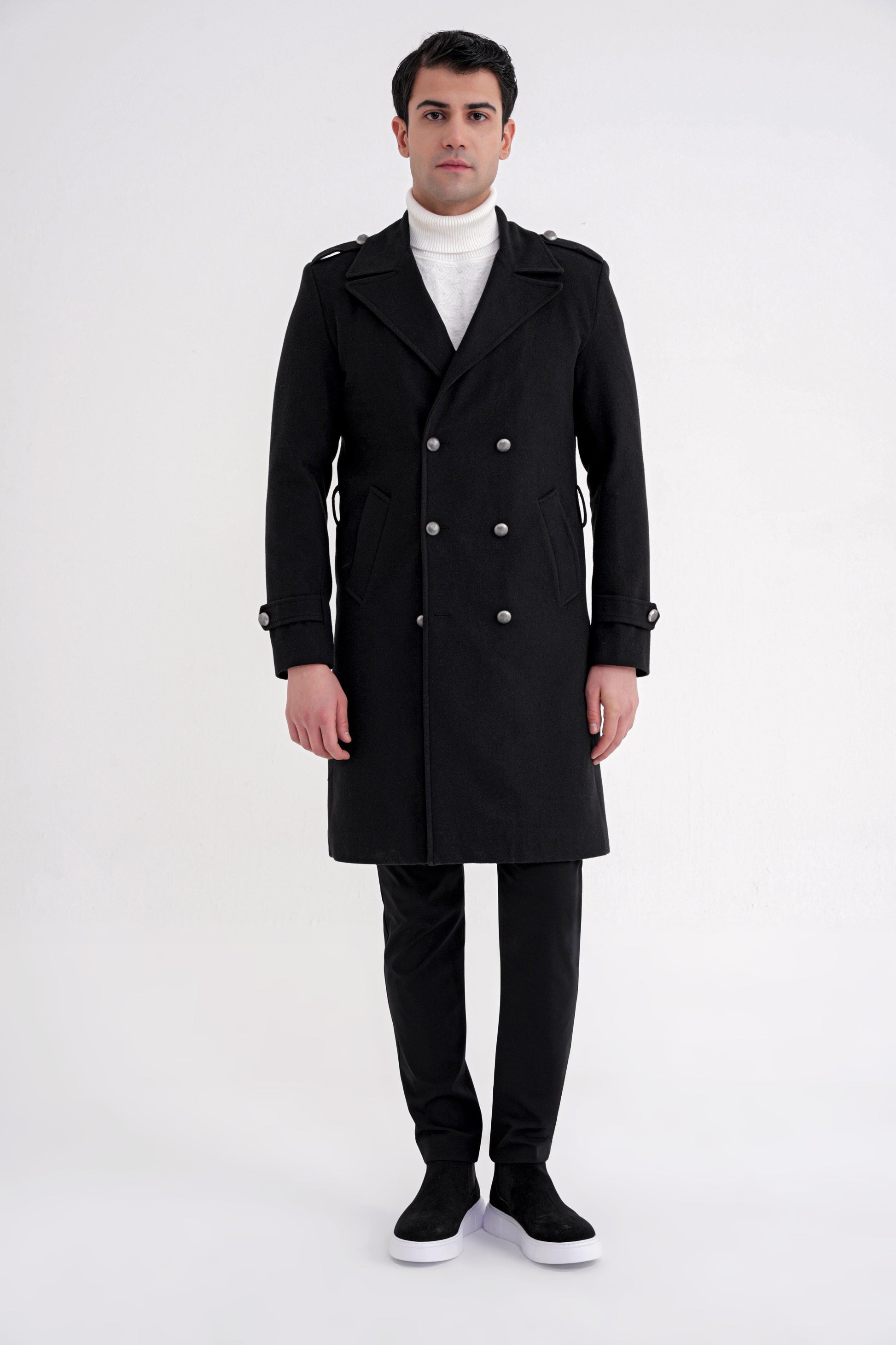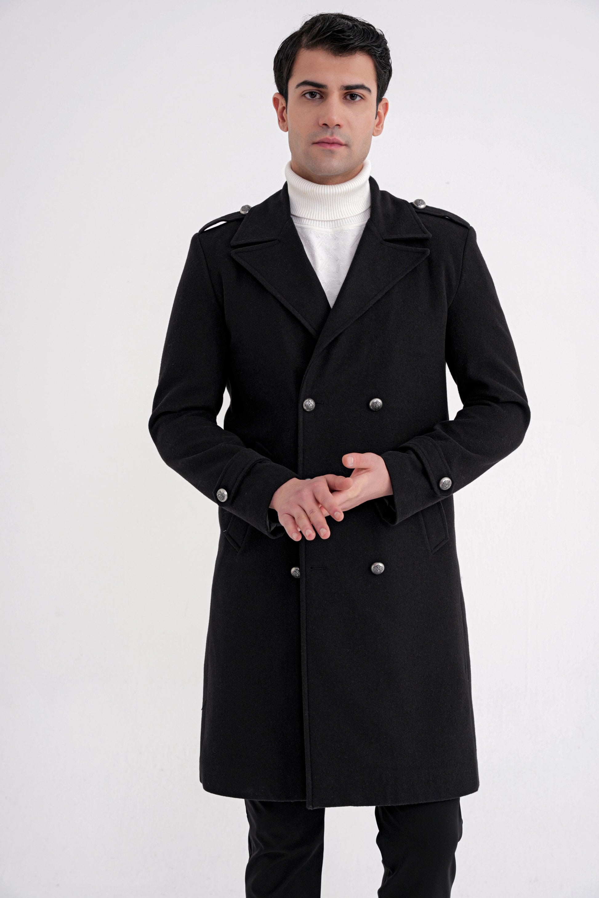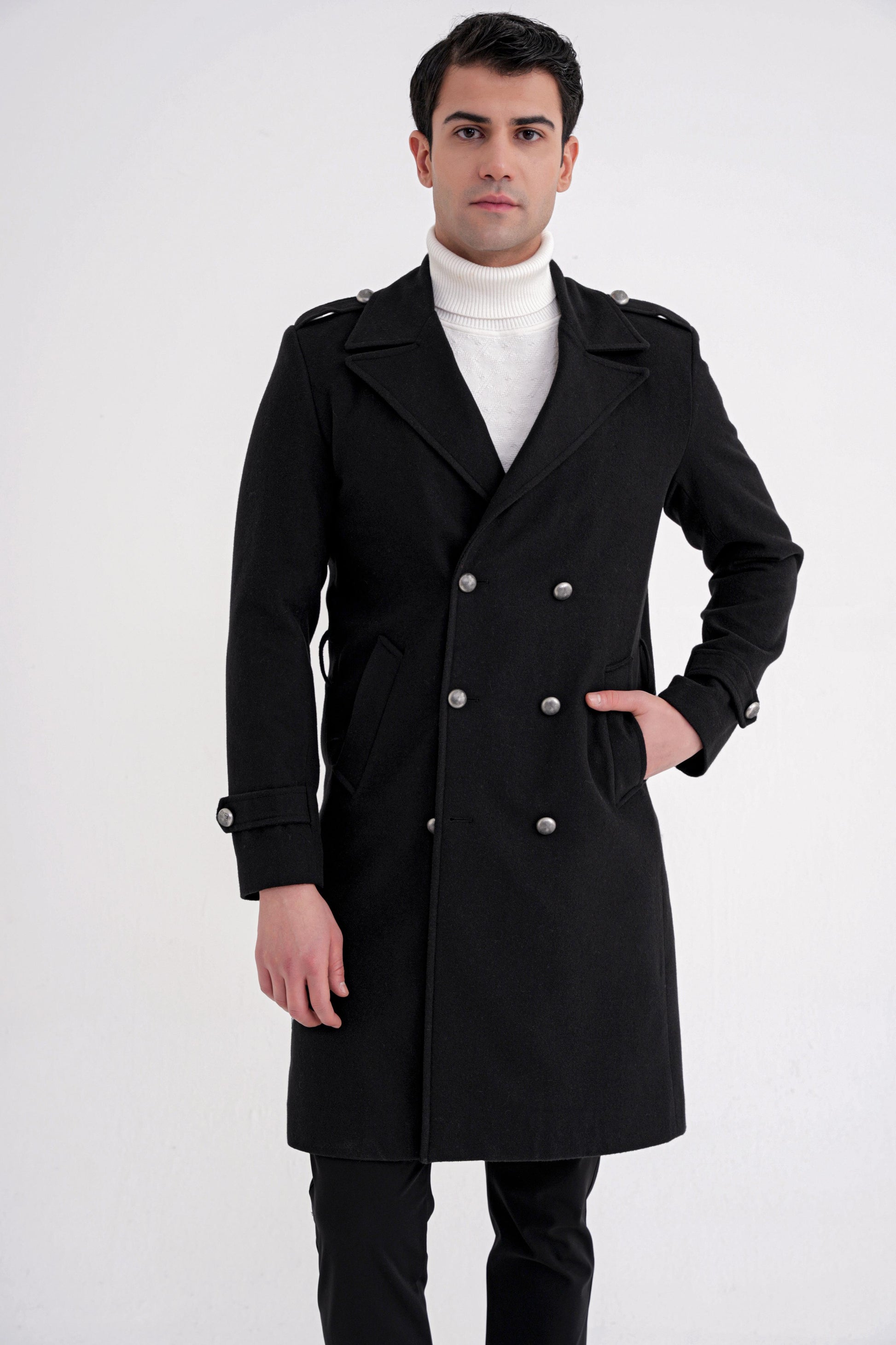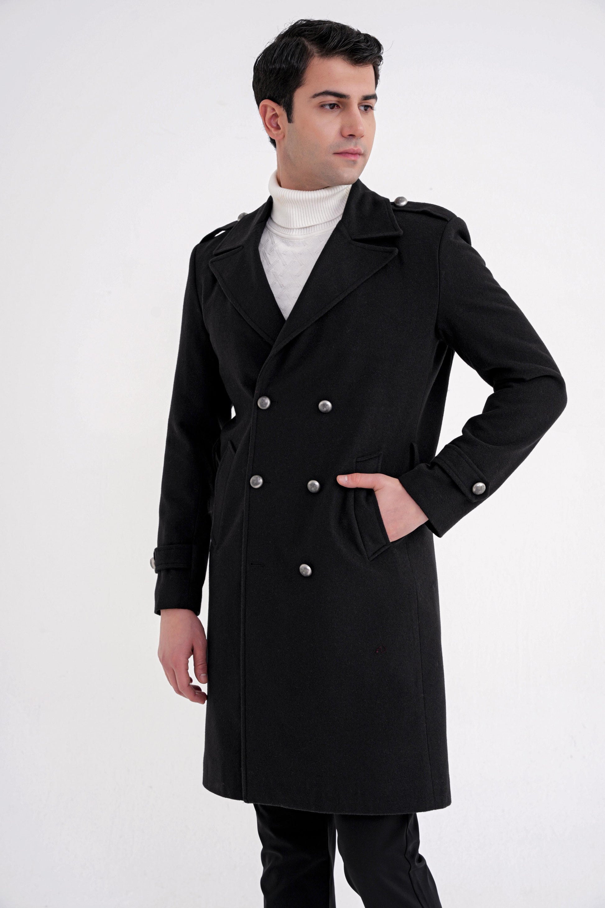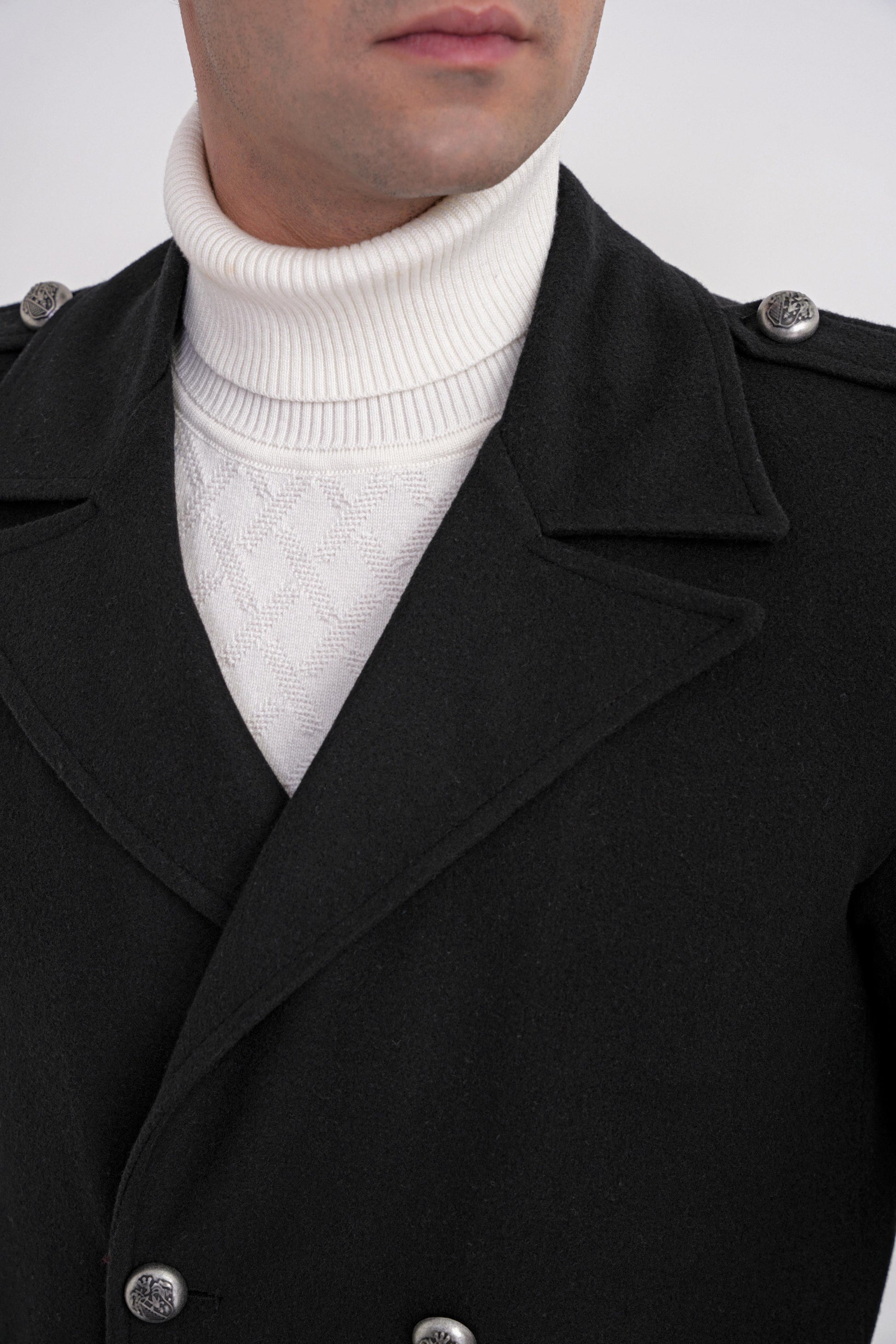 PLT0900825_01Sezon: 25-26 KIŞKoleksiyon: Kalıp: ComfortDesen: DüzYaka: Sivri YakaKol Boyu: Apoletli Uzun Kolİlikleme: DüğmeliCep: Yan CepRenk: SİYAHKarışım: %80 Yün %20 PolyesterHayvansal Menşeli: Koyun Yünü İçermektedirManken Ölçüleri: Boy:190 cm Omuz:53 Gögüs:100 cm Bel:92 cm Basen:100Numune Beden: 48/M/32