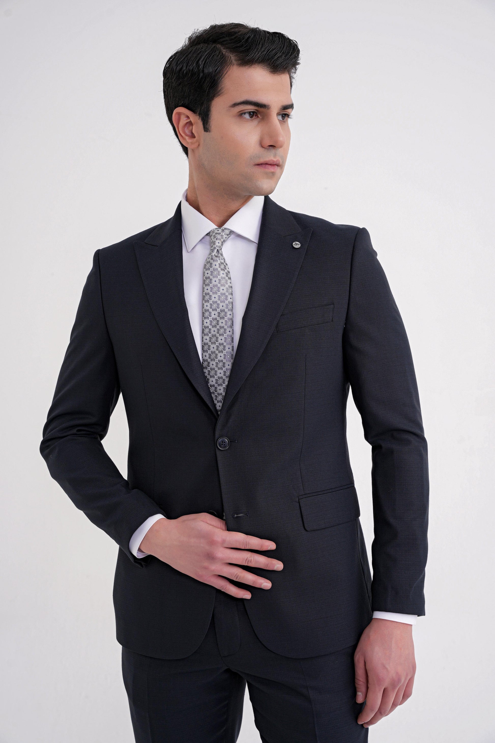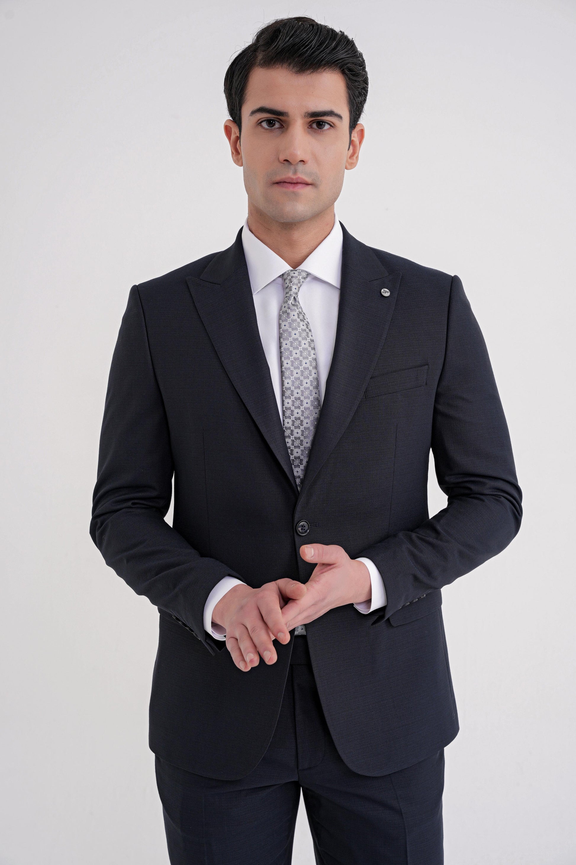TK93971125_12Sezon: 2026 YAZKoleksiyon: Kalıp: SlimDesen: DüzYaka: Sivri YakaKol Boyu: Uzun Kolİlikleme: DüğmeliCep: Kapaklı CepRenk: LACİVERTKarışım: % 67 Yün % 30 Polyester % 3 ElastanHayvansal Menşeli: Koyun Yünü İçermektedirManken Ölçüleri: Boy:190 cm Omuz:53 Gögüs:100 cm Bel:92 cm Basen:100Numune Beden: 48/M/32