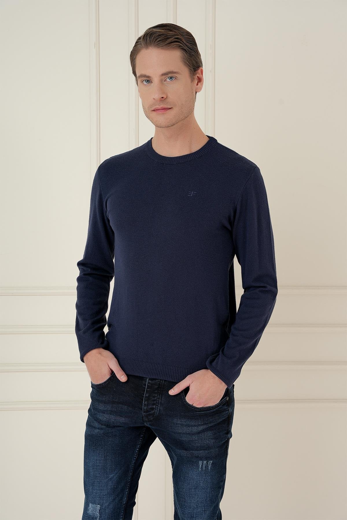 Tr 875 Slim Fit Lacivert Klasik Triko