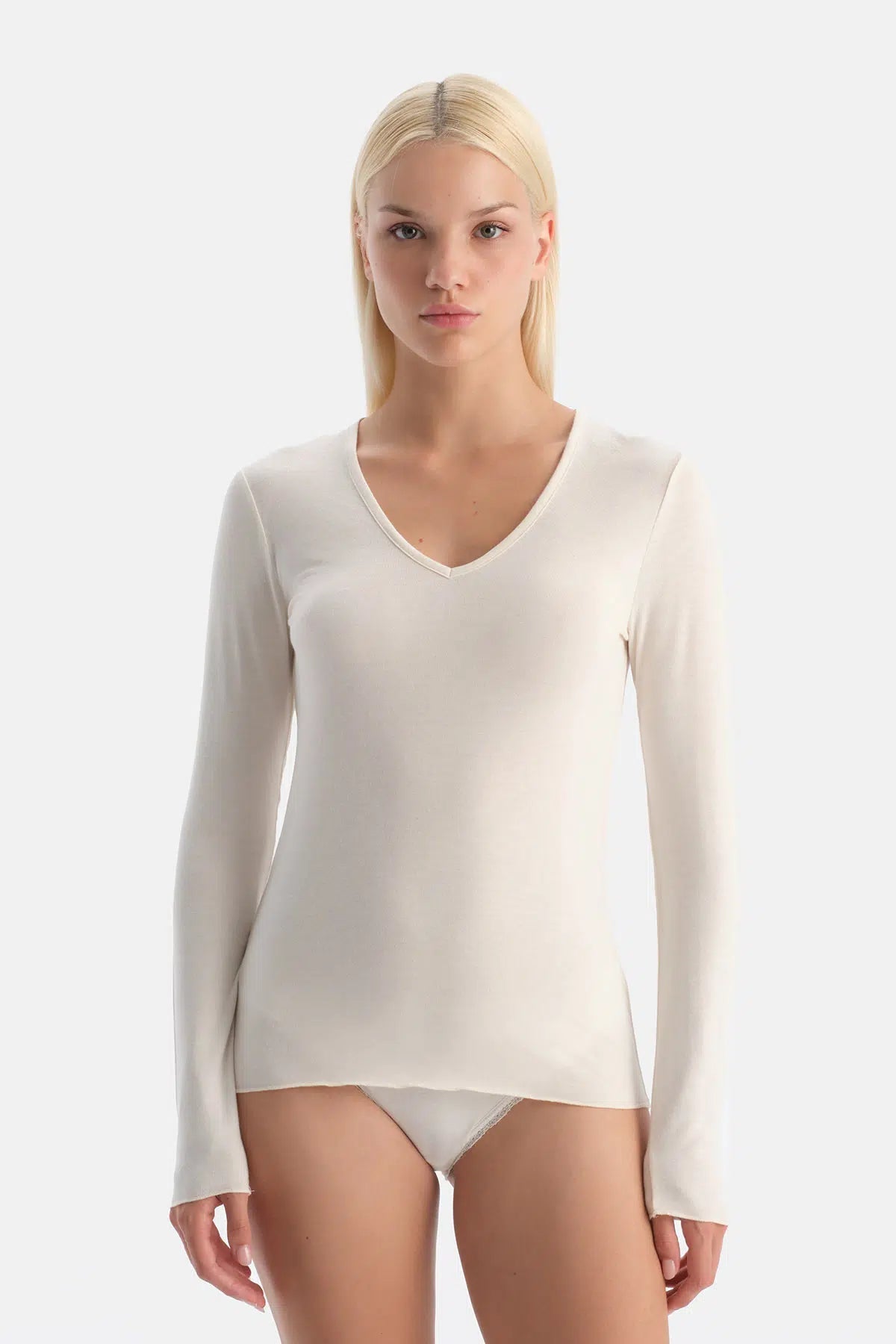 Ekru 5119KC Modal Kaşmir V Yaka Uzun Kollu Üst B0169294_316 şimdi Dagi'de. Kaliteli, konforlu ve özel fiyatlarla sizleri bekliyor.