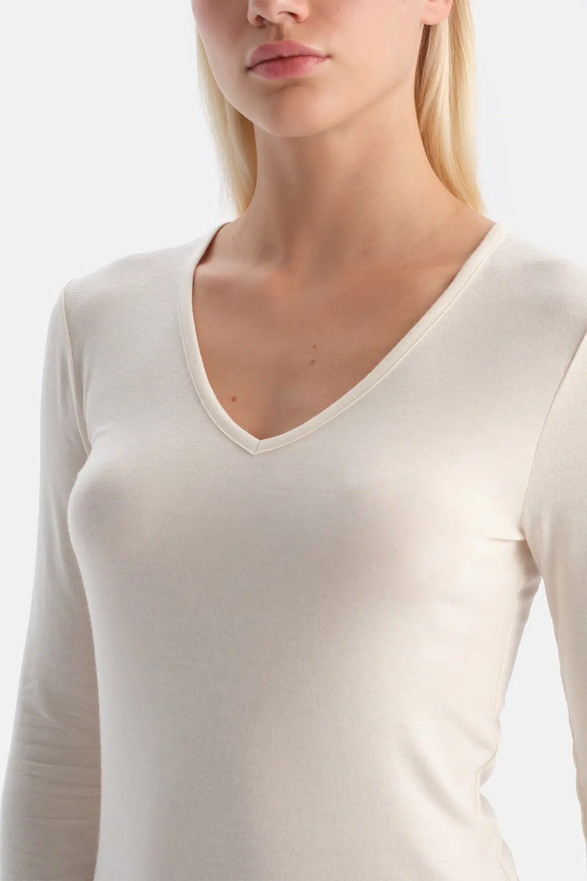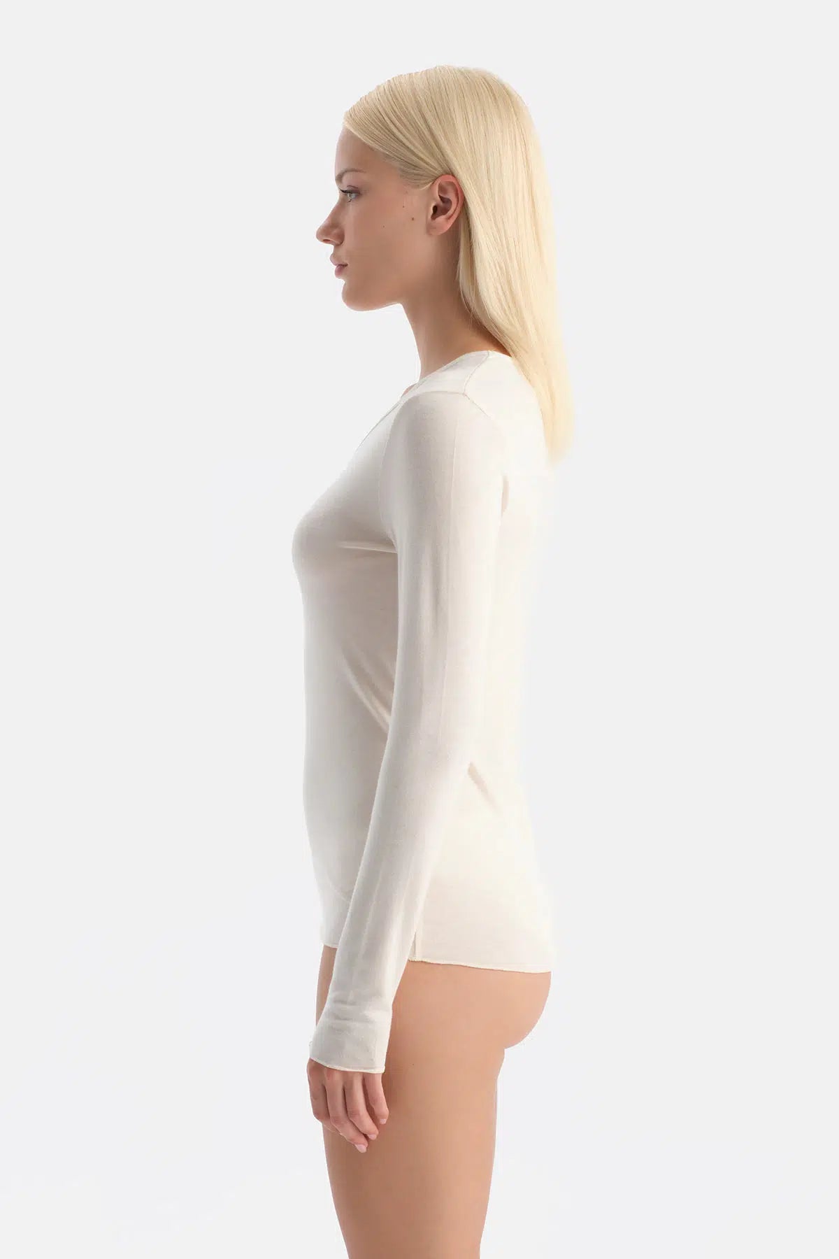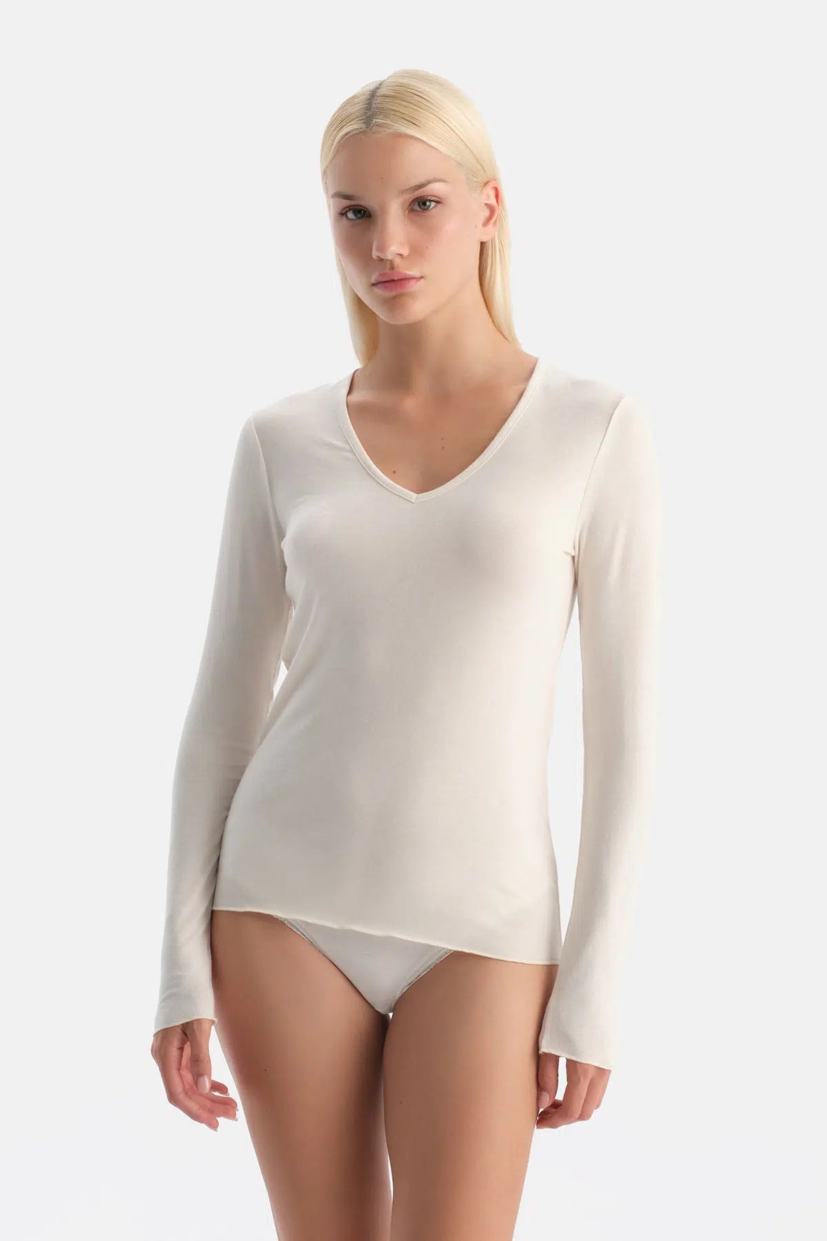Ekru 5119kc Modal Kaşmir V Yaka Uzun Kollu Üst