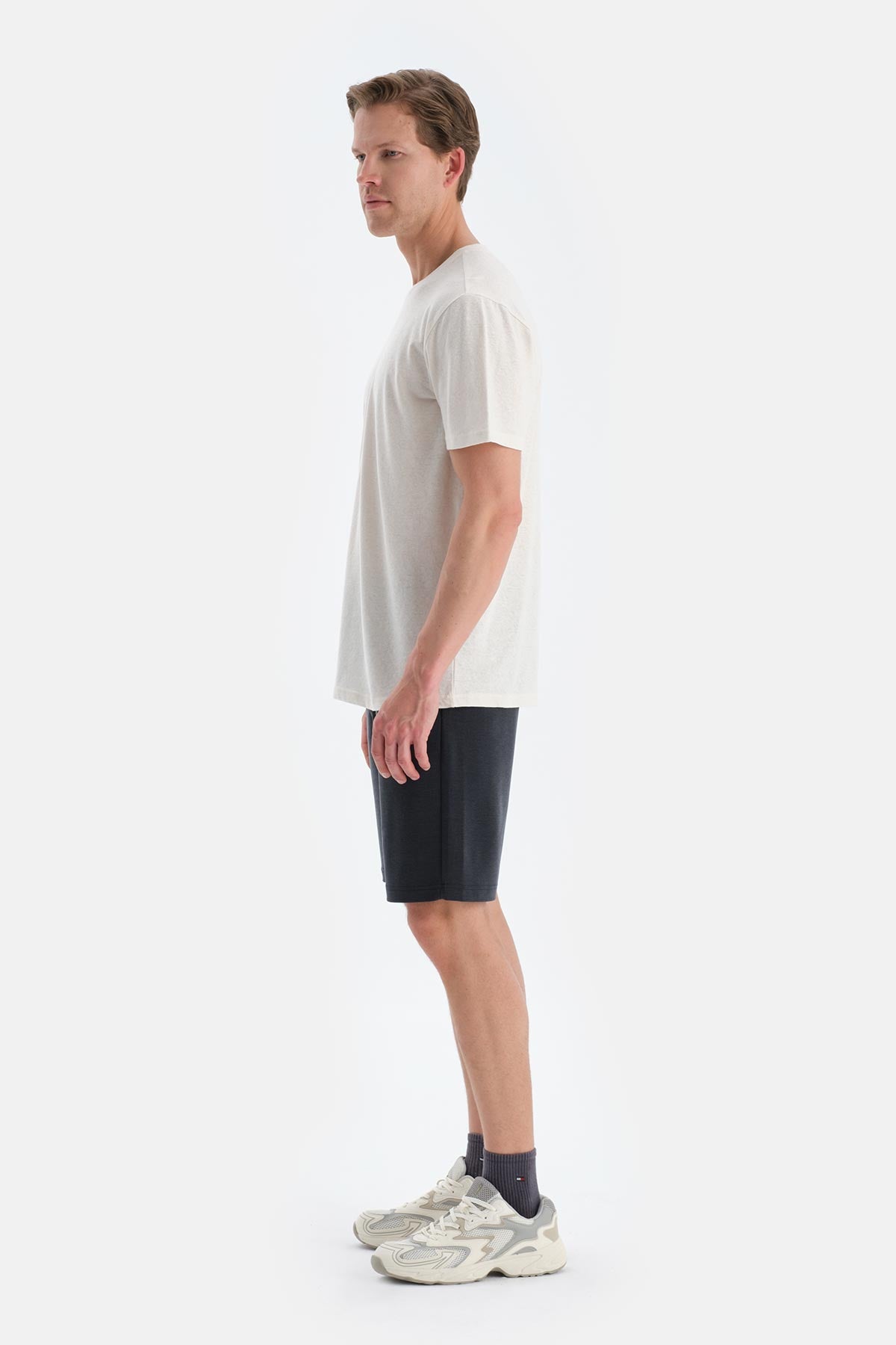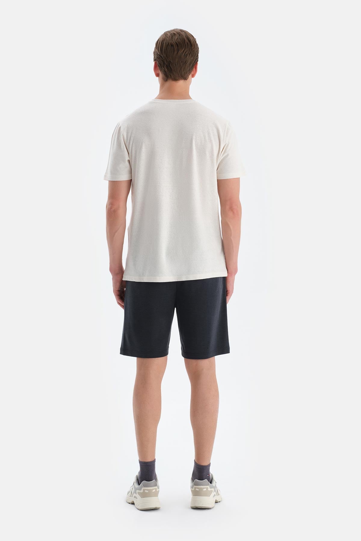 Ekru Bisiklet Yaka Kısa Kollu Örme Keten Tişört