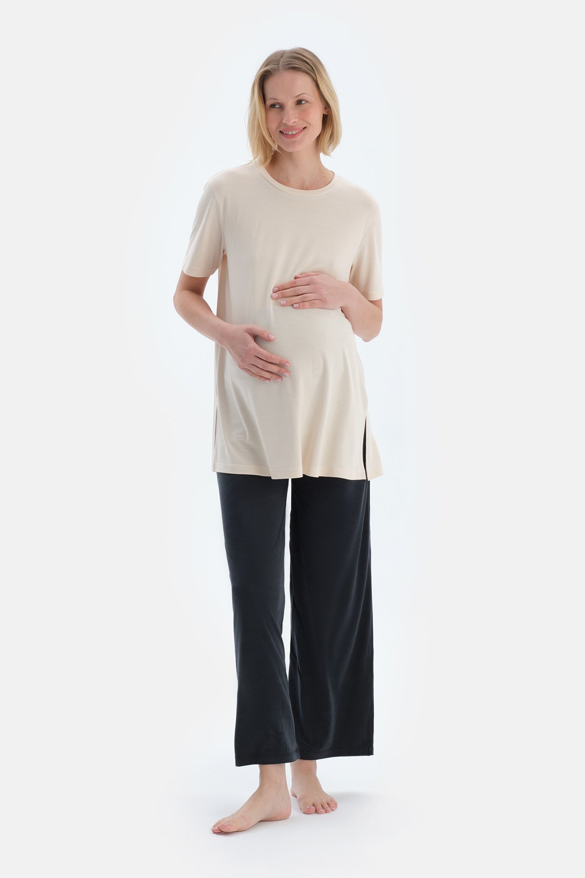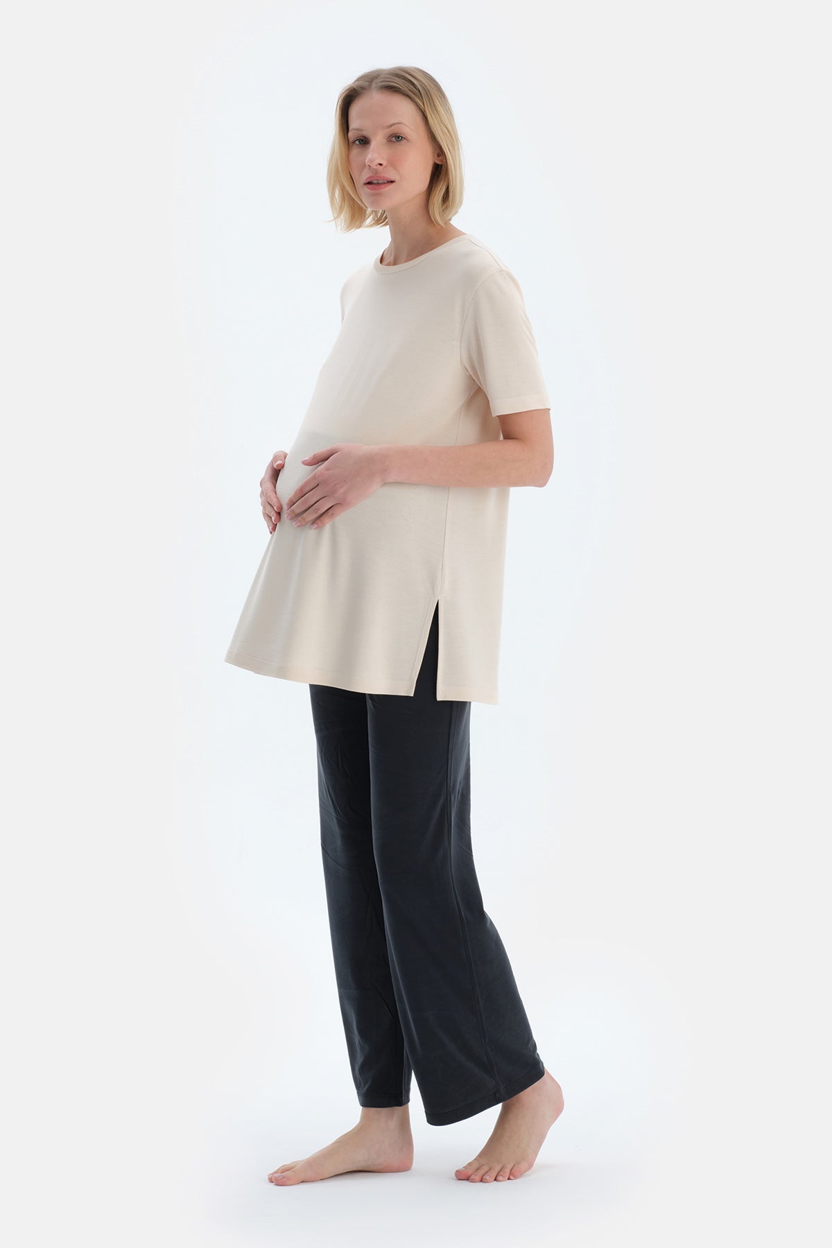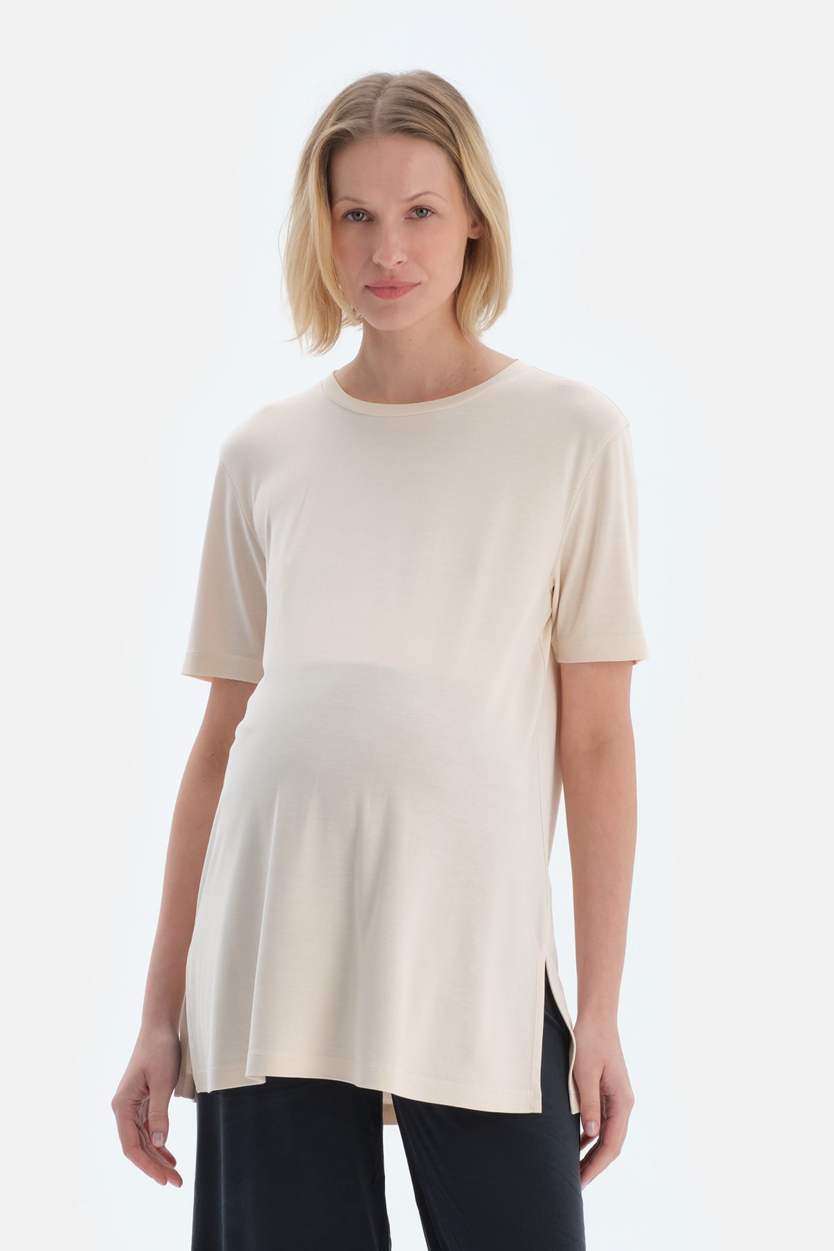 Ekru Bisiklet Yaka Modal Hamile Tişört 25SW11423EB_316 şimdi Dagi'de. Kaliteli, konforlu ve özel fiyatlarla sizleri bekliyor.