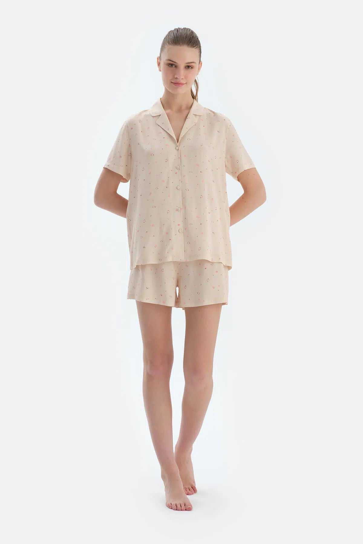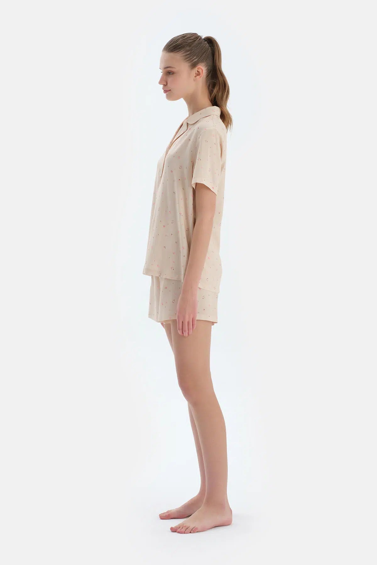 Ekru Çıtır Çiçek Desenli Dokuma Gömlek