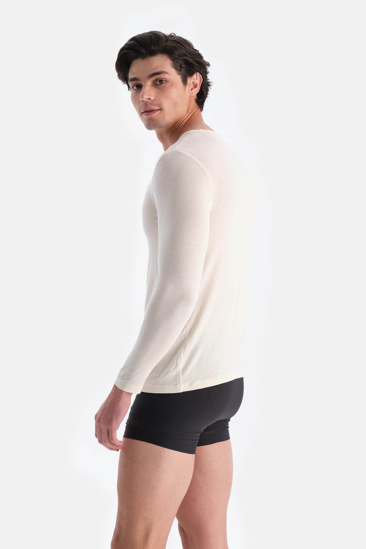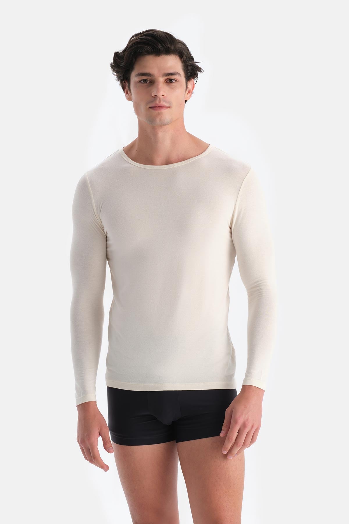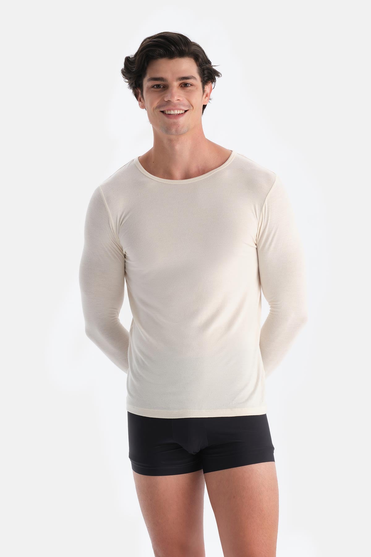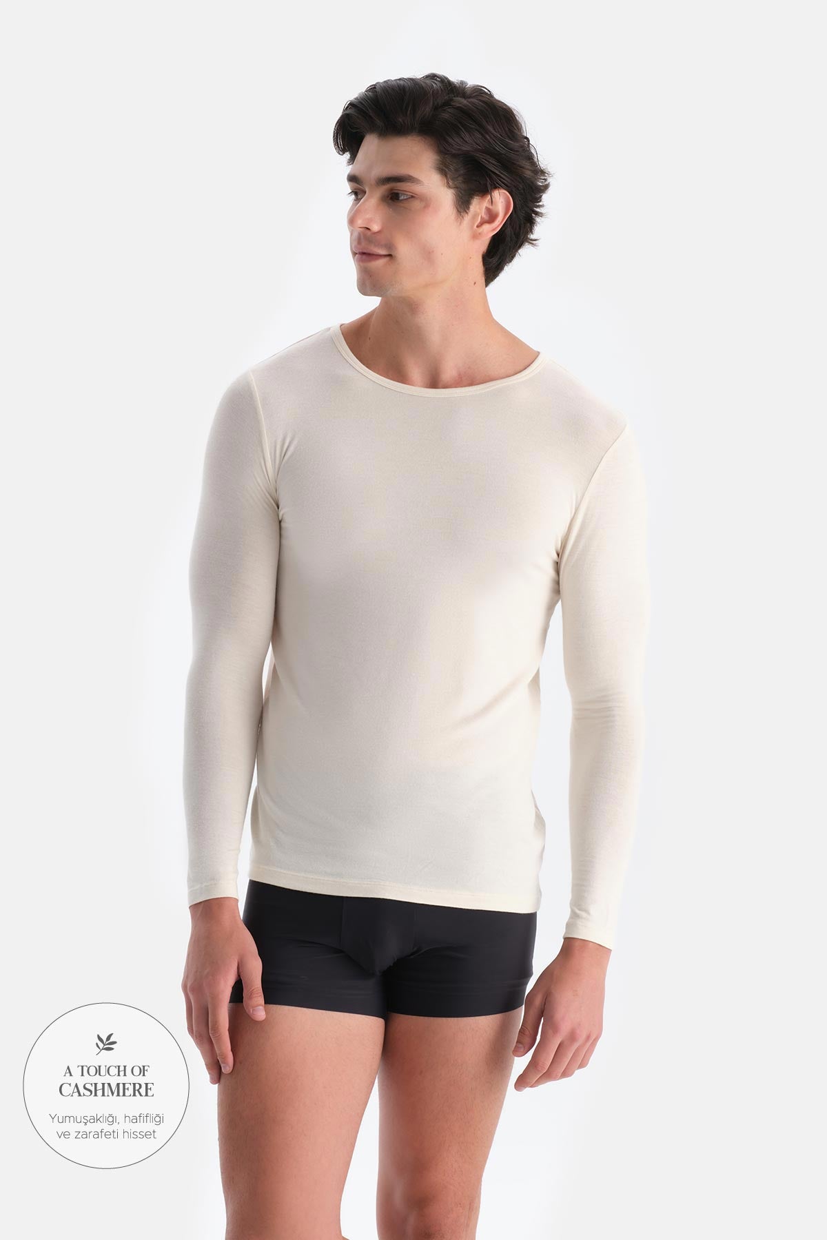 Ekru D1051 Modal Kaşmir Bisiklet Yaka Uzun Kollu Üst