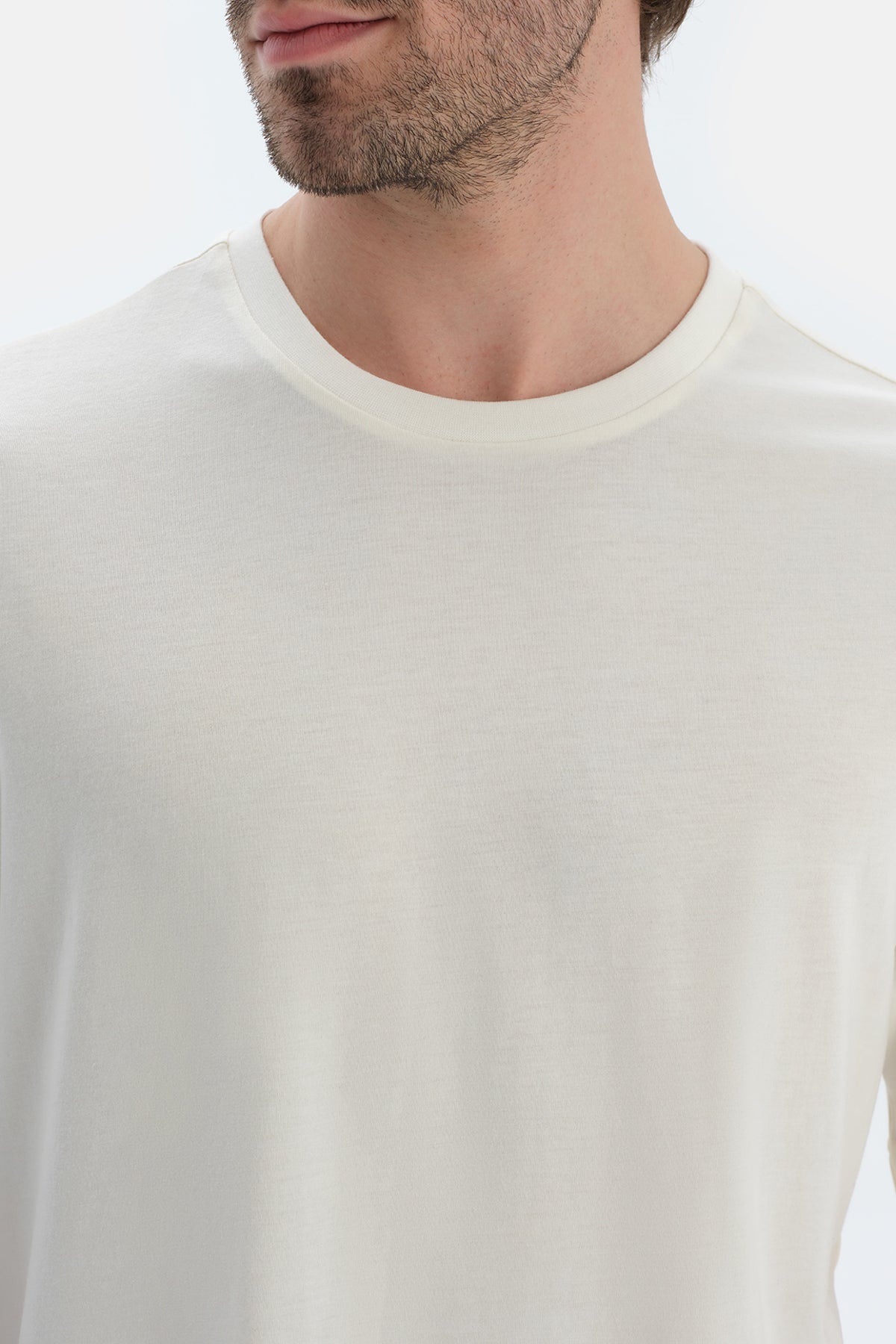 Ekru Kısa Kollu Bisiklet Yaka Penye Modal Tişört