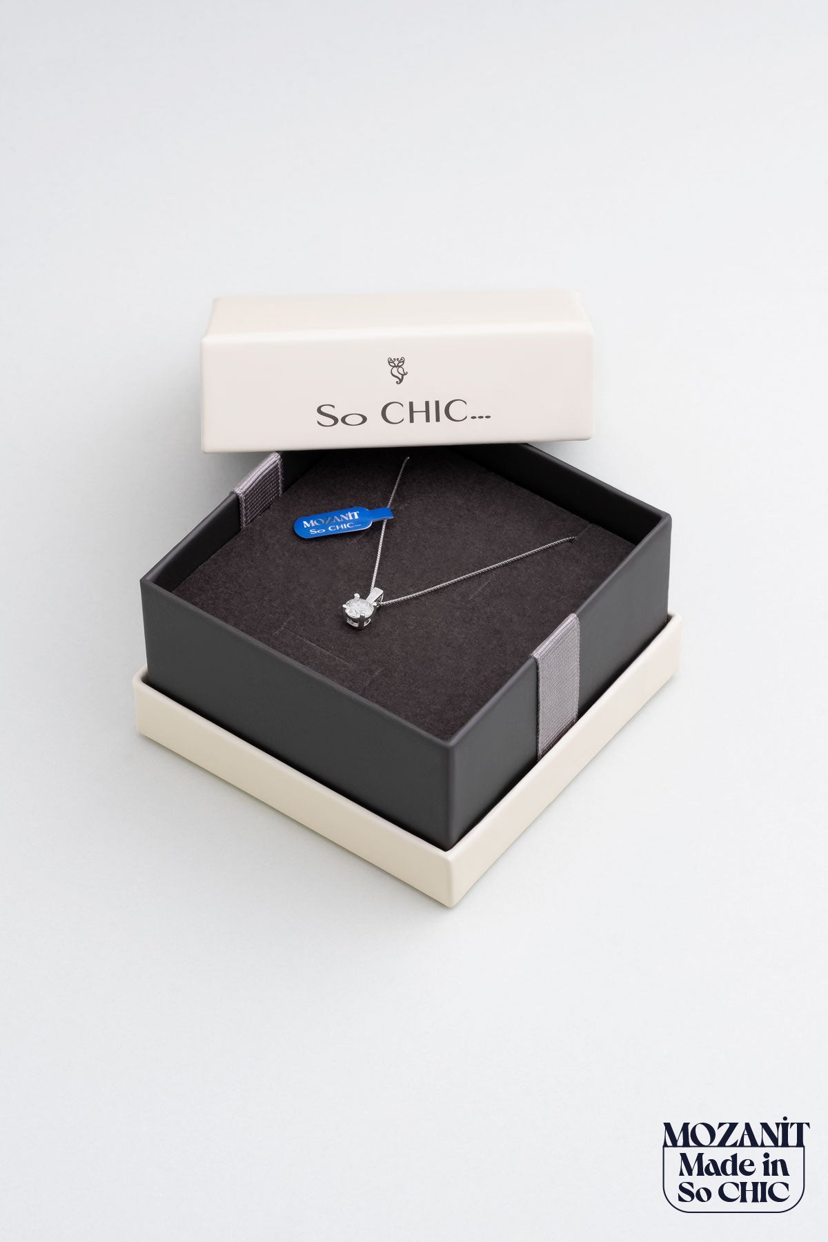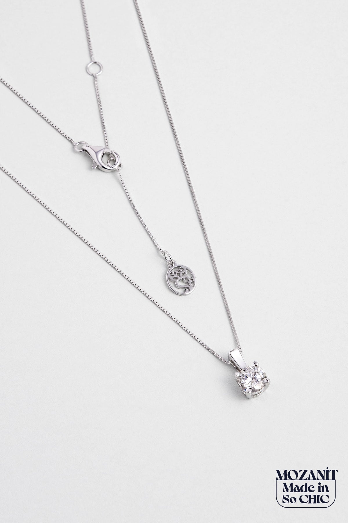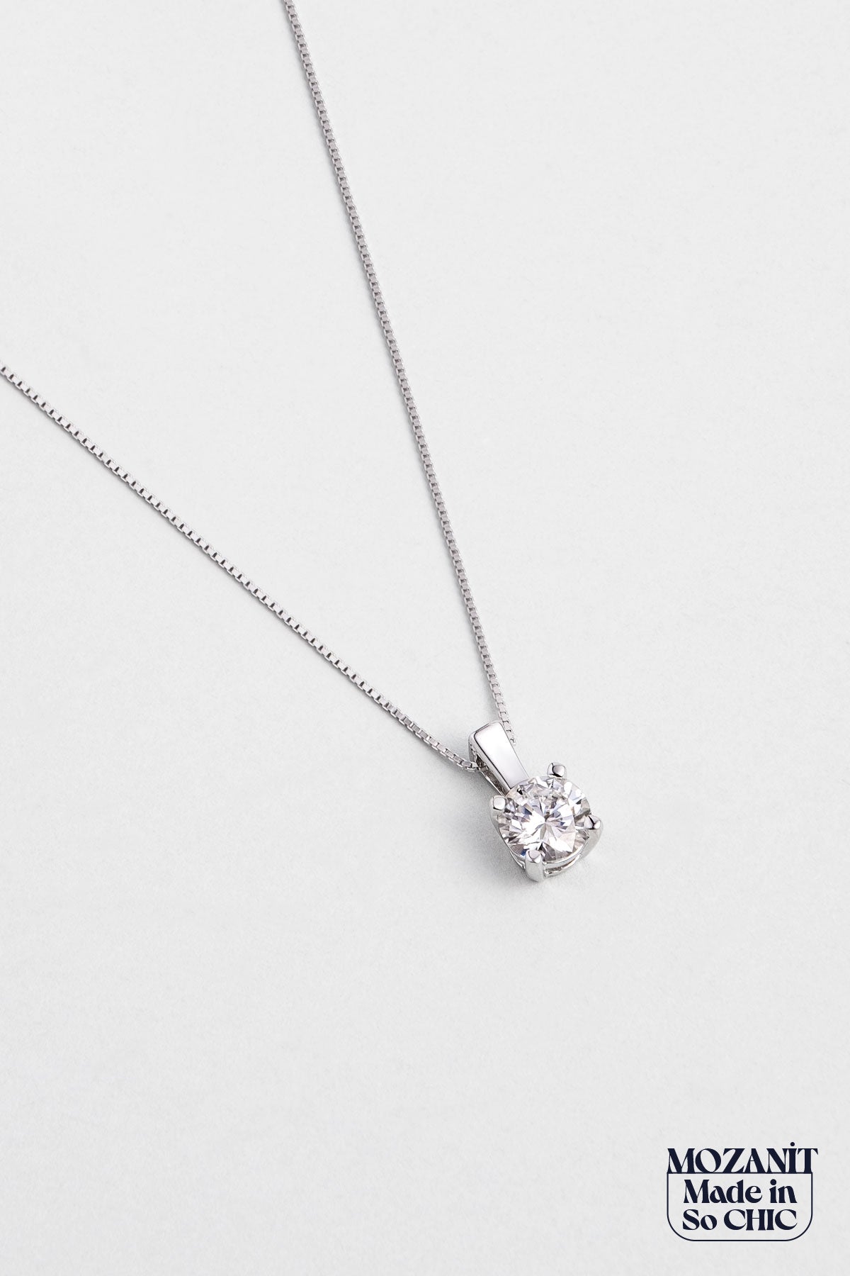 Elegant Mozanit 18 Ayar Beyaz Altın Kaplama 45 Cm Gümüş Tektaş Kolye 5205520199