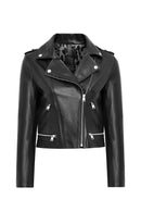 Eliza Kadın Siyah Biker Kısa Deri Ceket