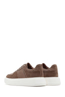 Erkek Bej Bağcıklı Kalın Tabanlı Süet Deri Sneaker