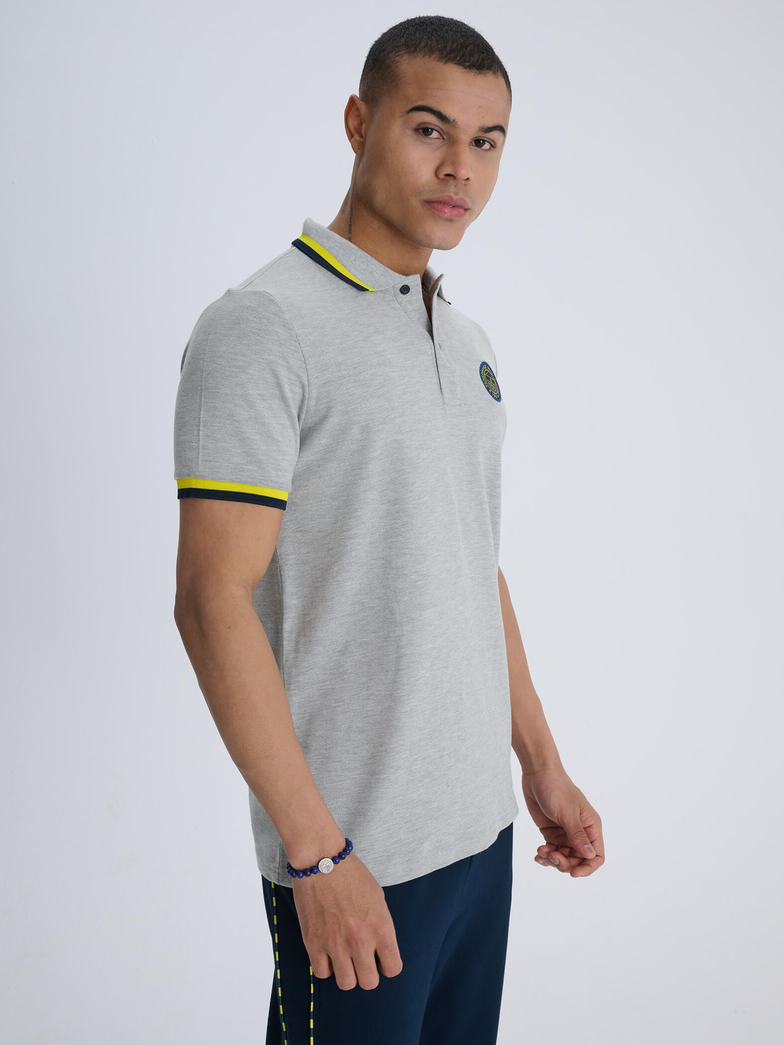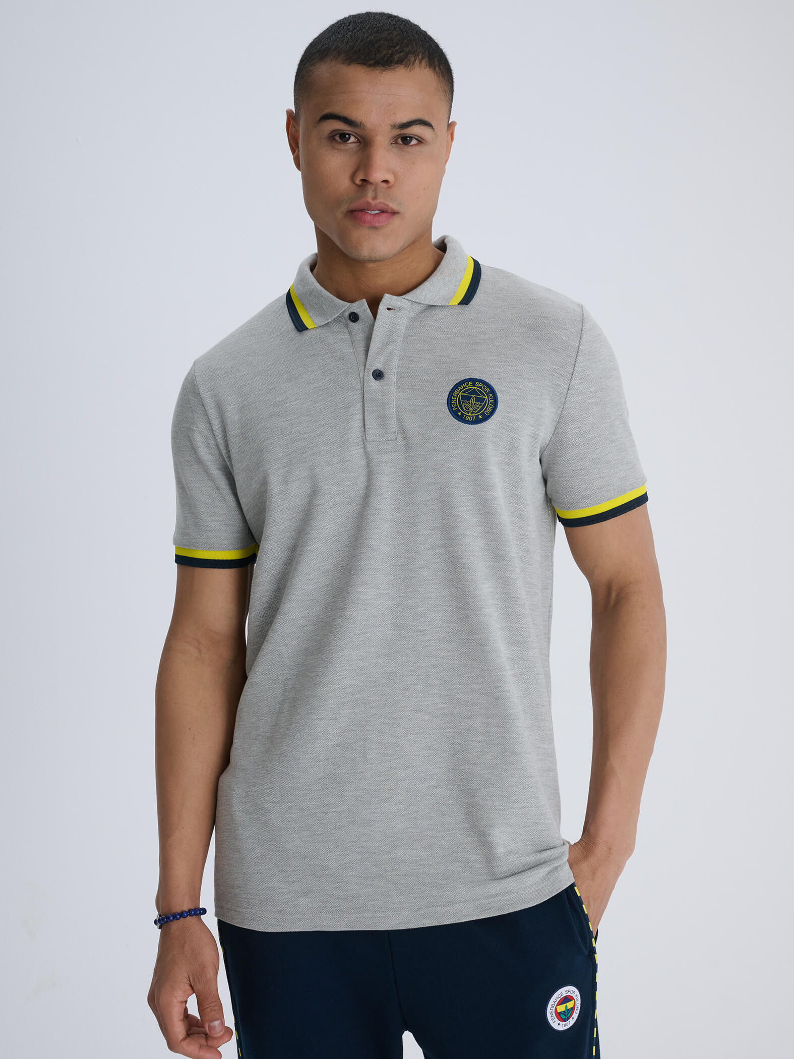 Fenerbahçe Gri Melanj Tribün Logolu Erkek Polo Tshirt