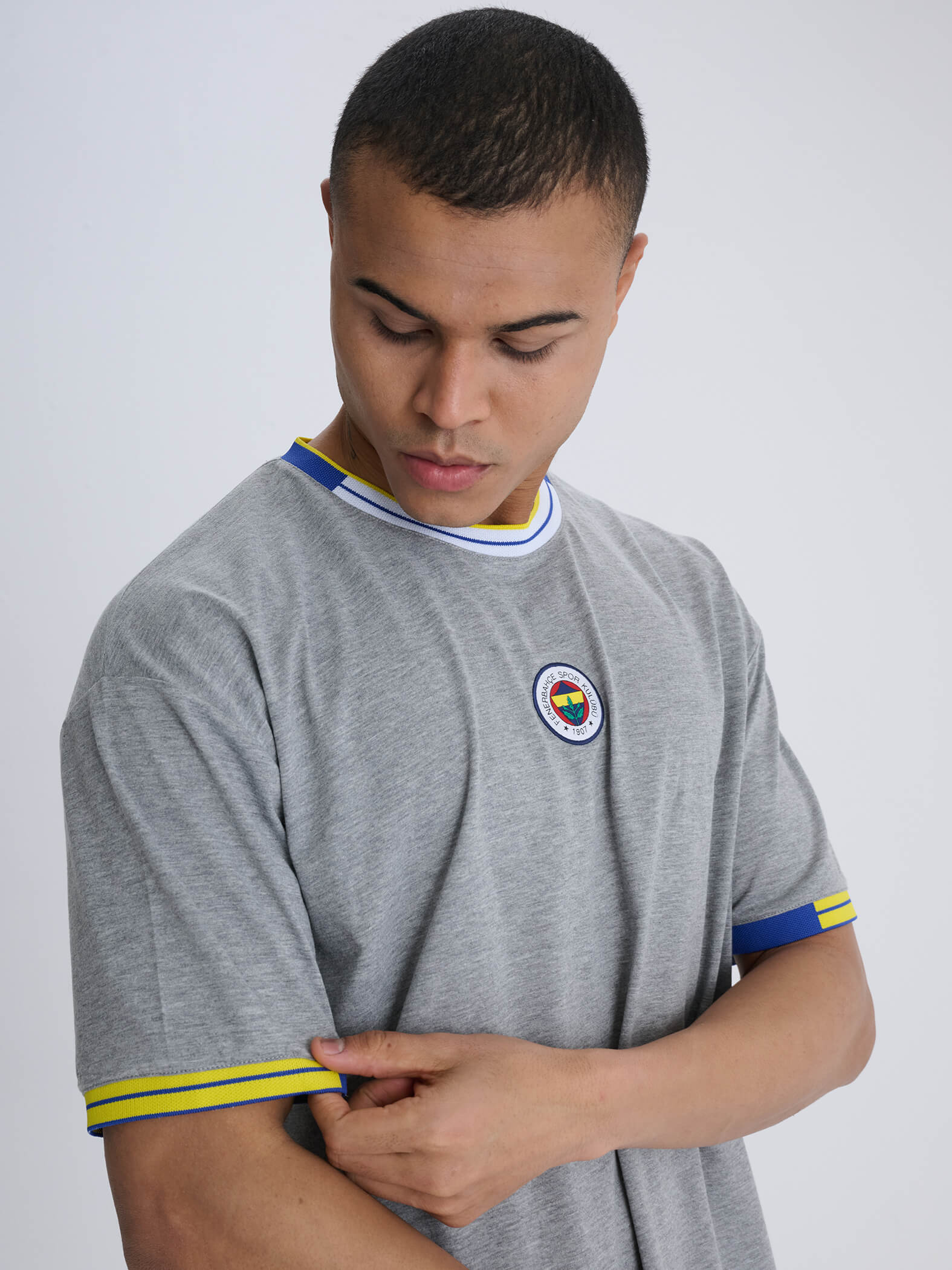 Fenerbahçe Gri Melanj Tribün Triko Bantlı Erkek Oversize Tshirt