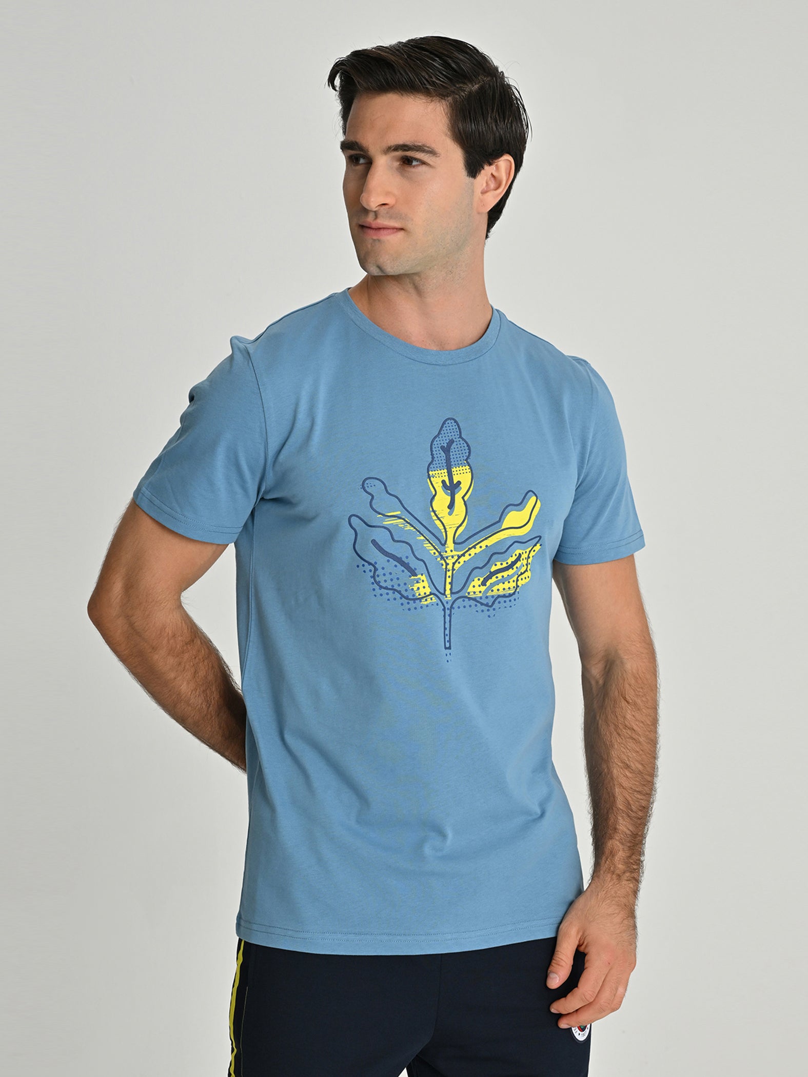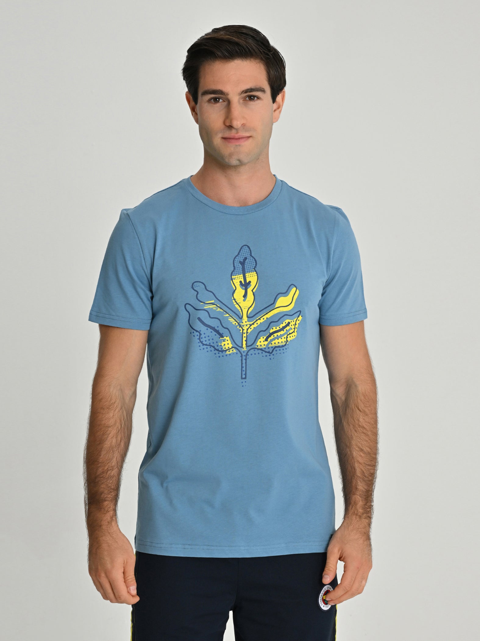 Fenerbahçe Açık Mavi Tribün Halftone Detaylı Palamut Erkek Tshirt