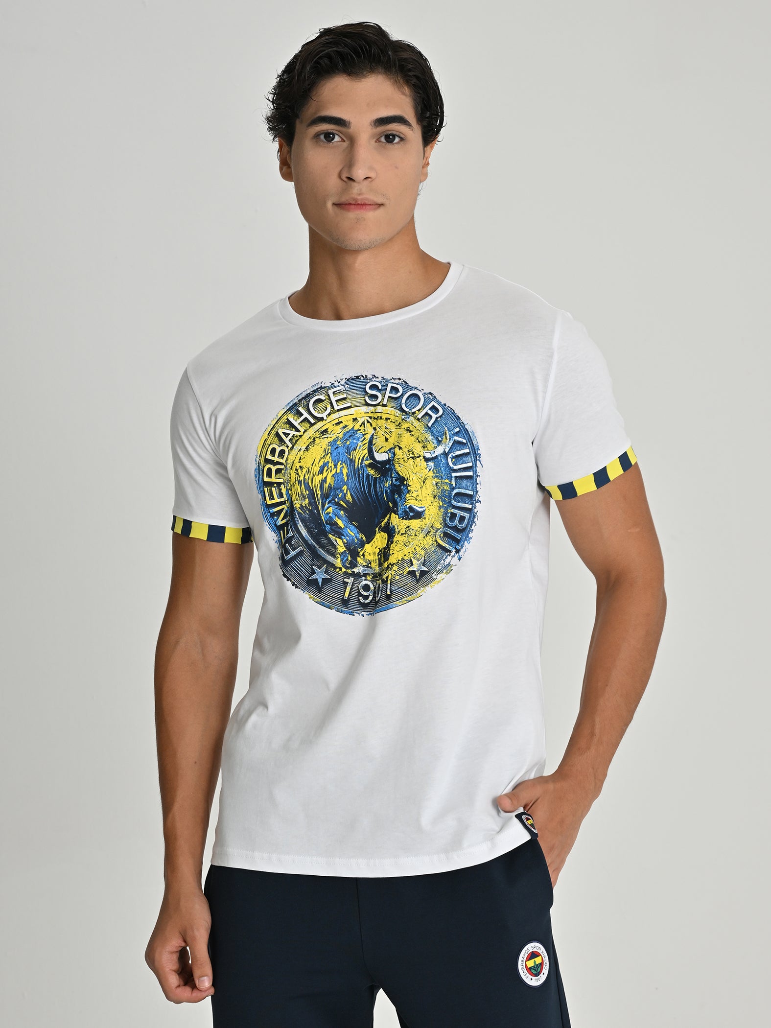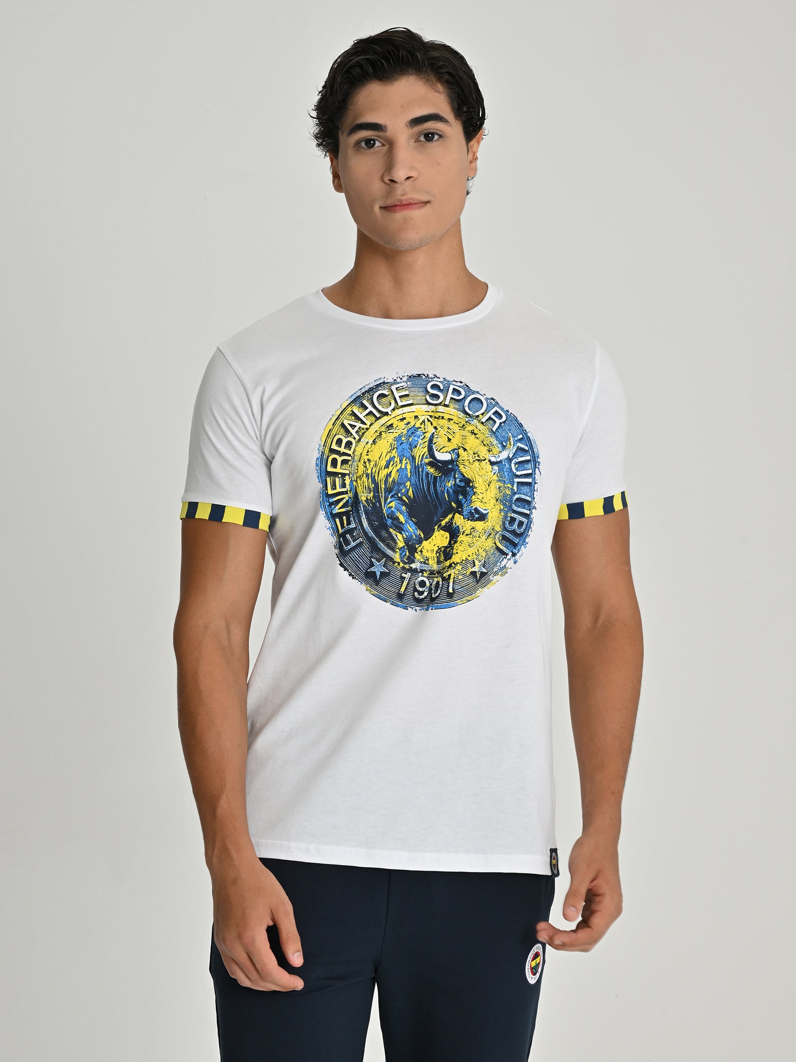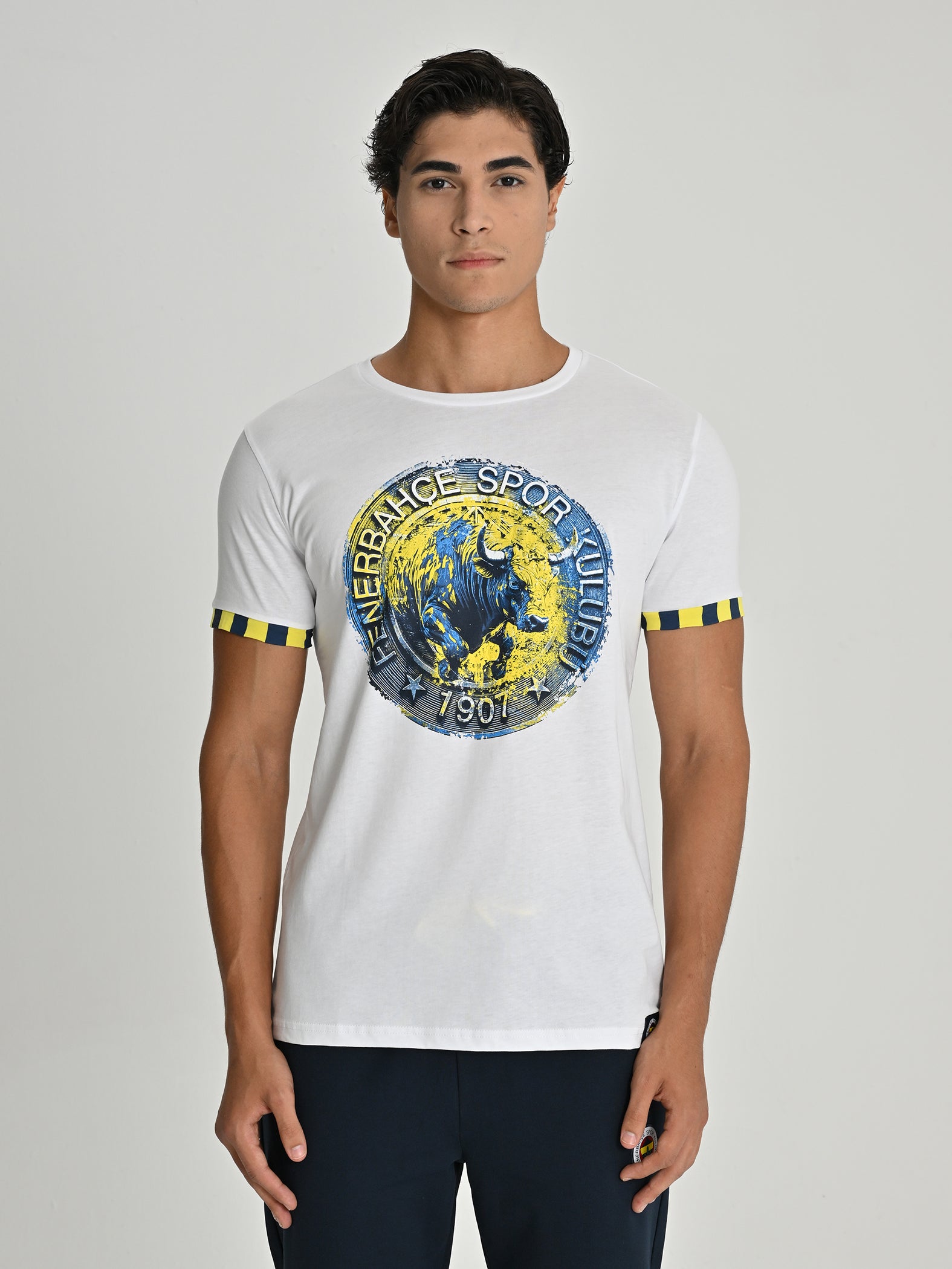 Fenerbahçe Beyaz Tribün Boğalı Logo Erkek Tshirt