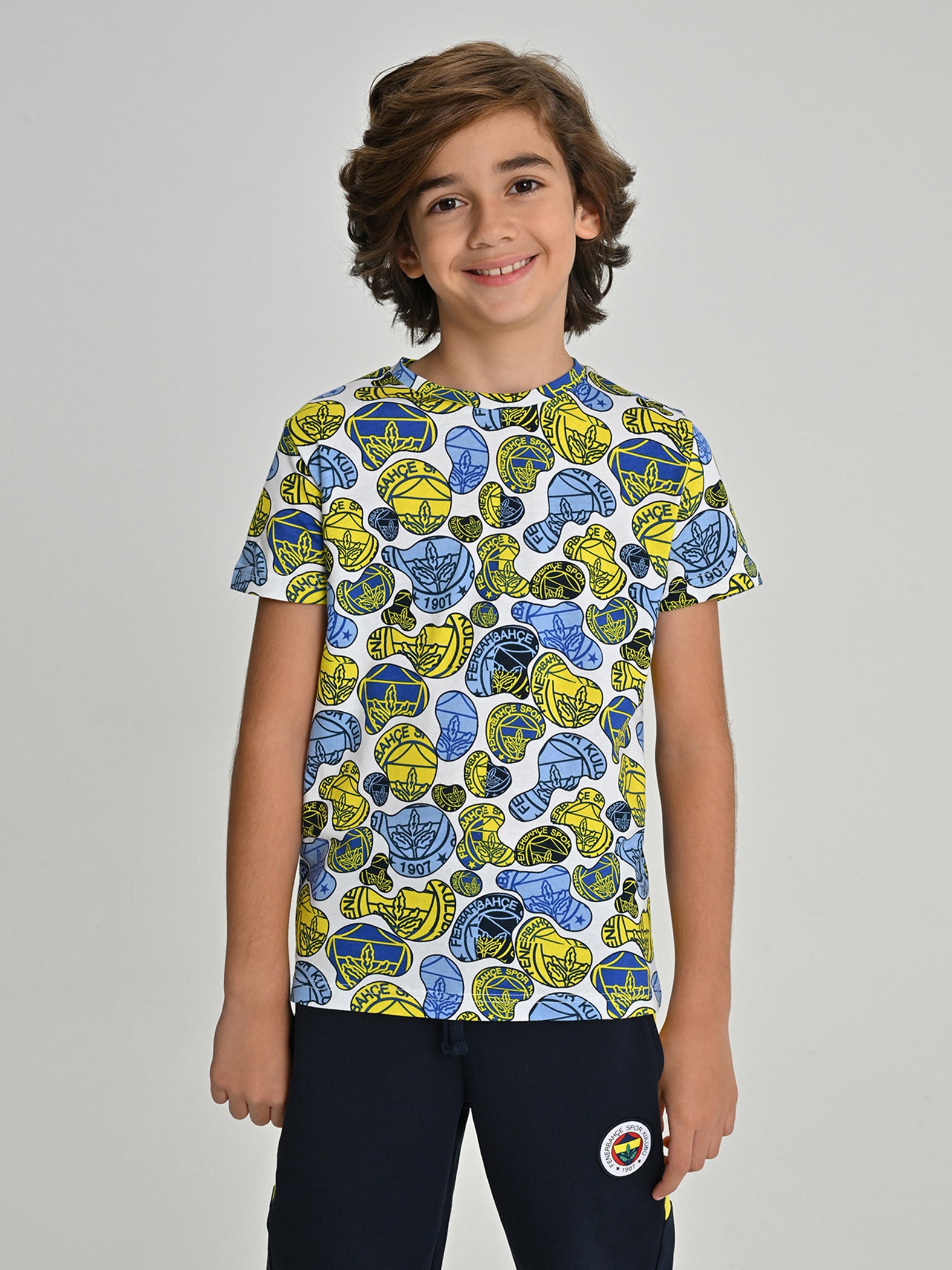 Fenerbahçe Beyaz Tribün Logo Pattern Çocuk Tshirt