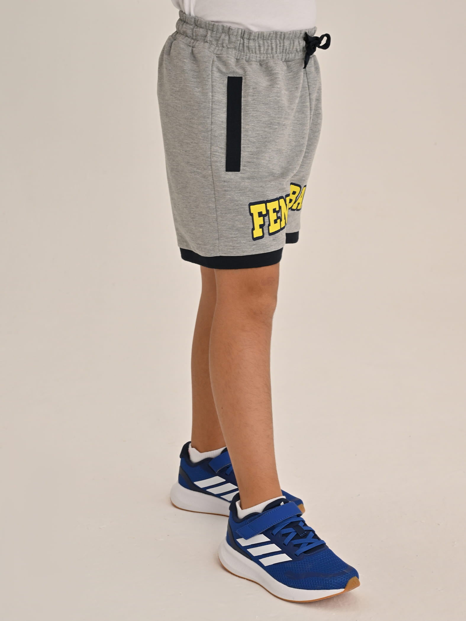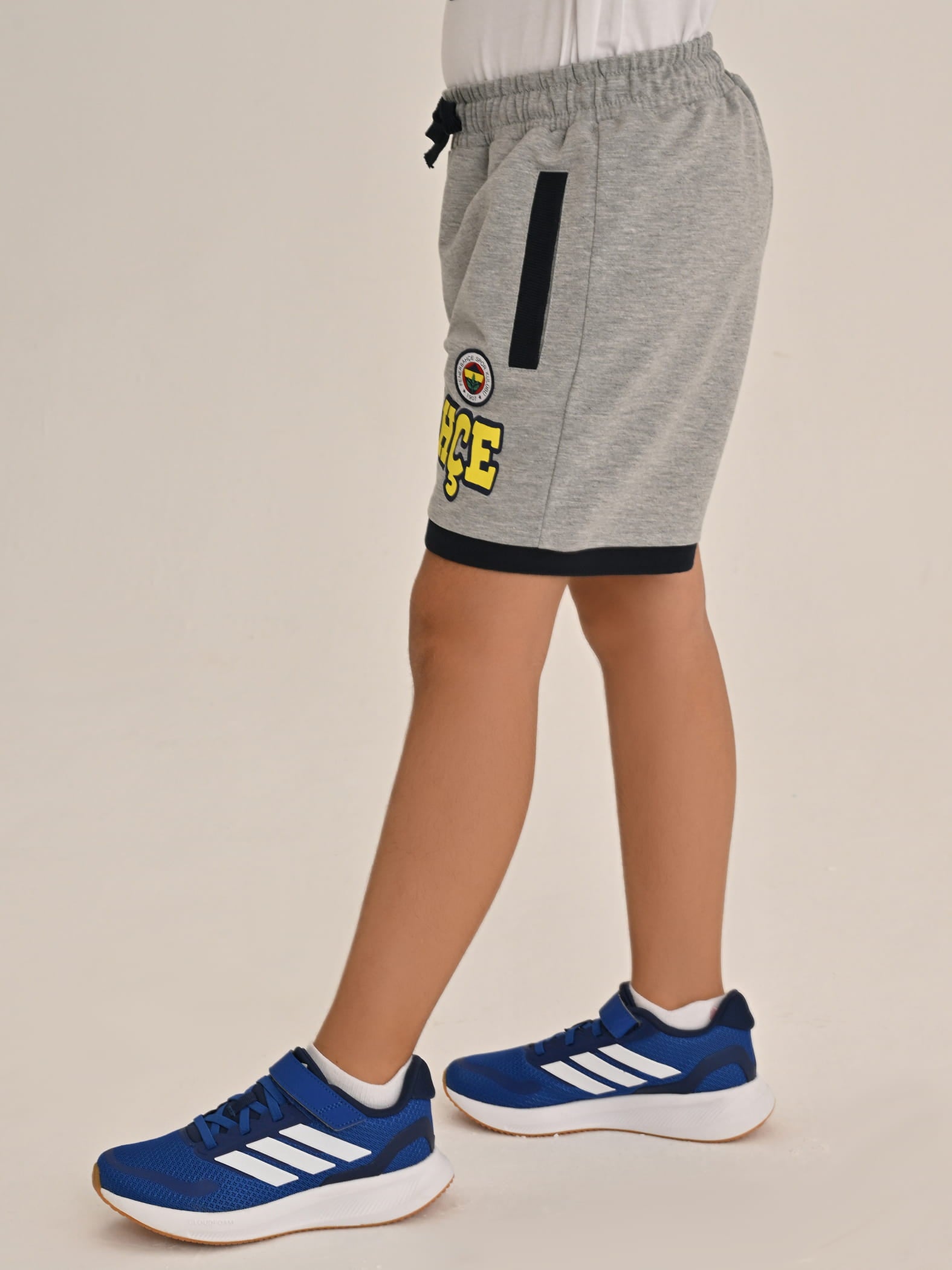Fenerbahçe Gri Melanj Tribün Altı Renk Logolu Çocuk Şort