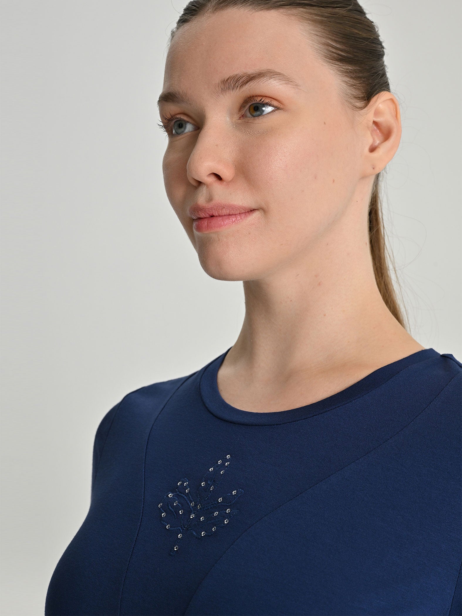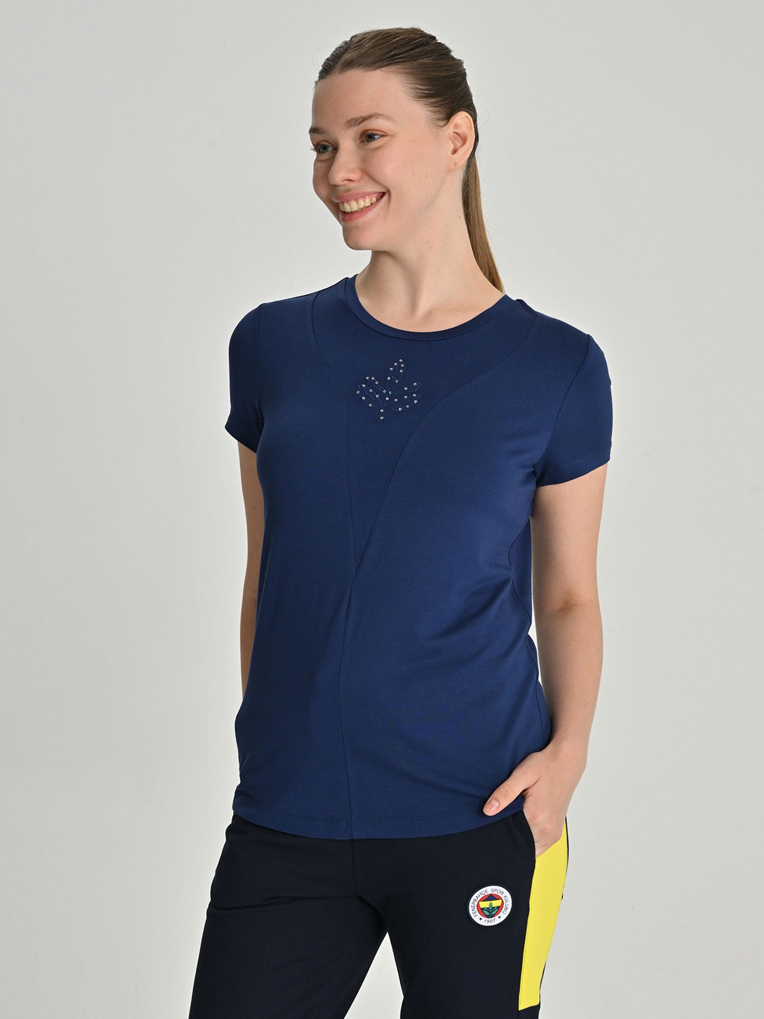 Fenerbahçe Lacivert Trend Taşlı Palamutlu Kadın Tshirt