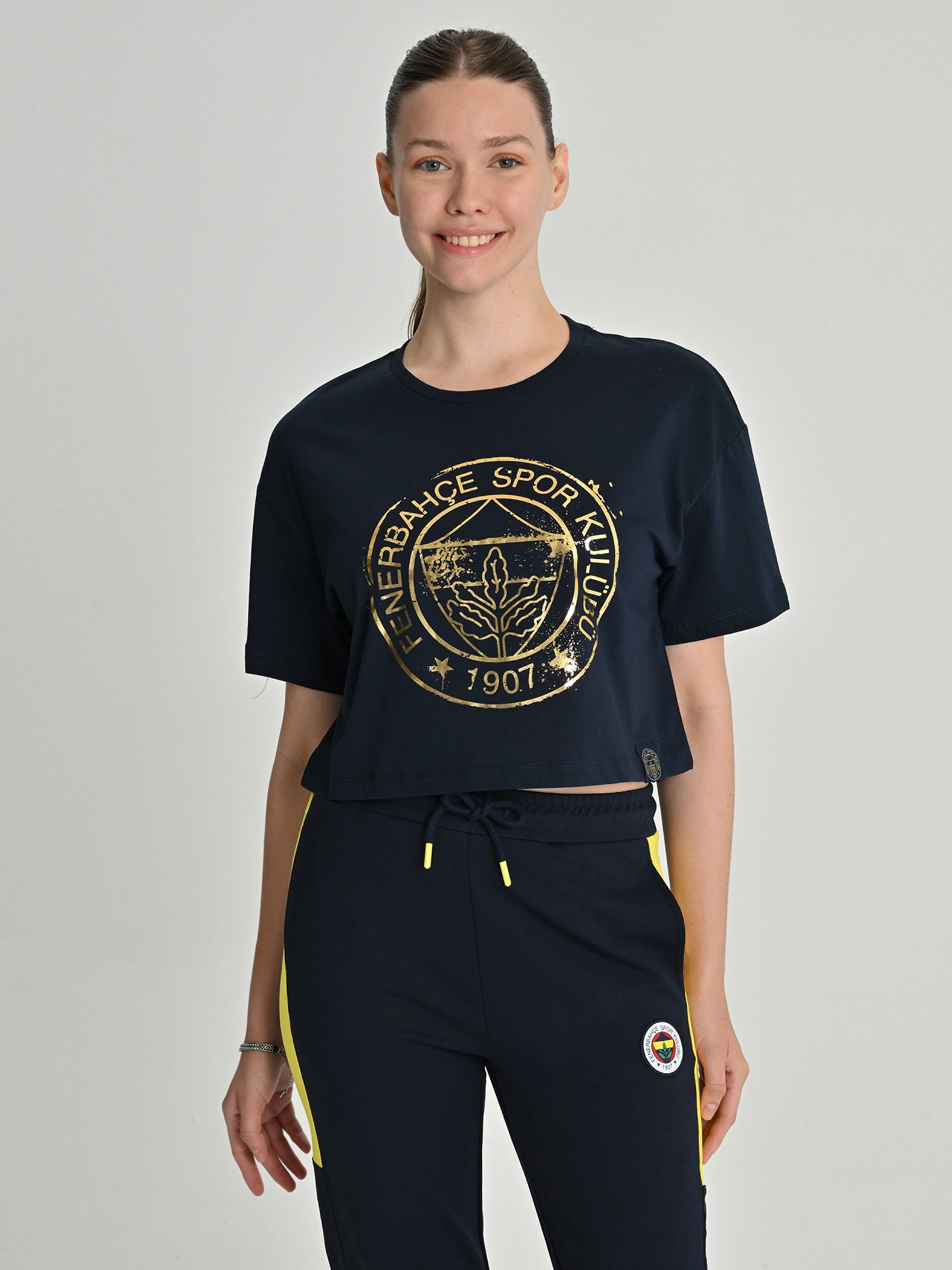 Fenerbahçe Lacivert Tribün Gold Logolu Kadın Tshirt