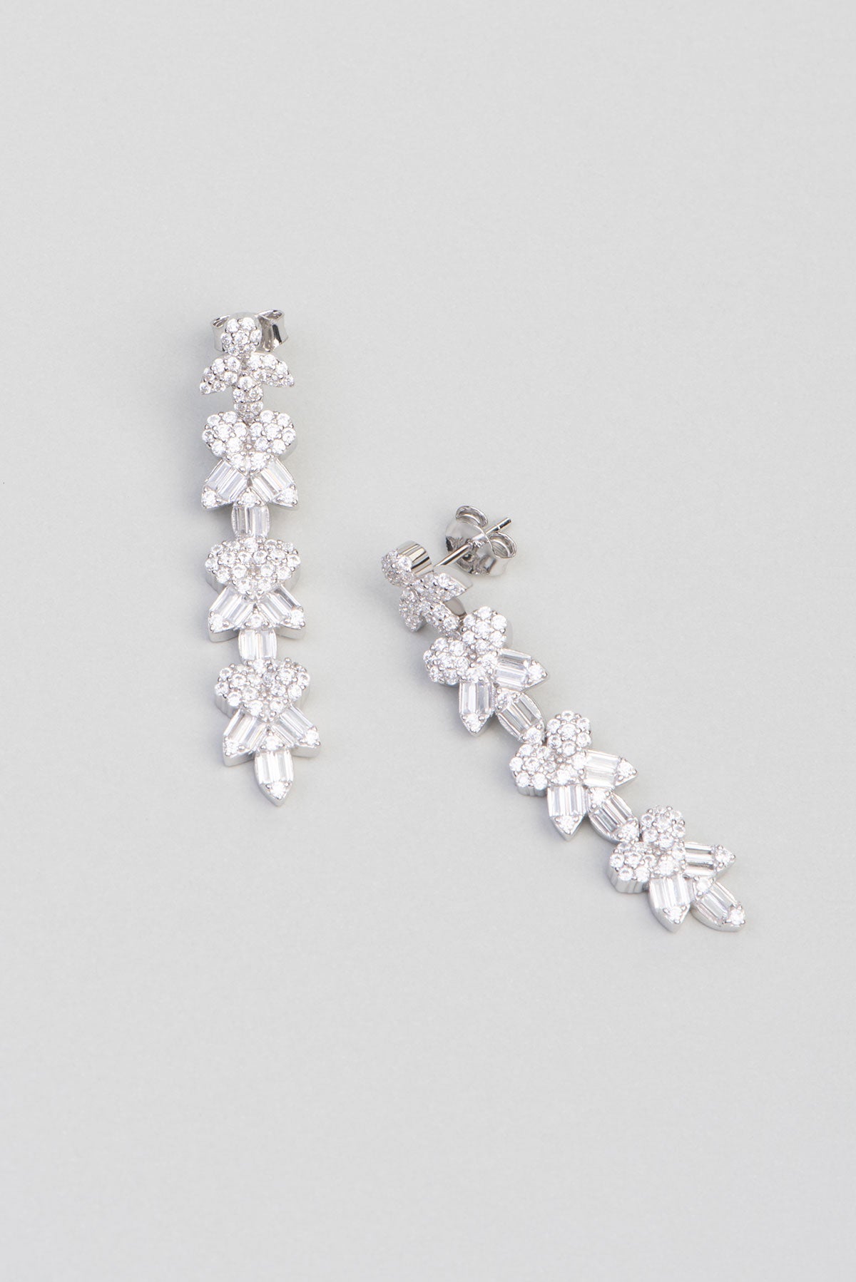 Gelin Çiçeği 18 Ayar Beyaz Altın Kaplama Gümüş Baget Küpe 5072680199