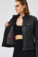 İç Astar: TekstilMateryal: Deri.Derimod’un Zarifliği ve Şıklığı bir arada sunan Gigi Kadın Siyah Kısa Deri Ceket ile tarzınızı konuşturun. Ürünün kodu: 24WGM543251 11