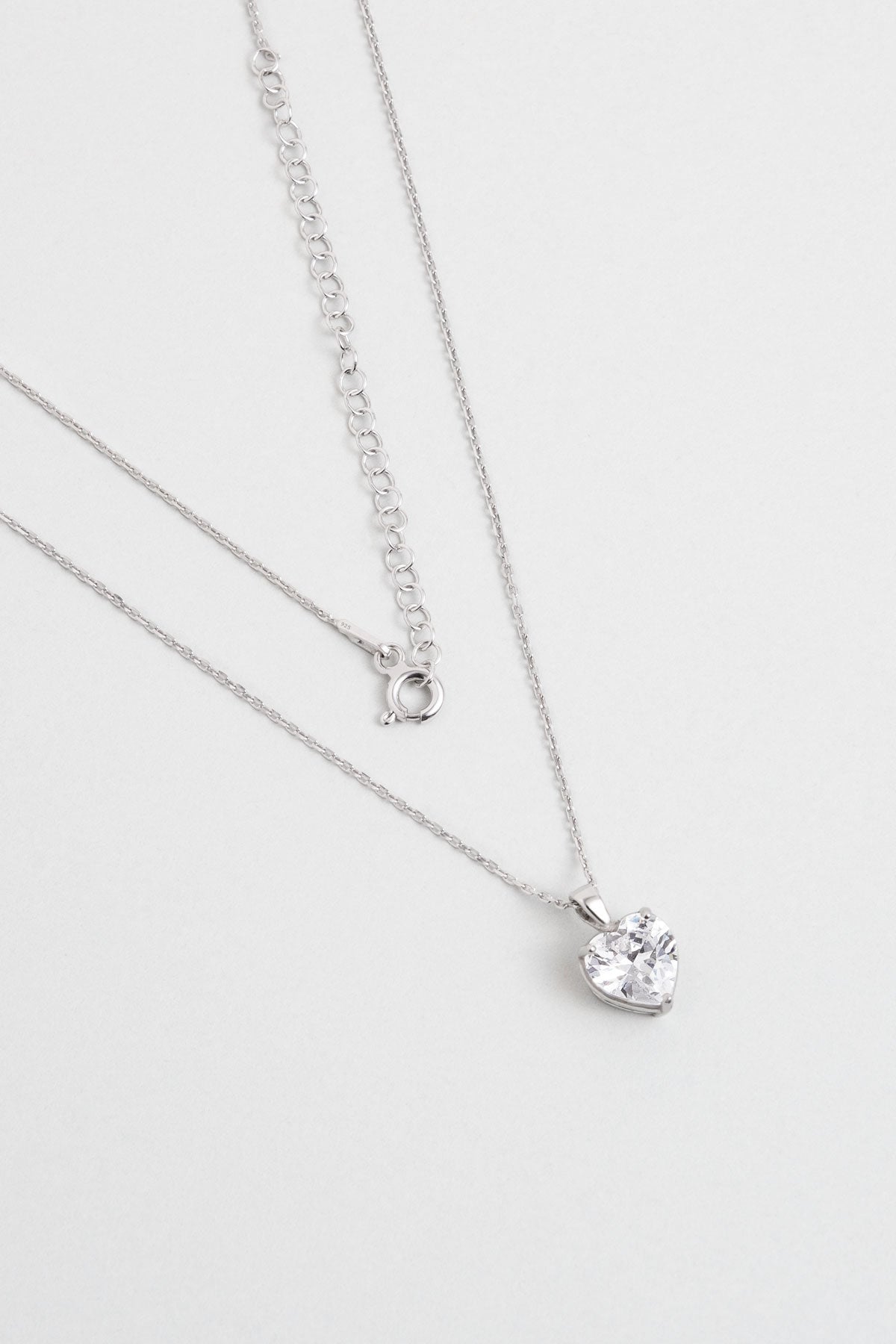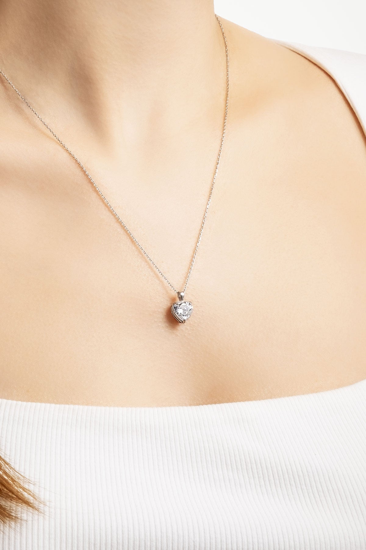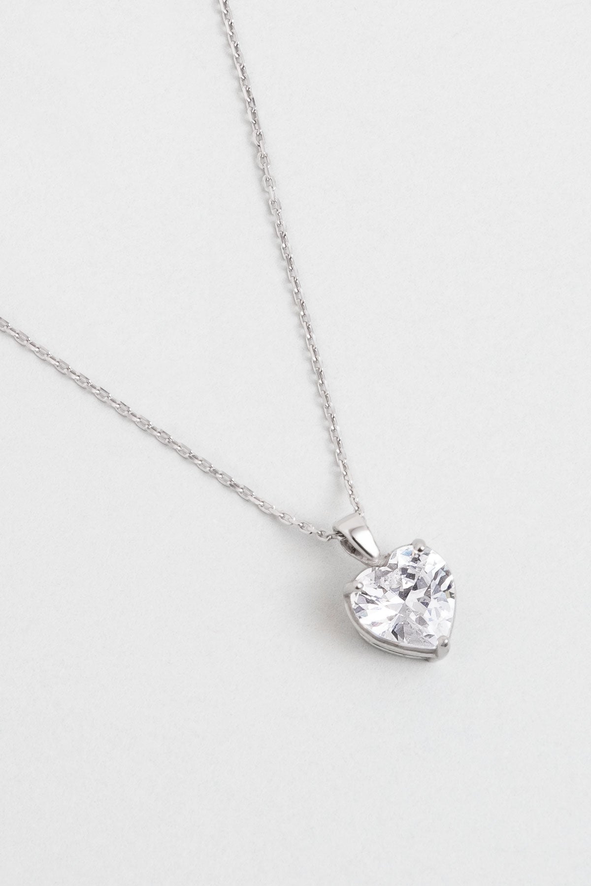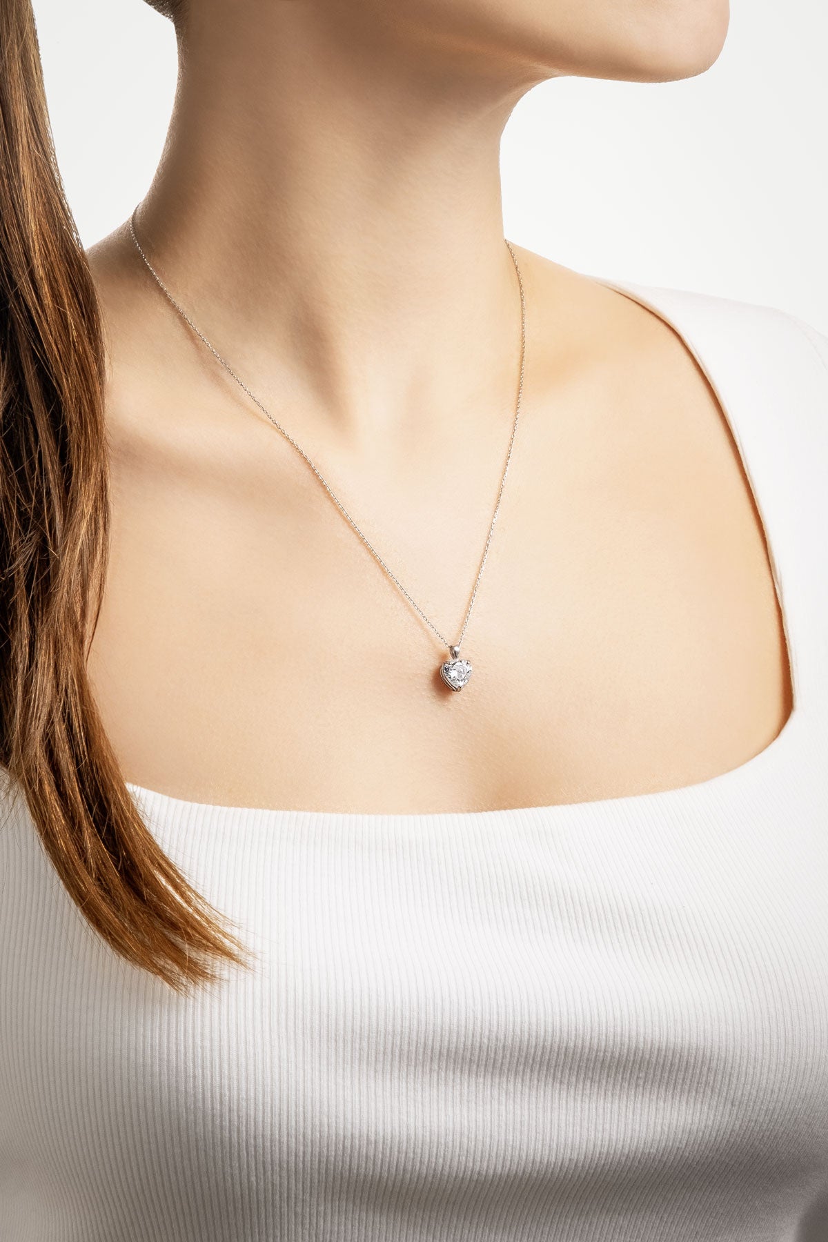 Gizemli Kalp 18 Ayar Beyaz Altın Kaplama 45 Cm Gümüş Kolye 07309060199