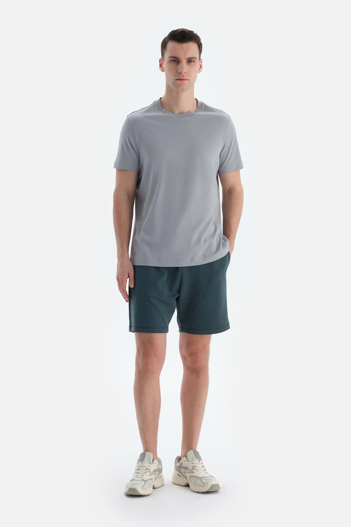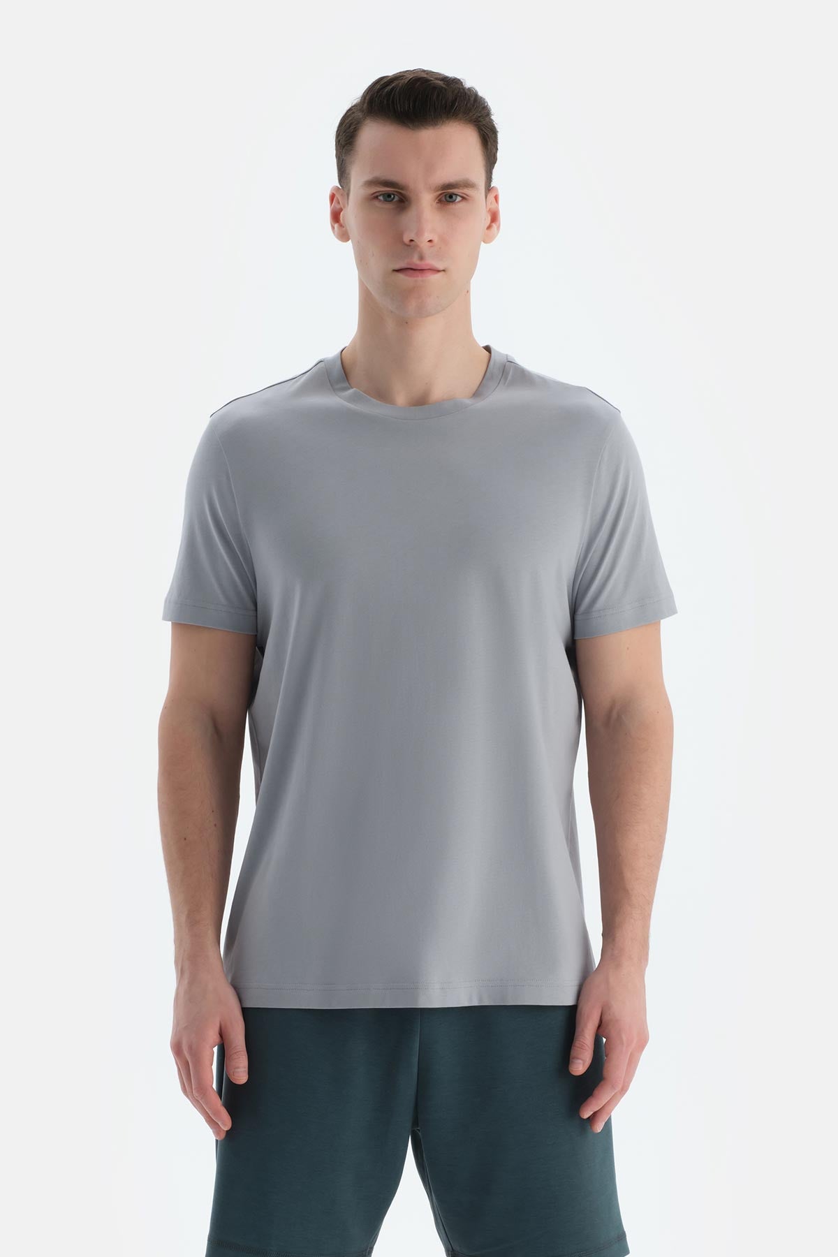 Gri Bisiklet Yaka Kısa Kollu Supima Tişört