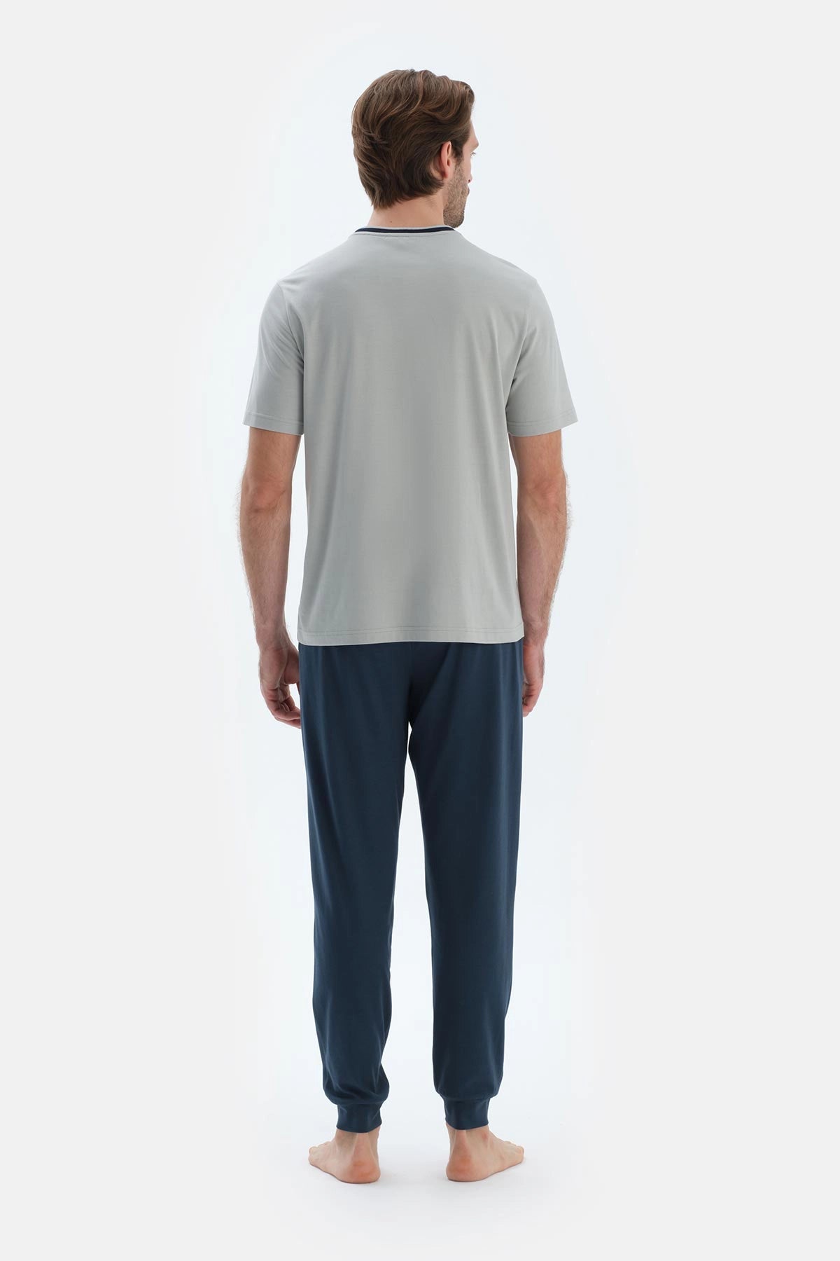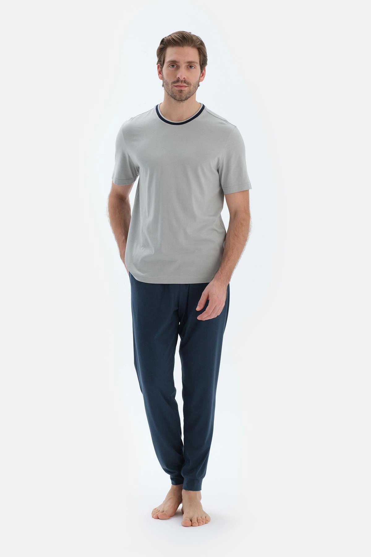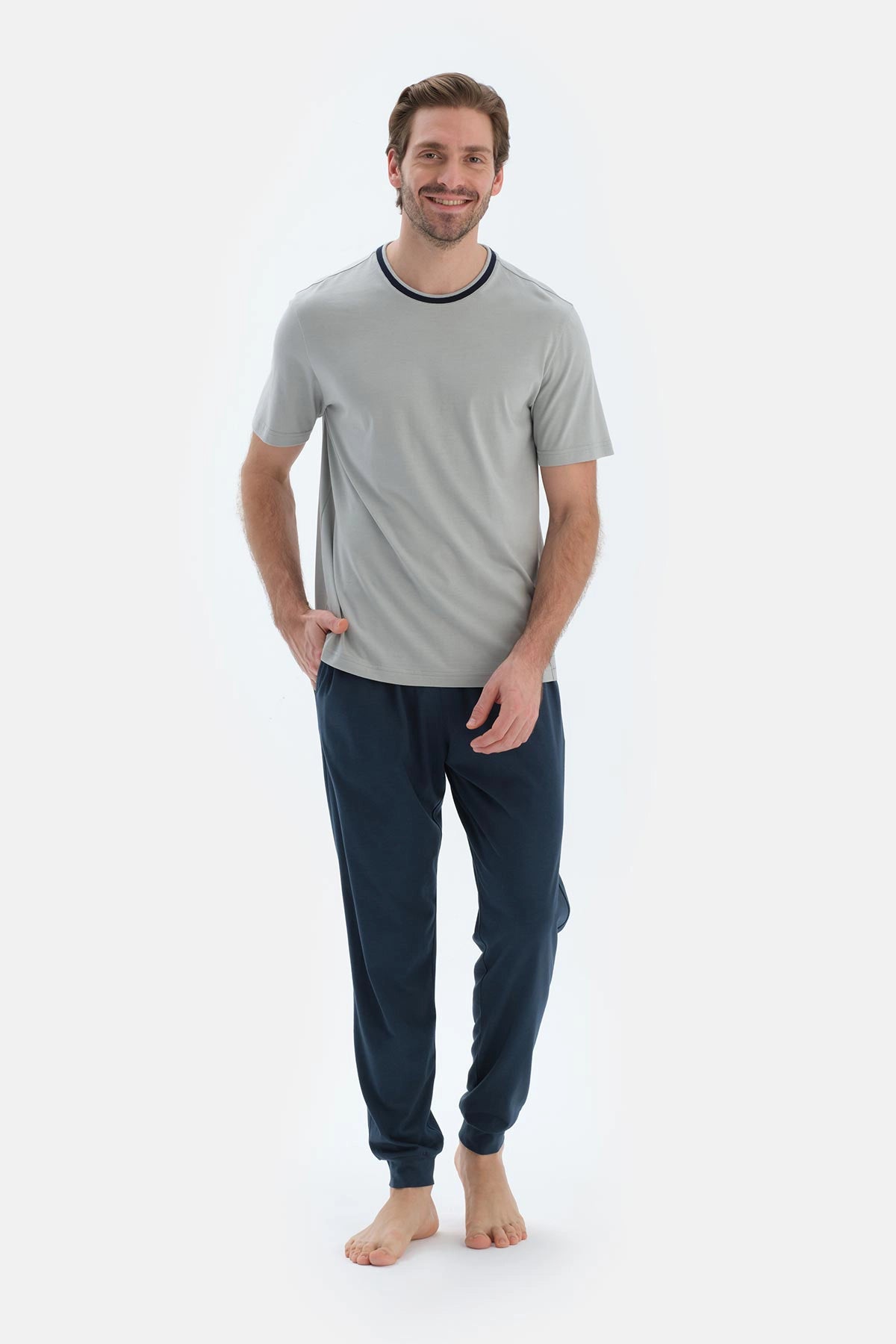 Gri Bisiklet Yaka Kısa Kollu Tişört Jogger Paça Pantolon Basıc Pijama