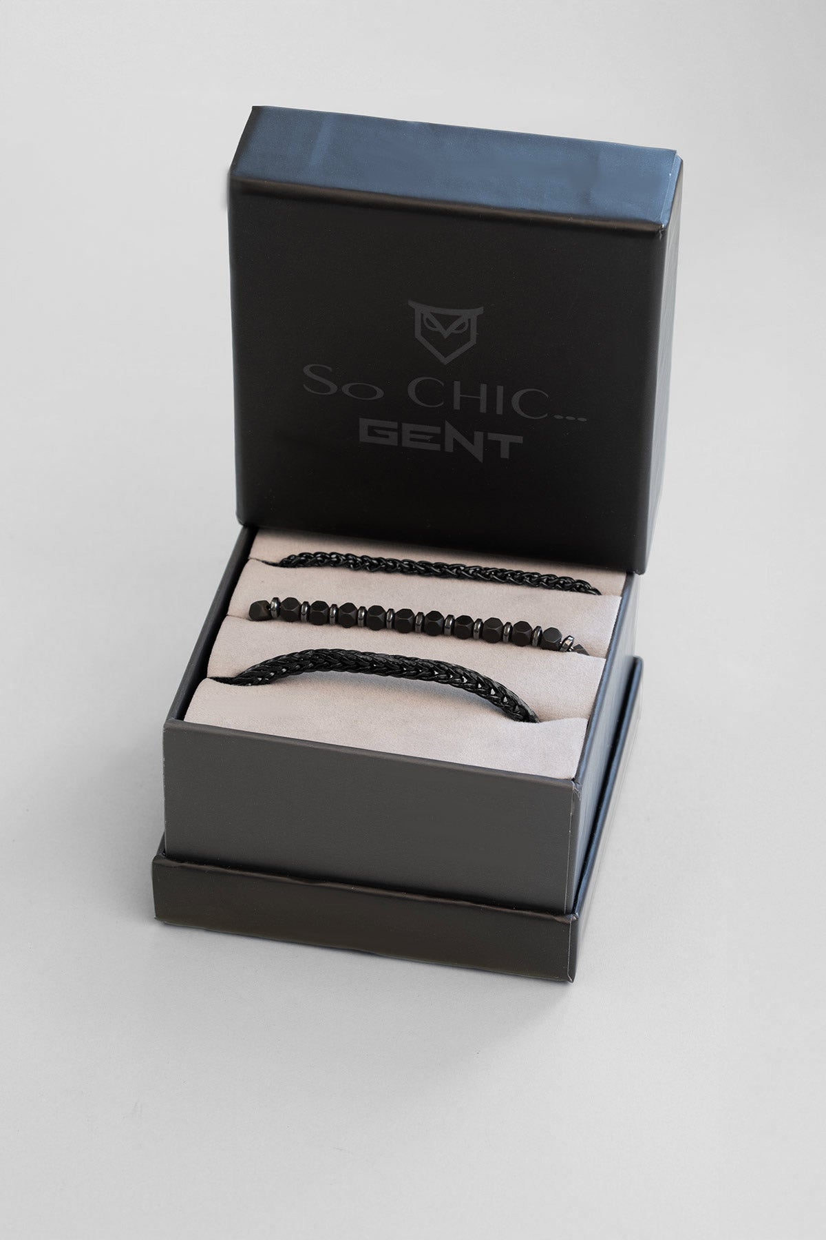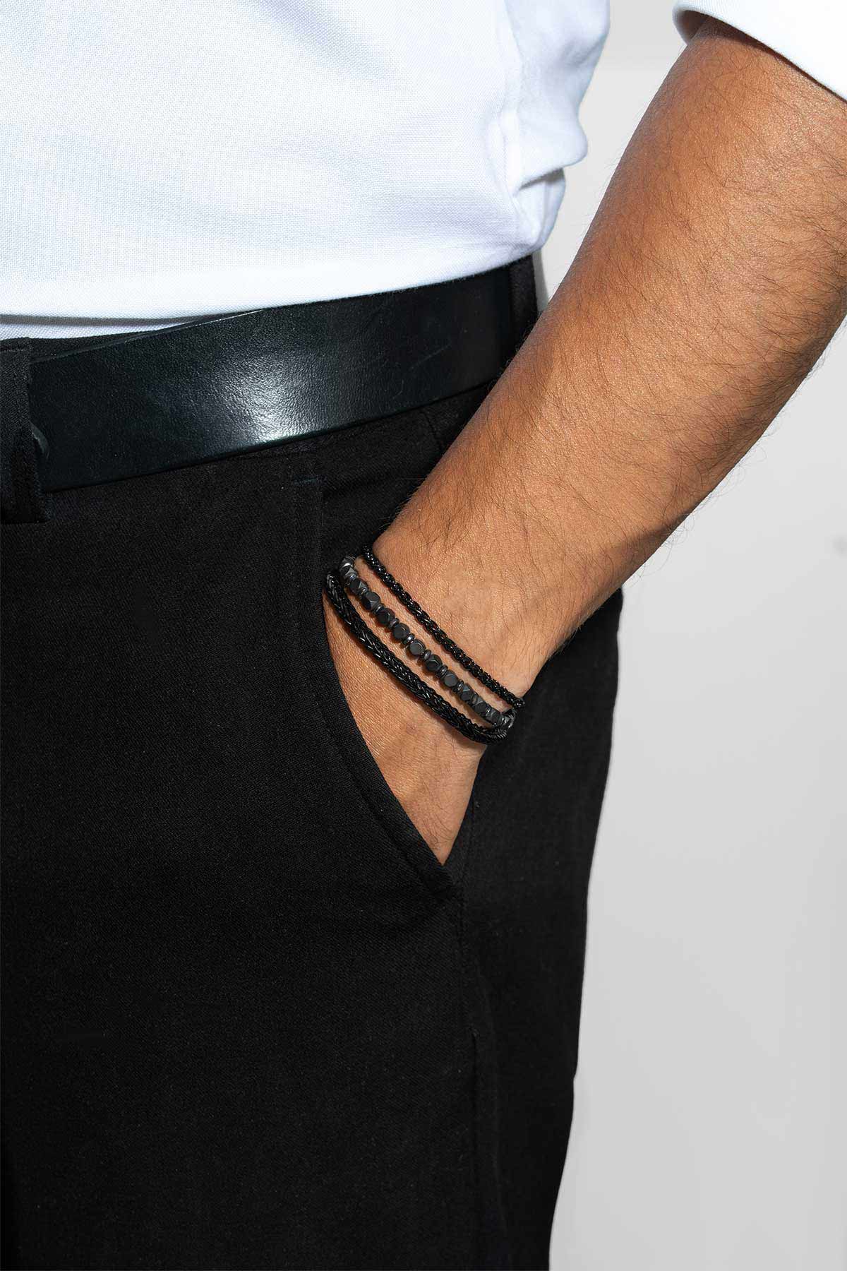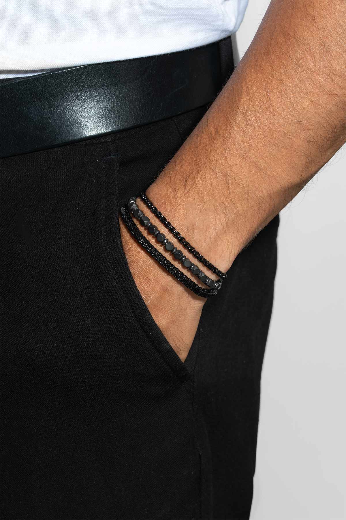 Gri Hematit Taşlı Ayarlanabilir Erkek Çelik Üçlü Bileklik Seti 02441410299