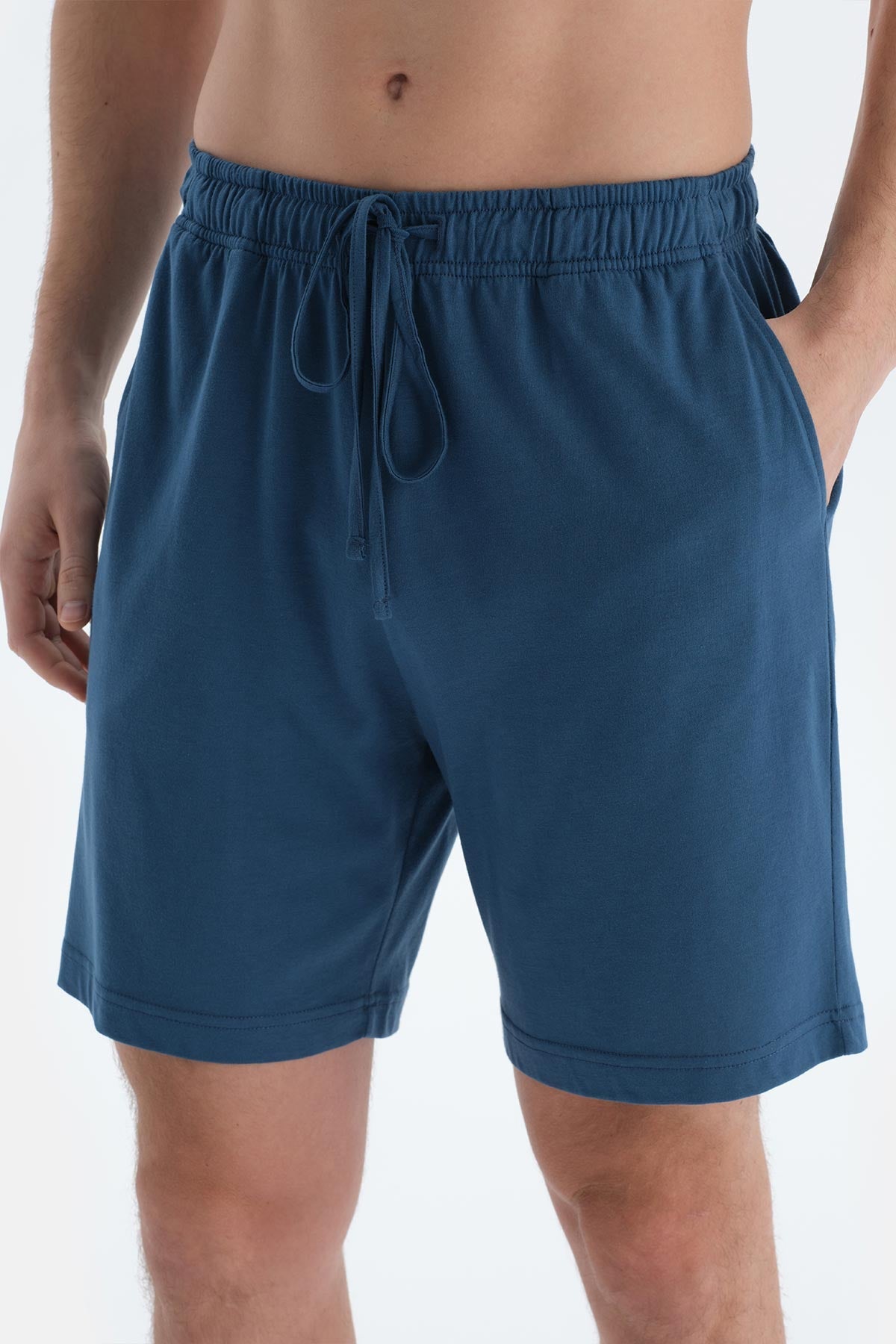 Gri-indigo Pamuk Modal Ikili Örme Şort