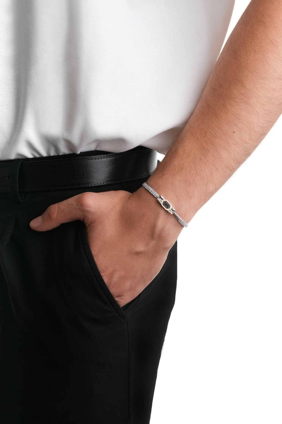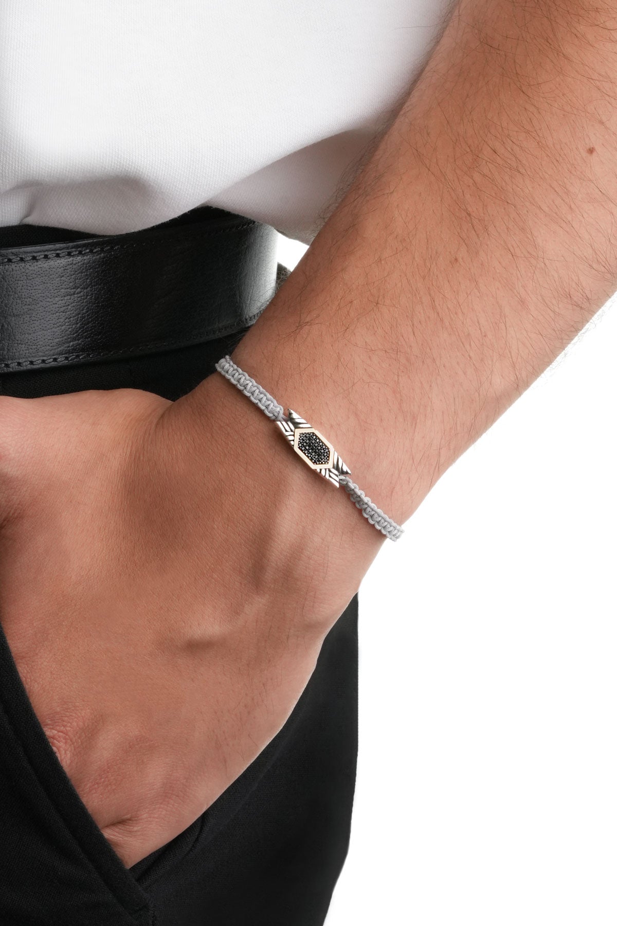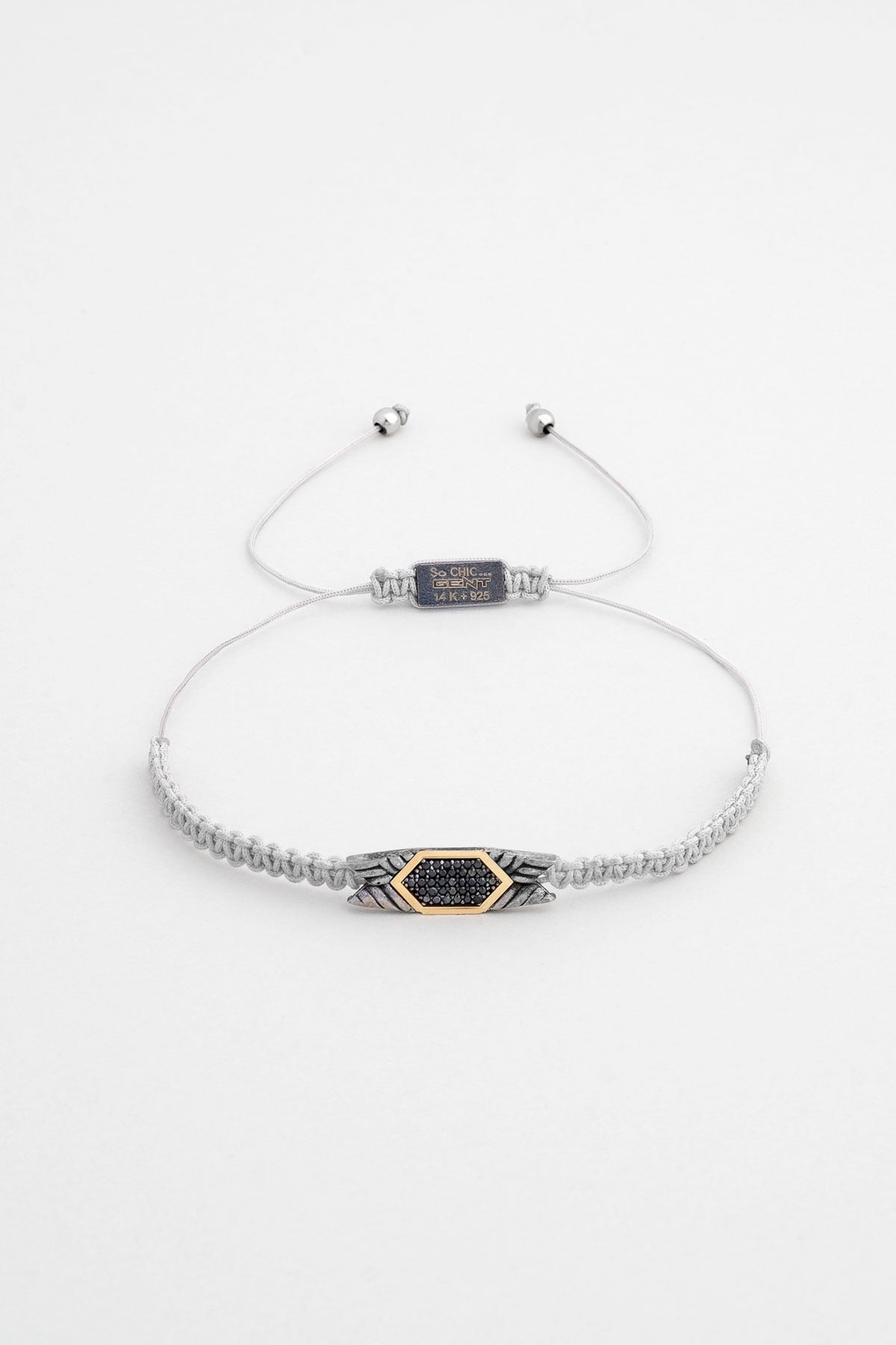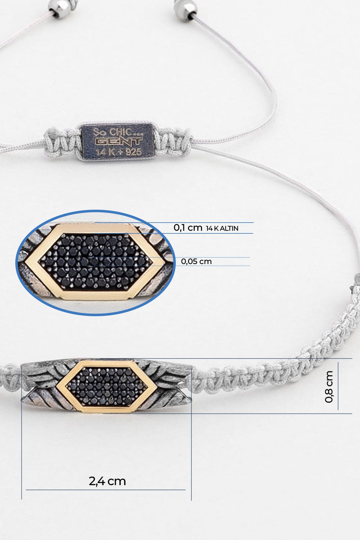 Gri Ipli 14 Ayar Altın Erkek Gümüş Ipli Bileklik 07295109099