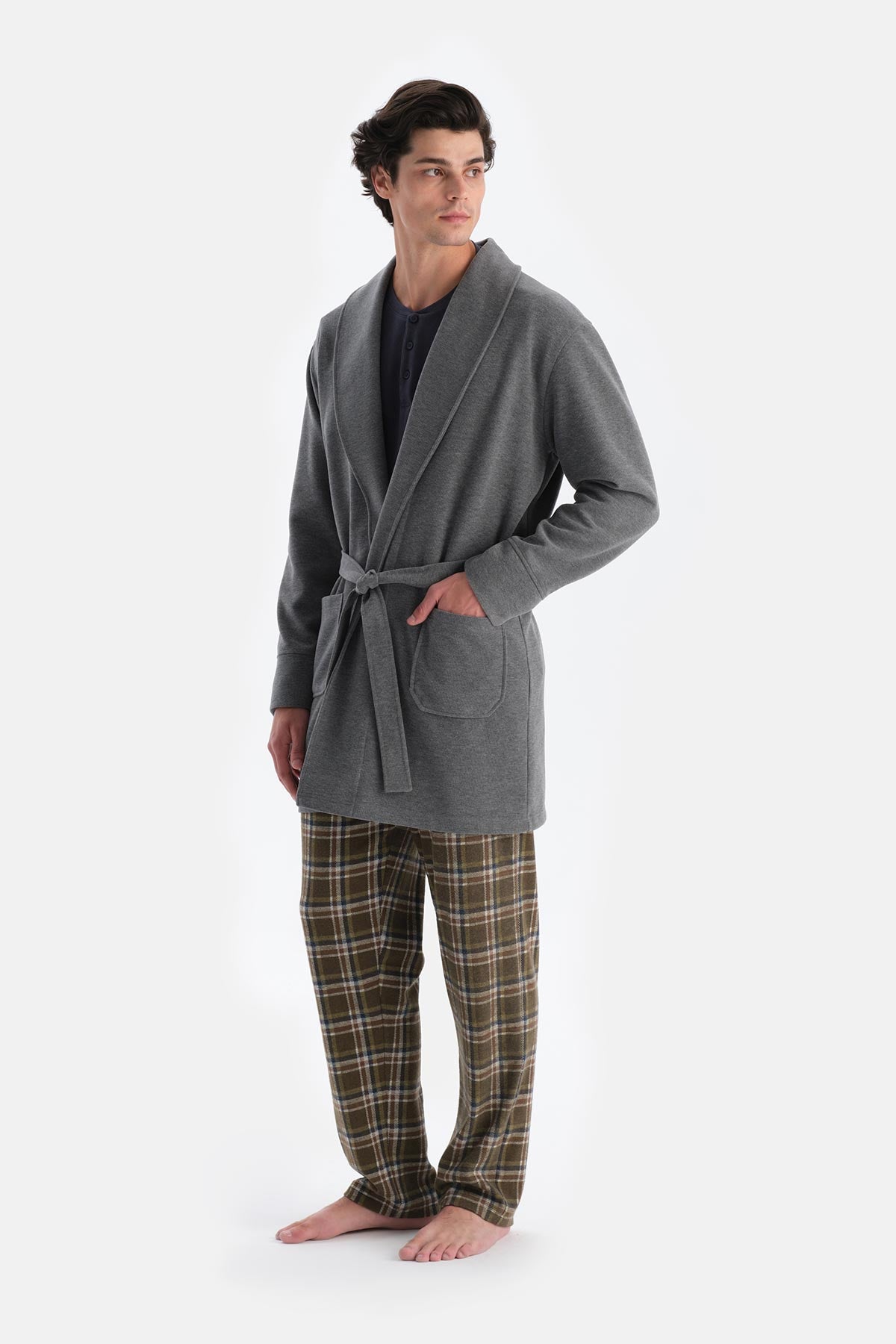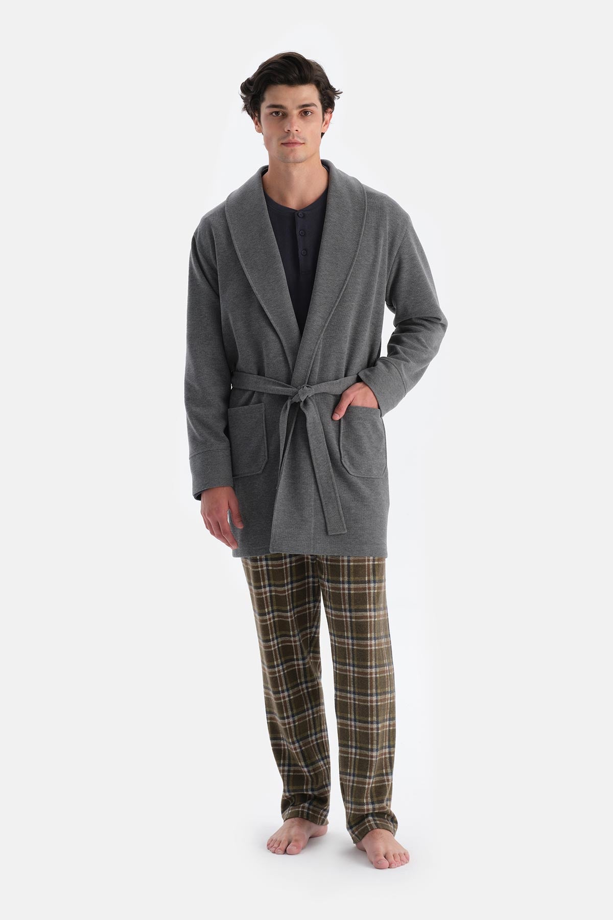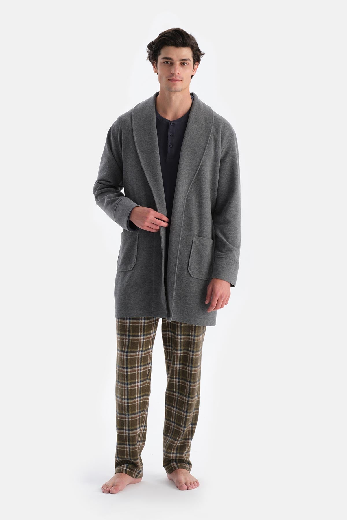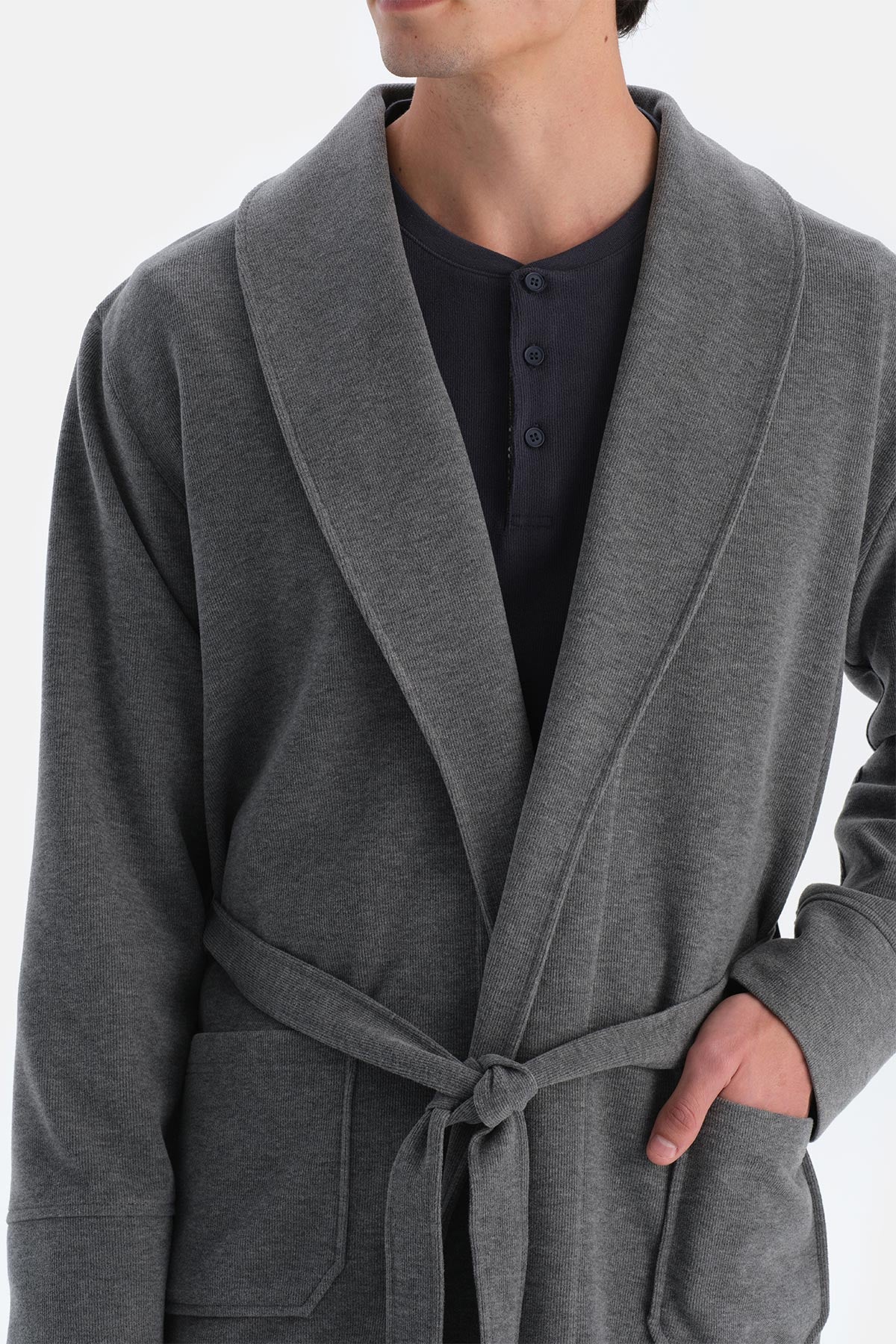 Gri Melanj Şal Yaka Selanik Sabahlık 24WM20027ME_325 şimdi Dagi'de. Kaliteli, konforlu ve özel fiyatlarla sizleri bekliyor.