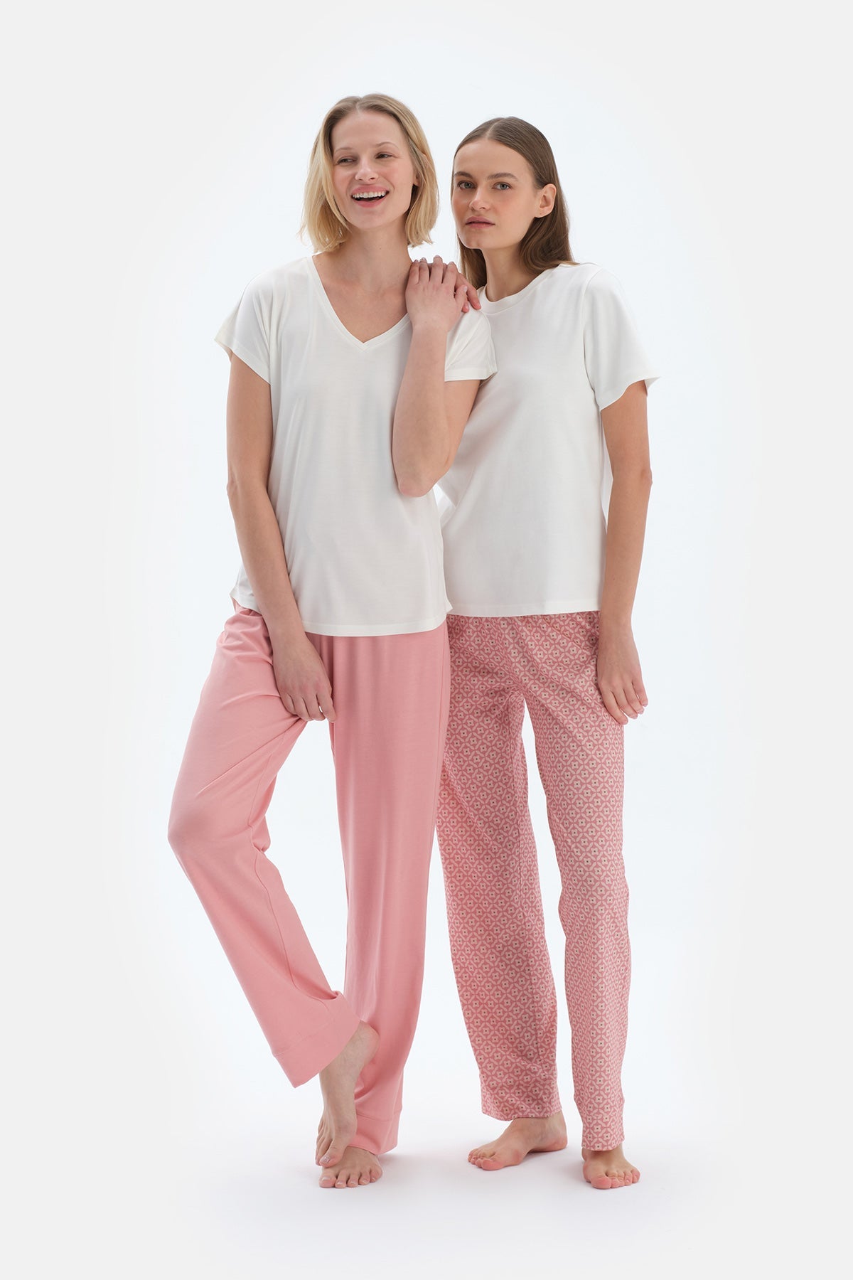 Gül Kurusu Metraj Desenli Ve Düz Ikili Pantolon