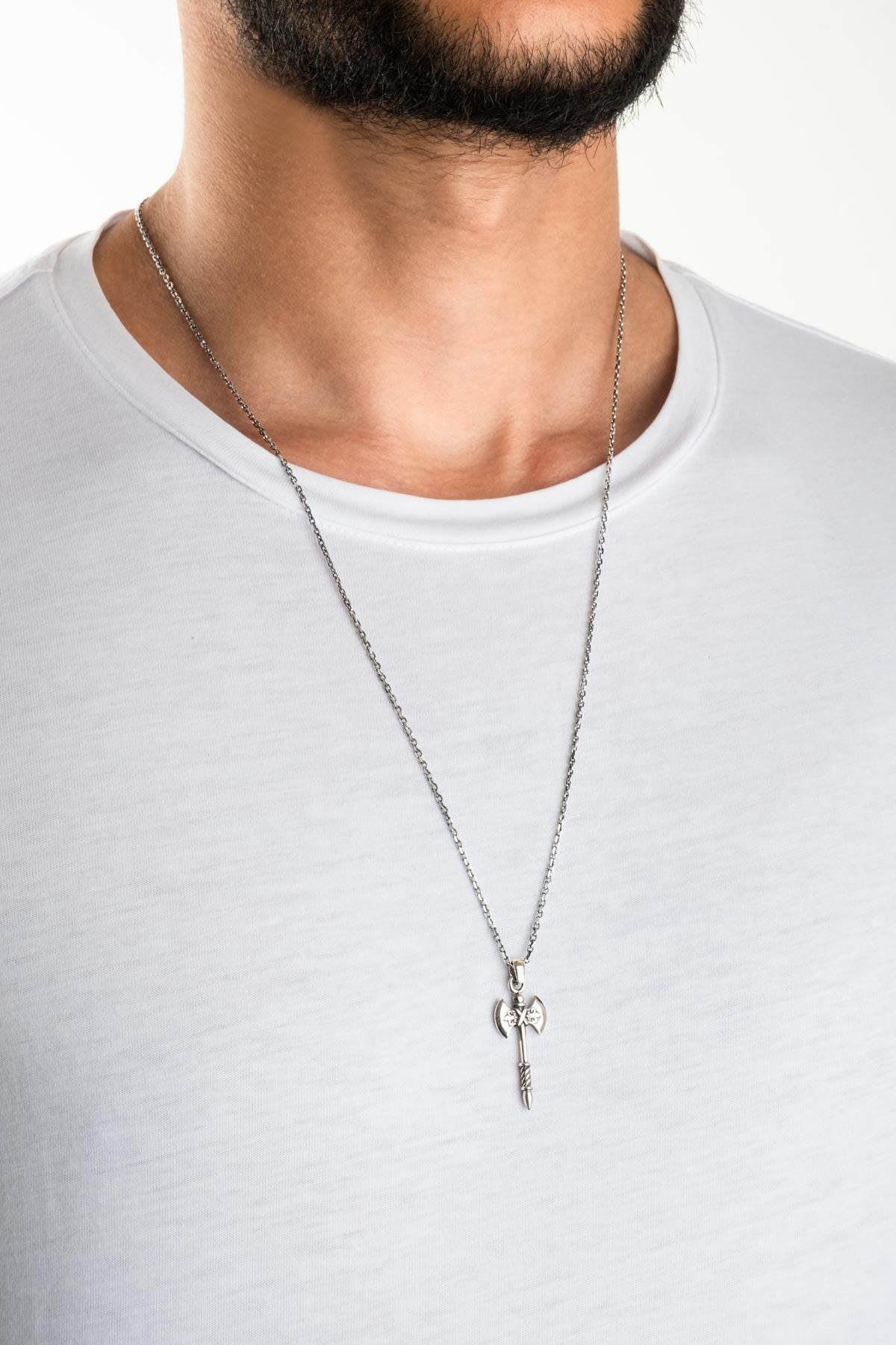 Gümüş Çift Taraflı Balta Erkek Kolye 07259669999