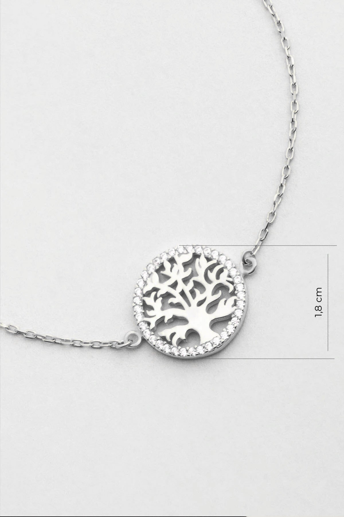 Hayat Ağacı 18 Ayar Beyaz Altın Kaplama 20 Cm Gümüş Minimal Bileklik 1051640199