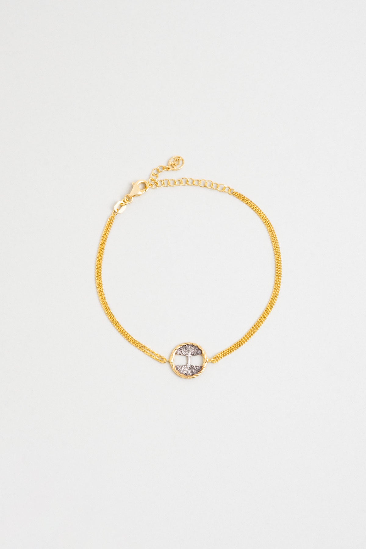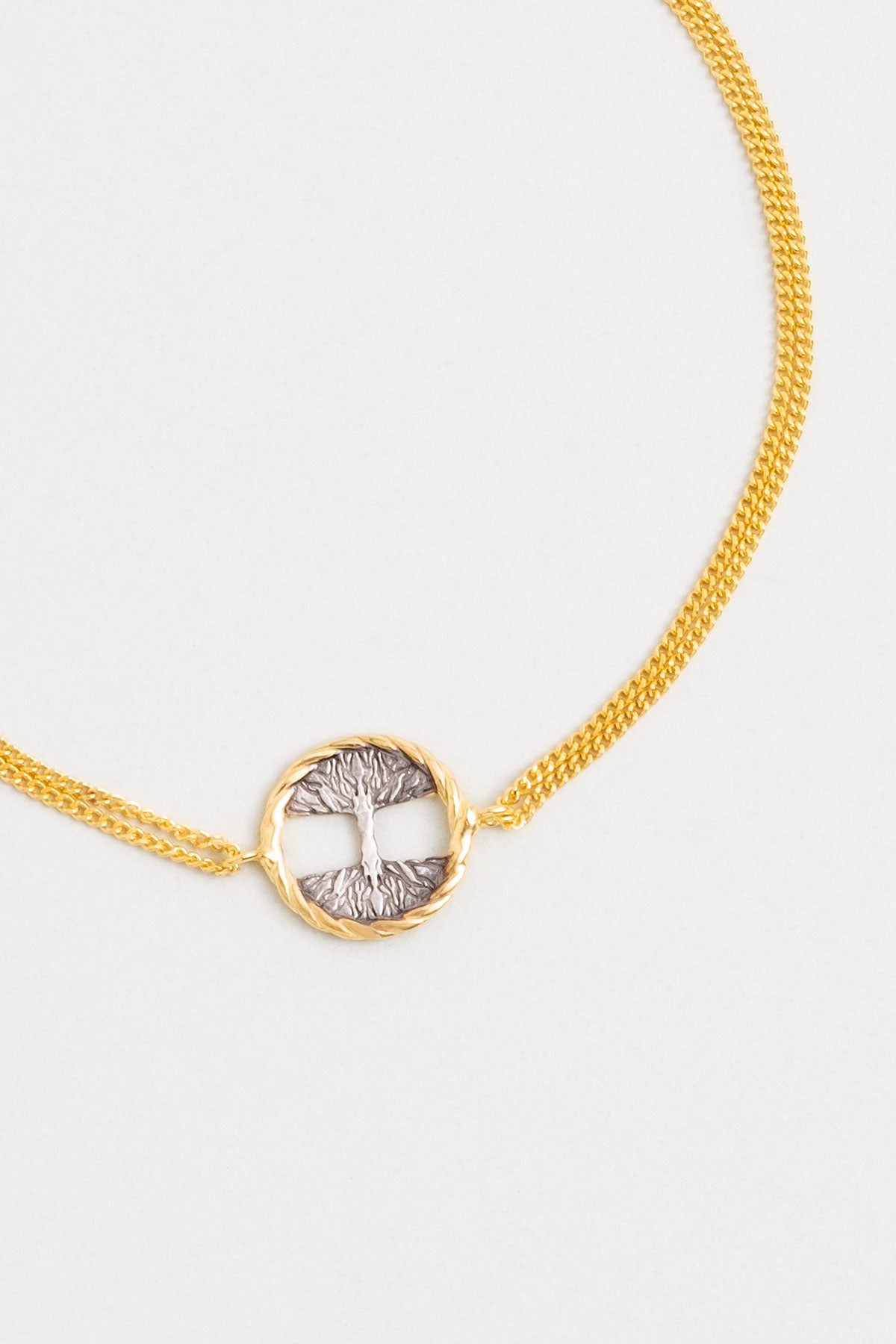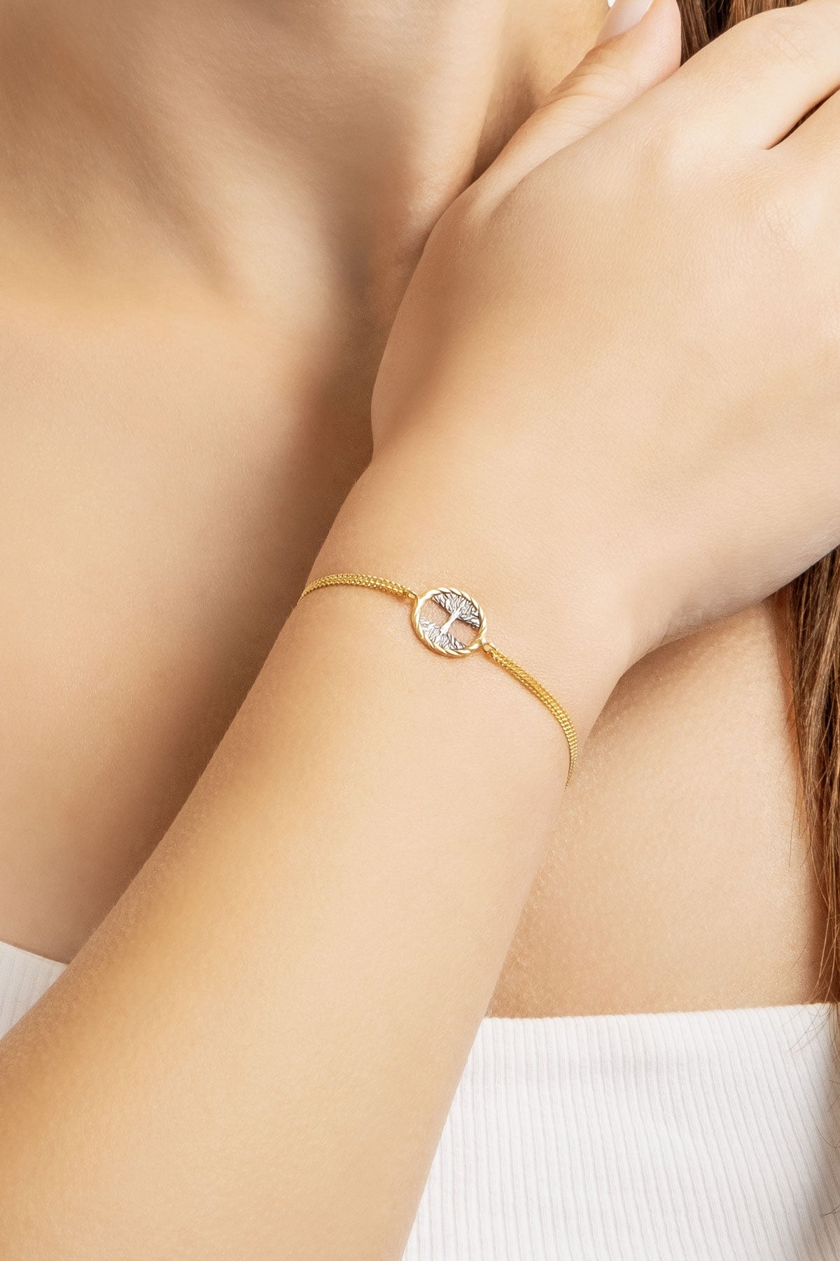 Hayat Ağacı 18 Ayar Sarı Altın Kaplama 20 Cm Gümüş Bileklik 1169774499