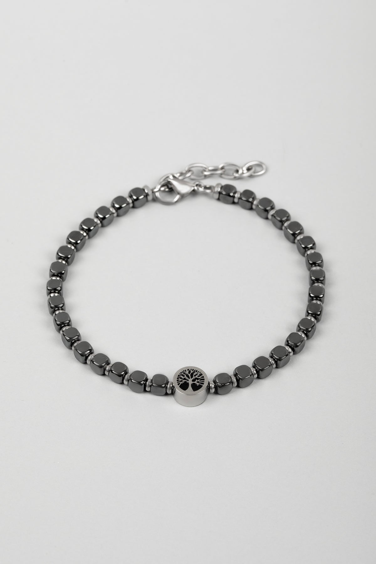 Hayat Ağacı Erkek Hematit Taşlı Çelik Bileklik 02438189921