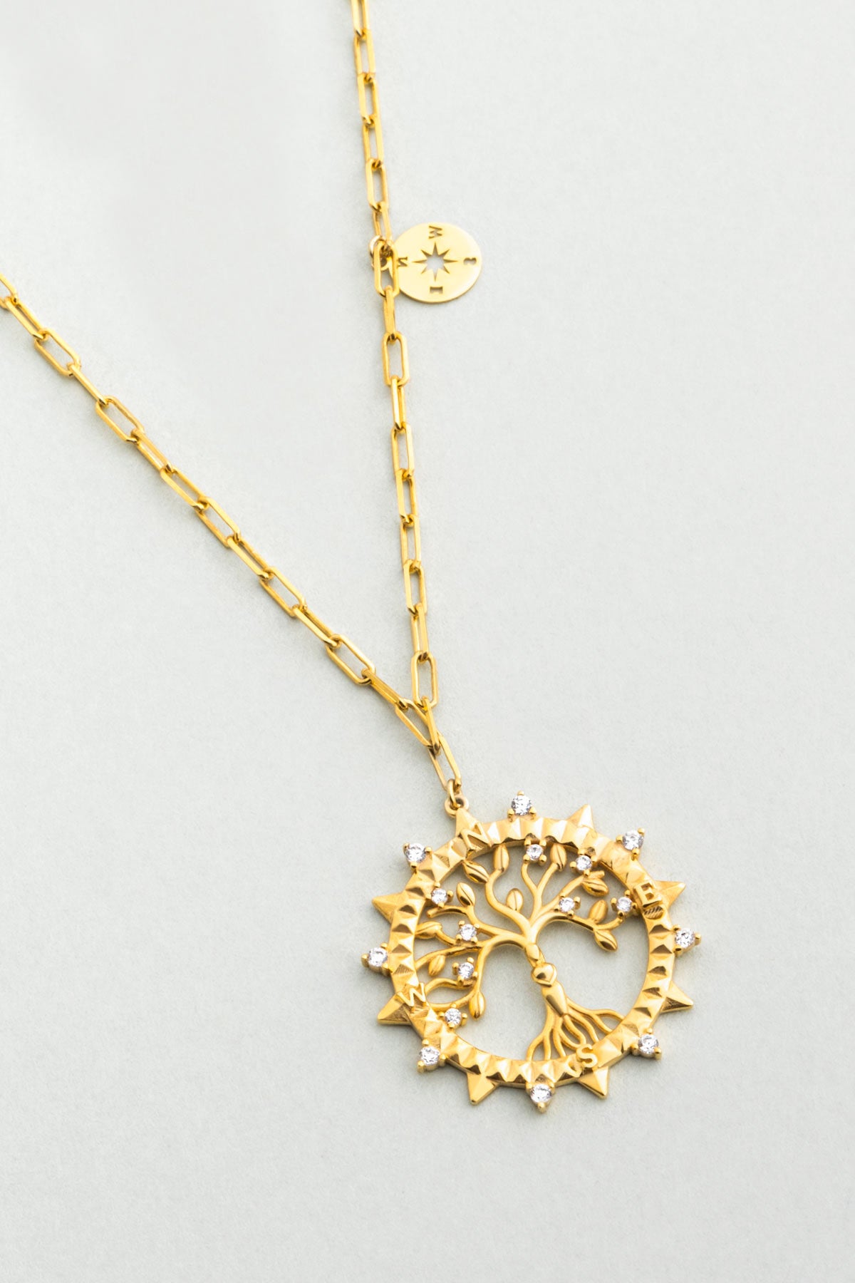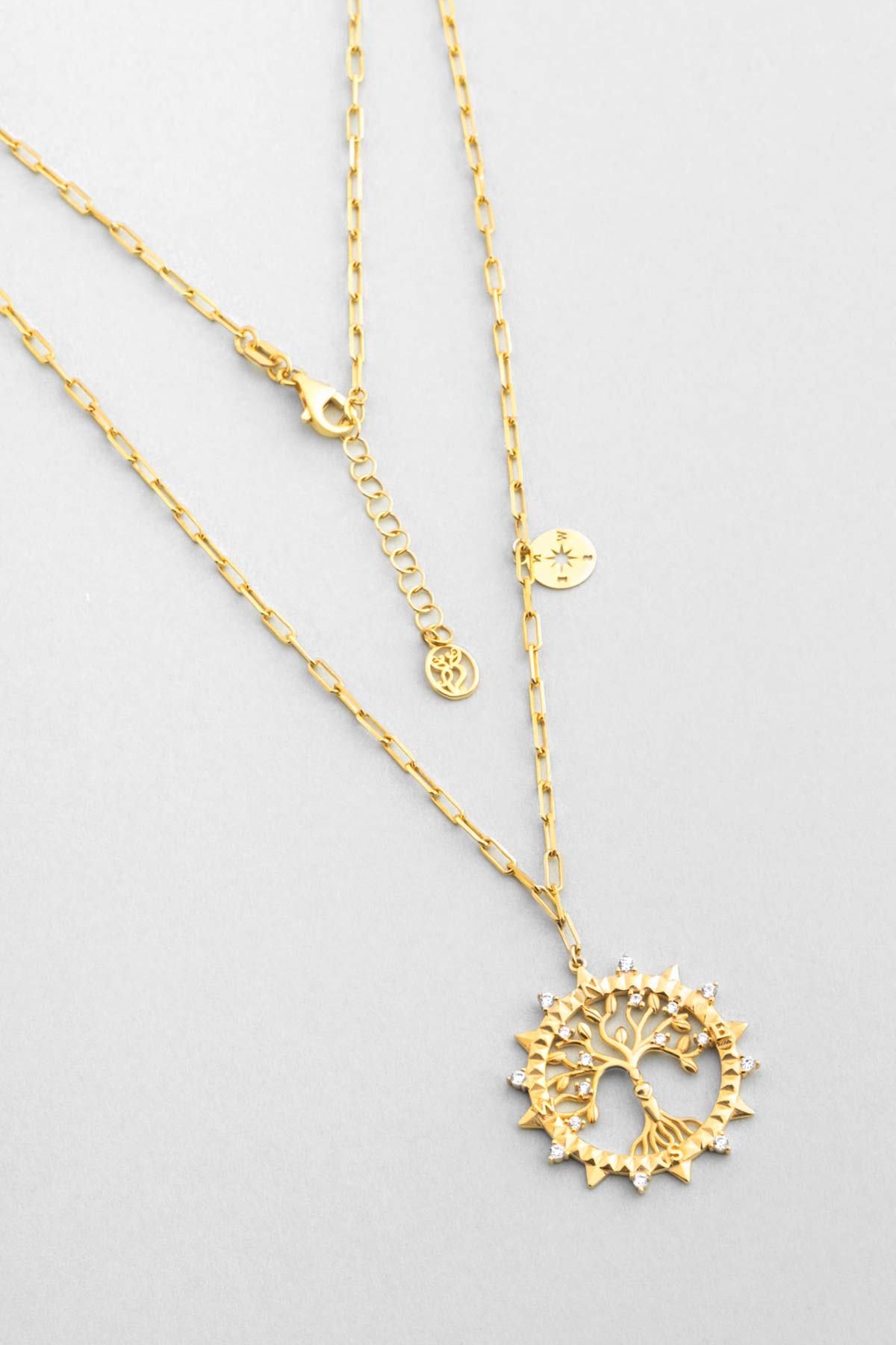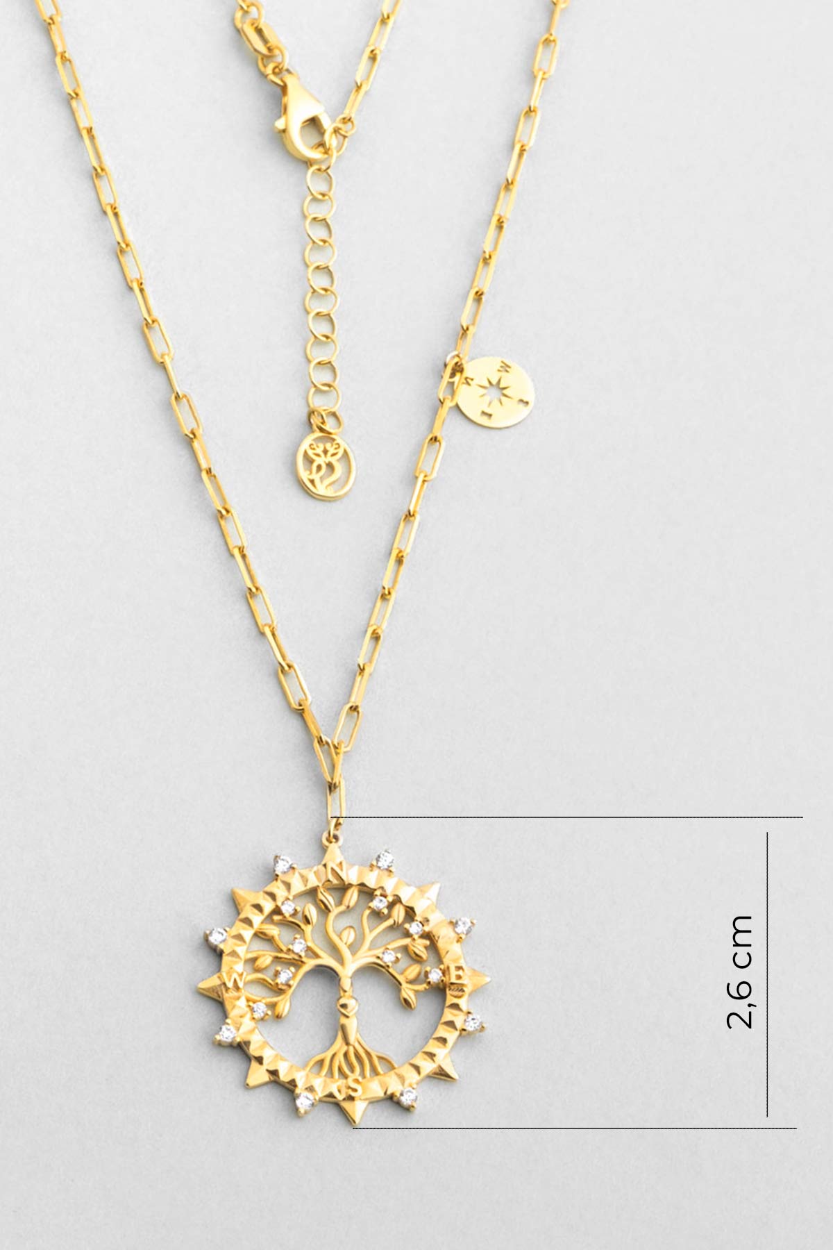 Hayat Işığı 18 Ayar Sarı Altın Kaplama 53 Cm Gümüş Kolye 07313020144