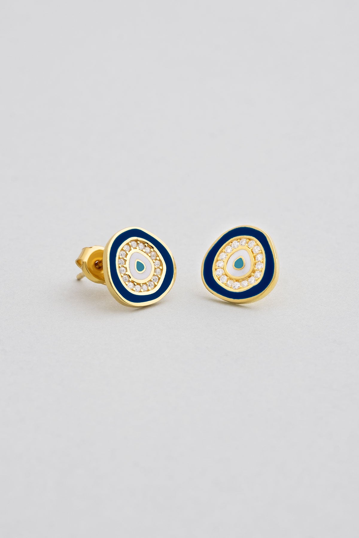 Horus'un Gözü 18 Ayar Sarı Altın Kaplama Gümüş Nazar Küpe 1162381244