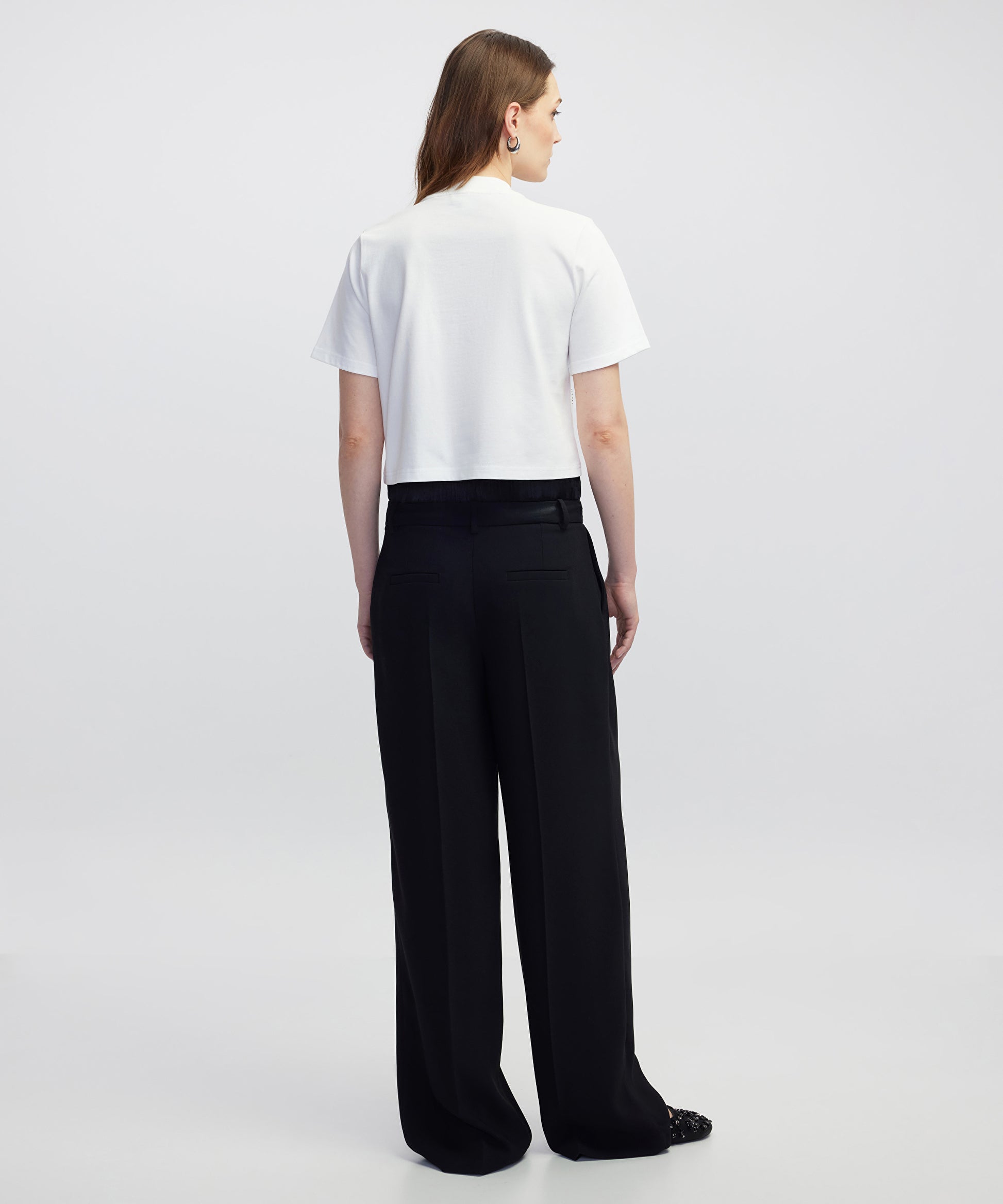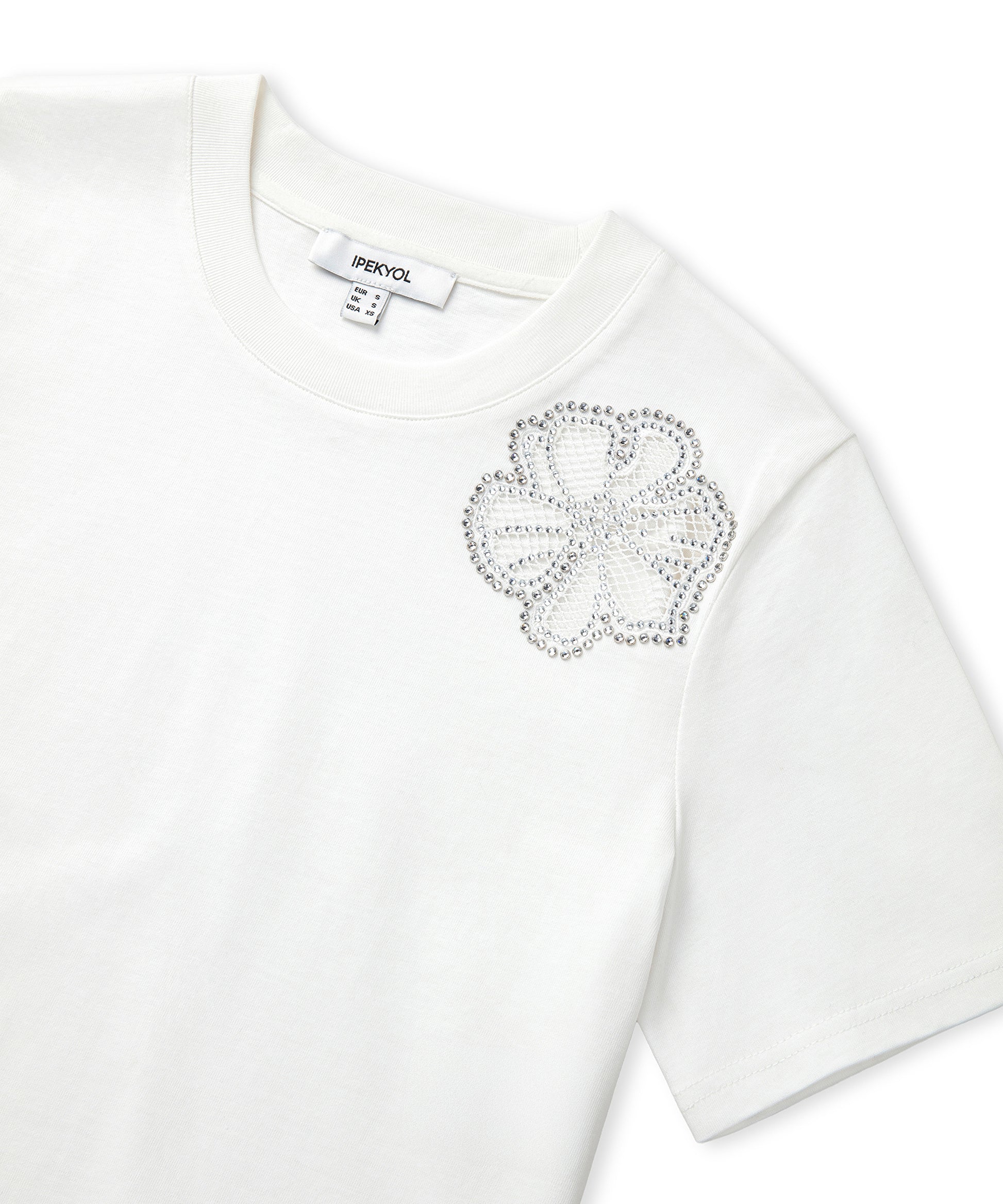 Beyaz Hotfix baskılı cutout tişört IW6250070057002 ile tarzınızı tamamlayacaksınız. IPEKYOL tarzına sahip olmak için hemen tıklayın!