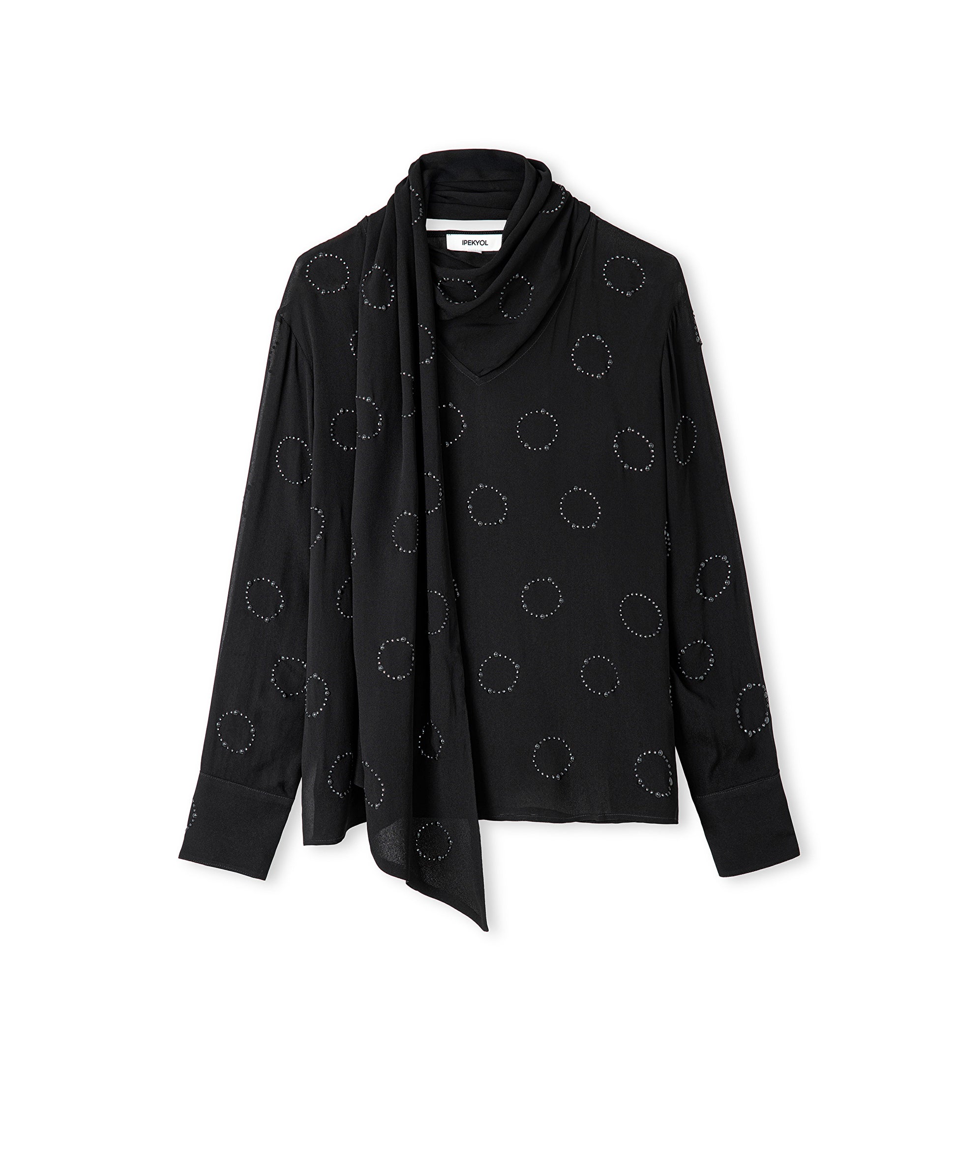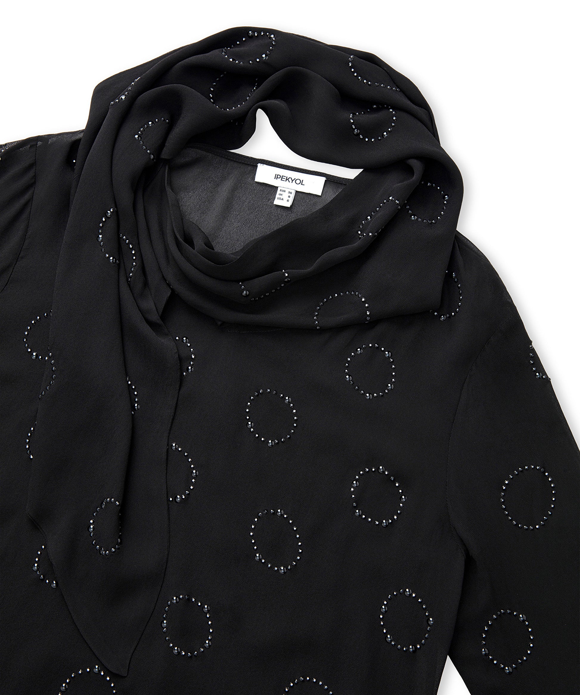 Siyah Hotfix baskısı şifon bluz IW6250006051001 ile tarzınızı tamamlayacaksınız. IPEKYOL tarzına sahip olmak için hemen tıklayın!