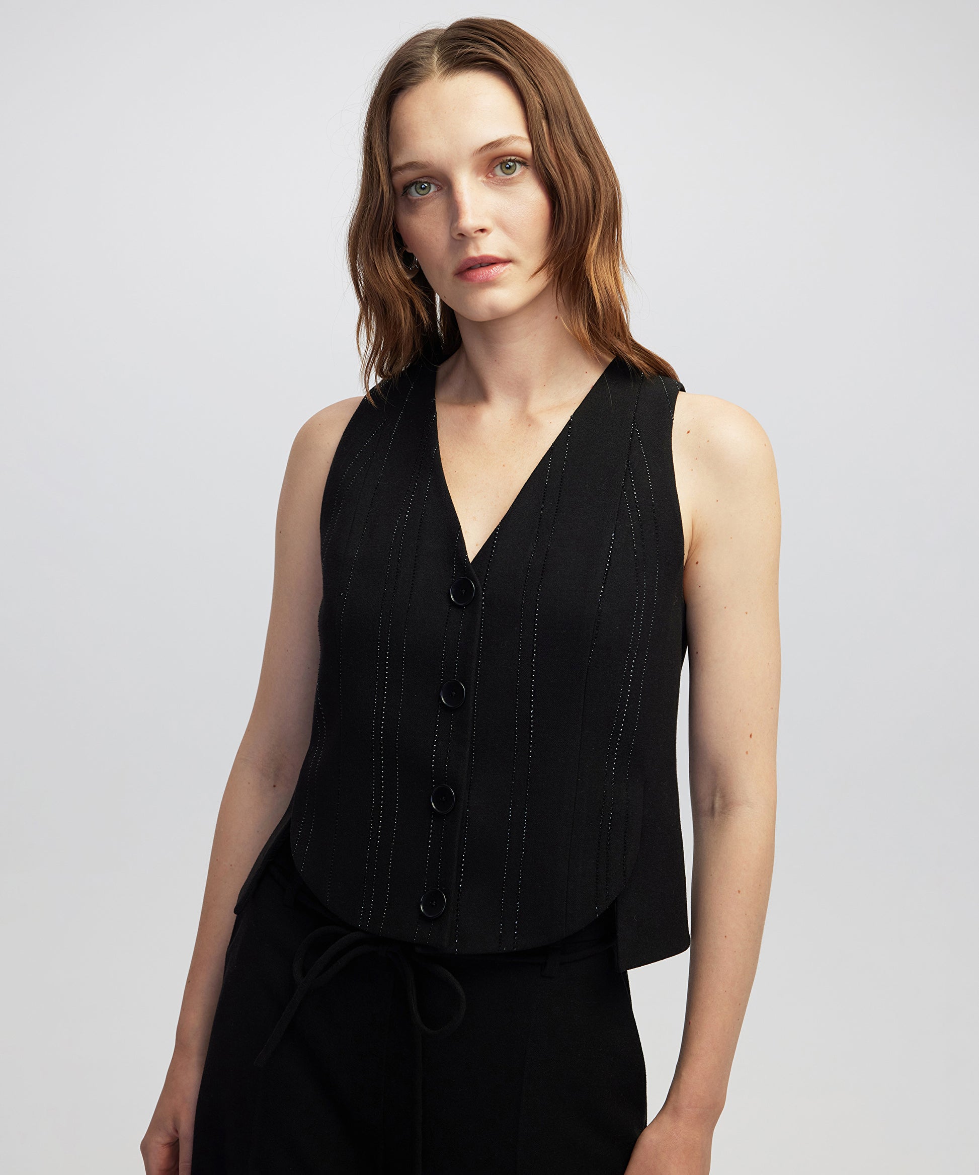 Siyah Hotfix şeritli yelek IW6250007020001 ile tarzınızı tamamlayacaksınız. IPEKYOL tarzına sahip olmak için hemen tıklayın!
