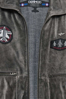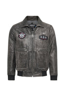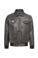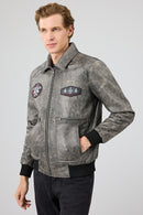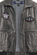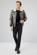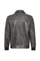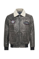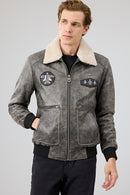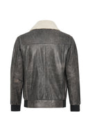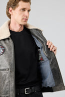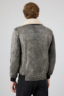 Hurricane Erkek Gri Armalı Yaka Kürklü Deri Pilot Mont