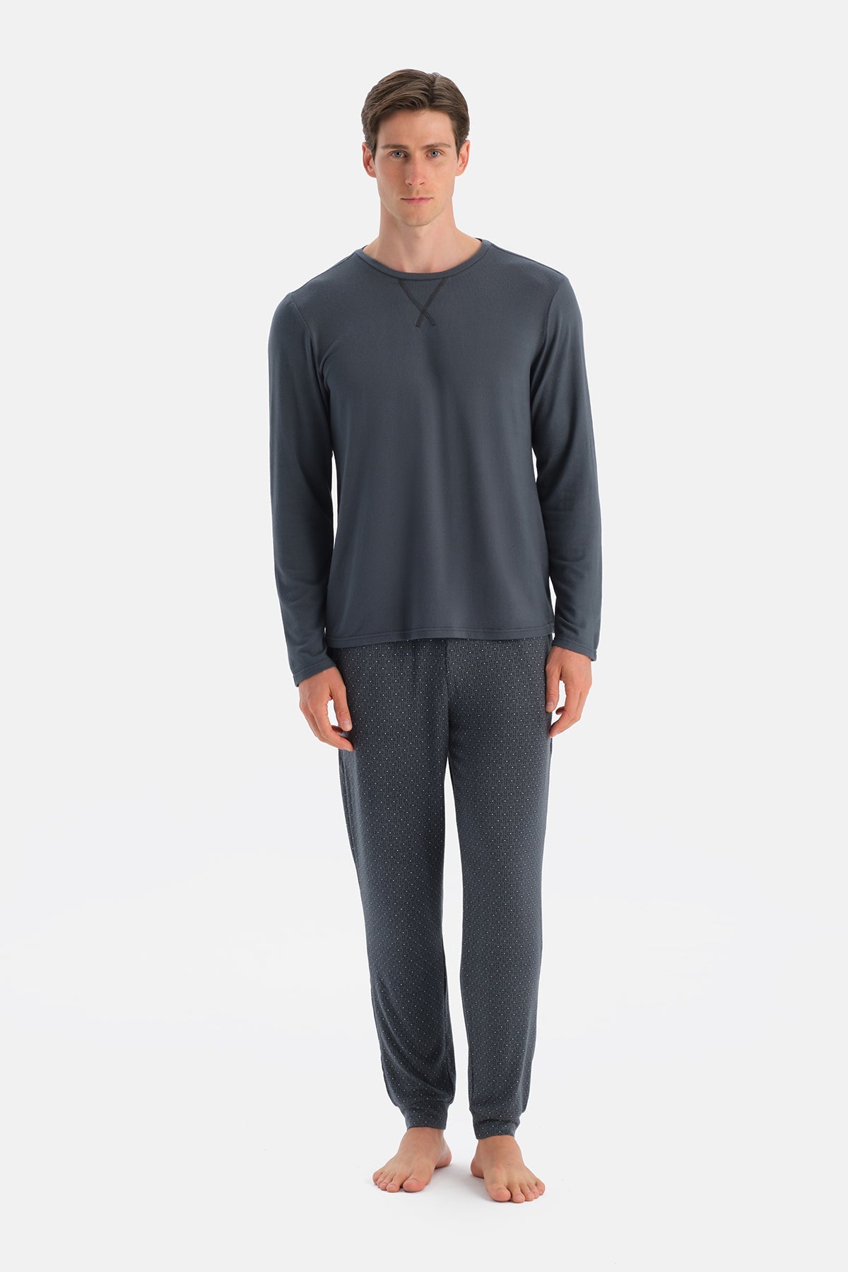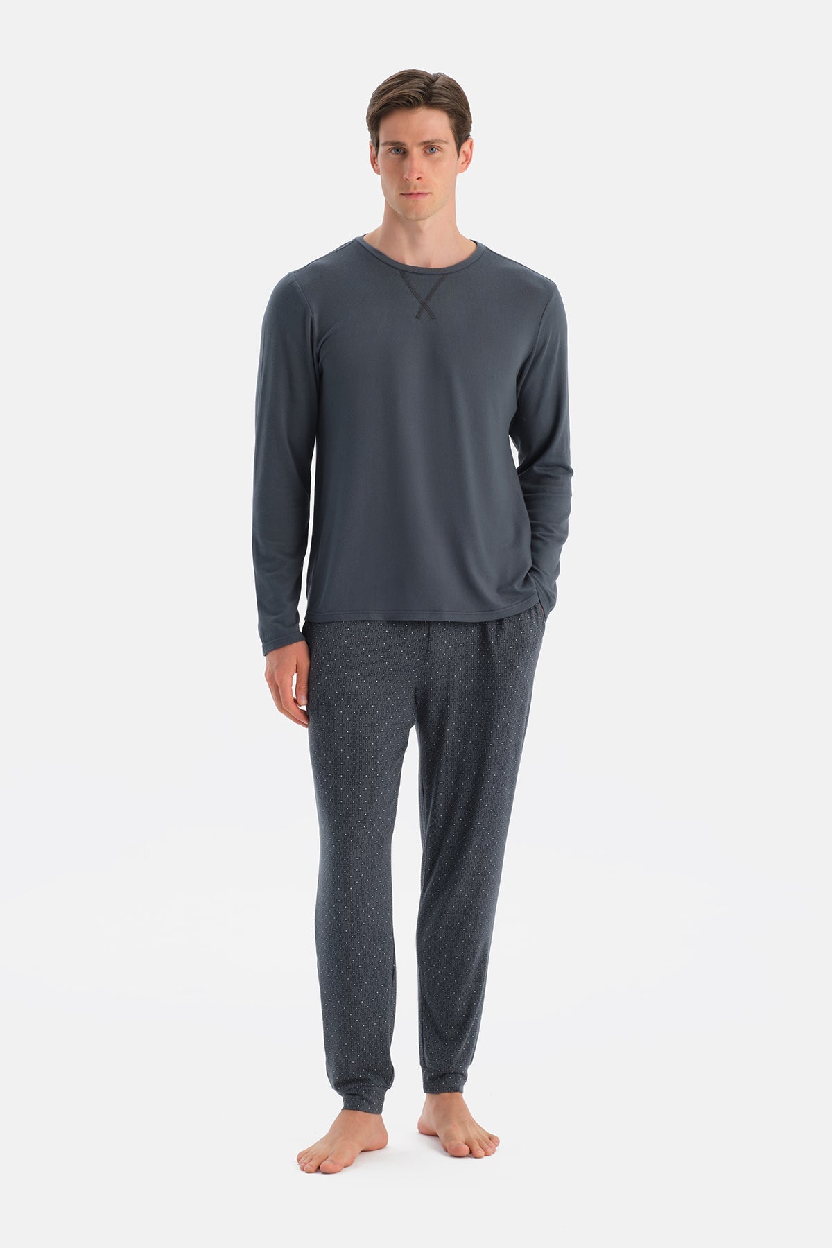 Indigo Dikiş Detaylı Uzun Kollu Termal Tişört Pantolon Pijama Takımı