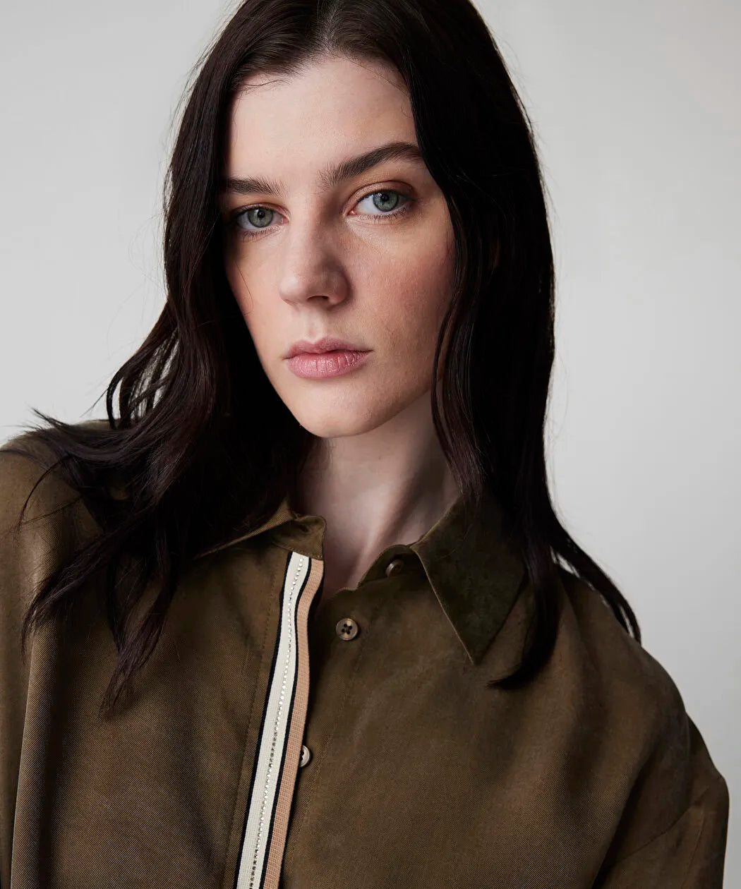 Haki Kontrast Biyeli Hotfix Baskılı Gömlek Is1260025153022 | Ipekyol