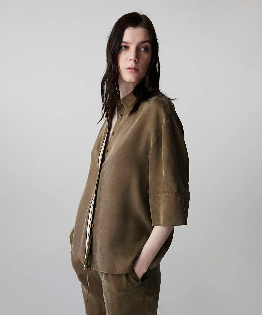 Haki Kontrast biyeli hotfix baskılı gömlek IS1260025153022 ile tarzınızı tamamlayacaksınız. IPEKYOL tarzına sahip olmak için hemen tıklayın!