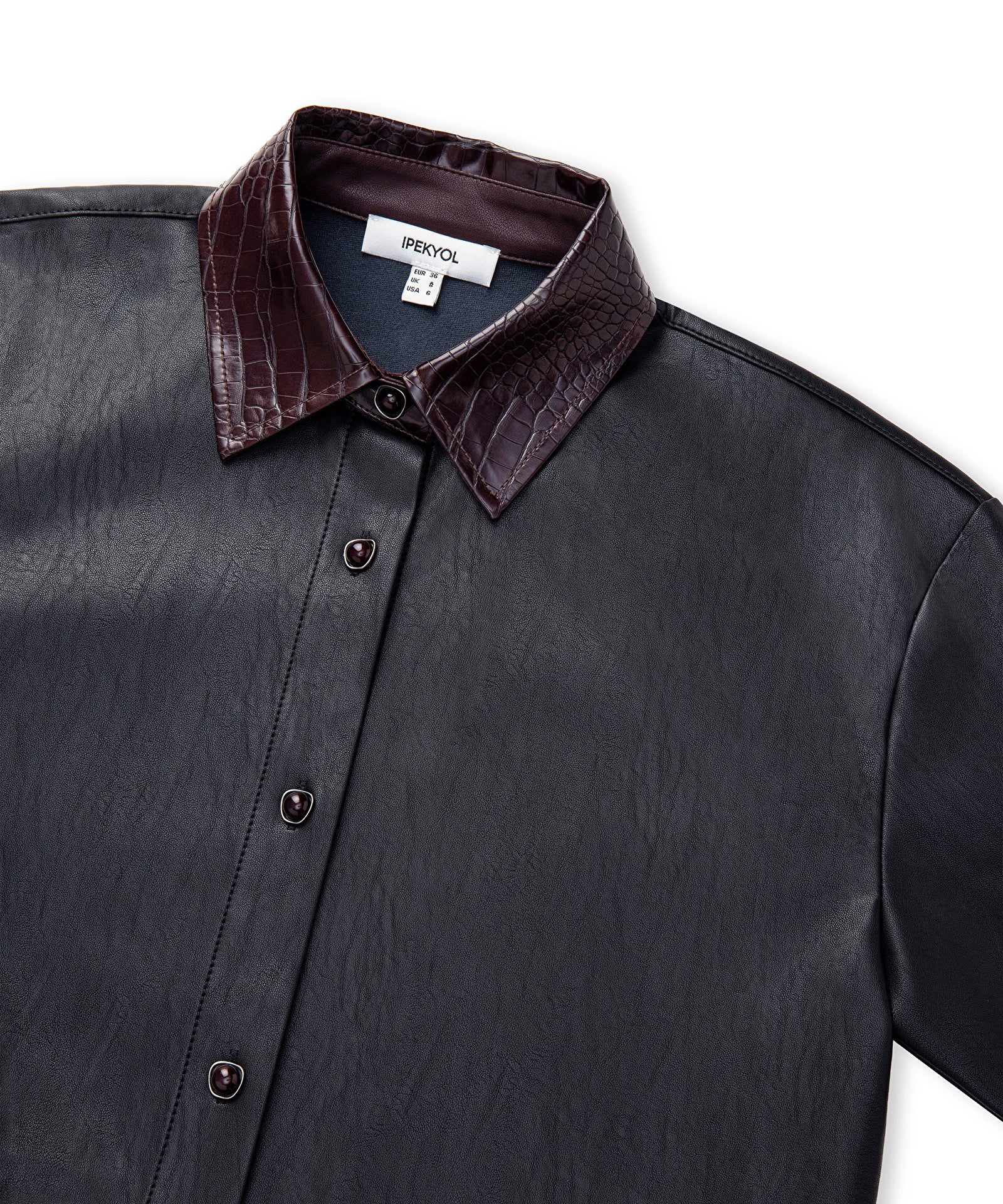 Siyah Kontrast yaka deri görünümlü gömlek IW6250025145001 ile tarzınızı tamamlayacaksınız. IPEKYOL tarzına sahip olmak için hemen tıklayın!